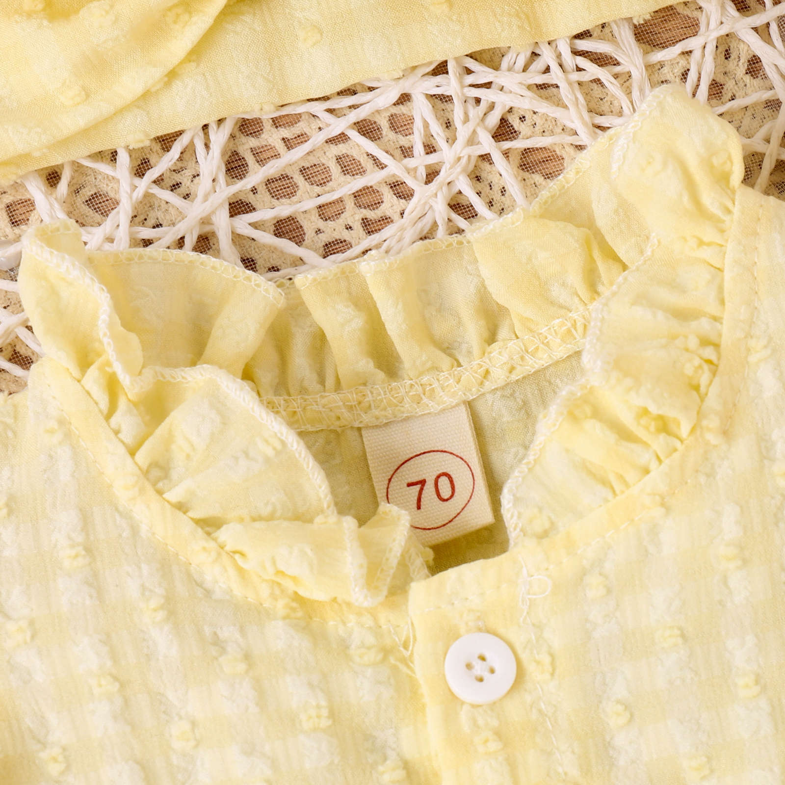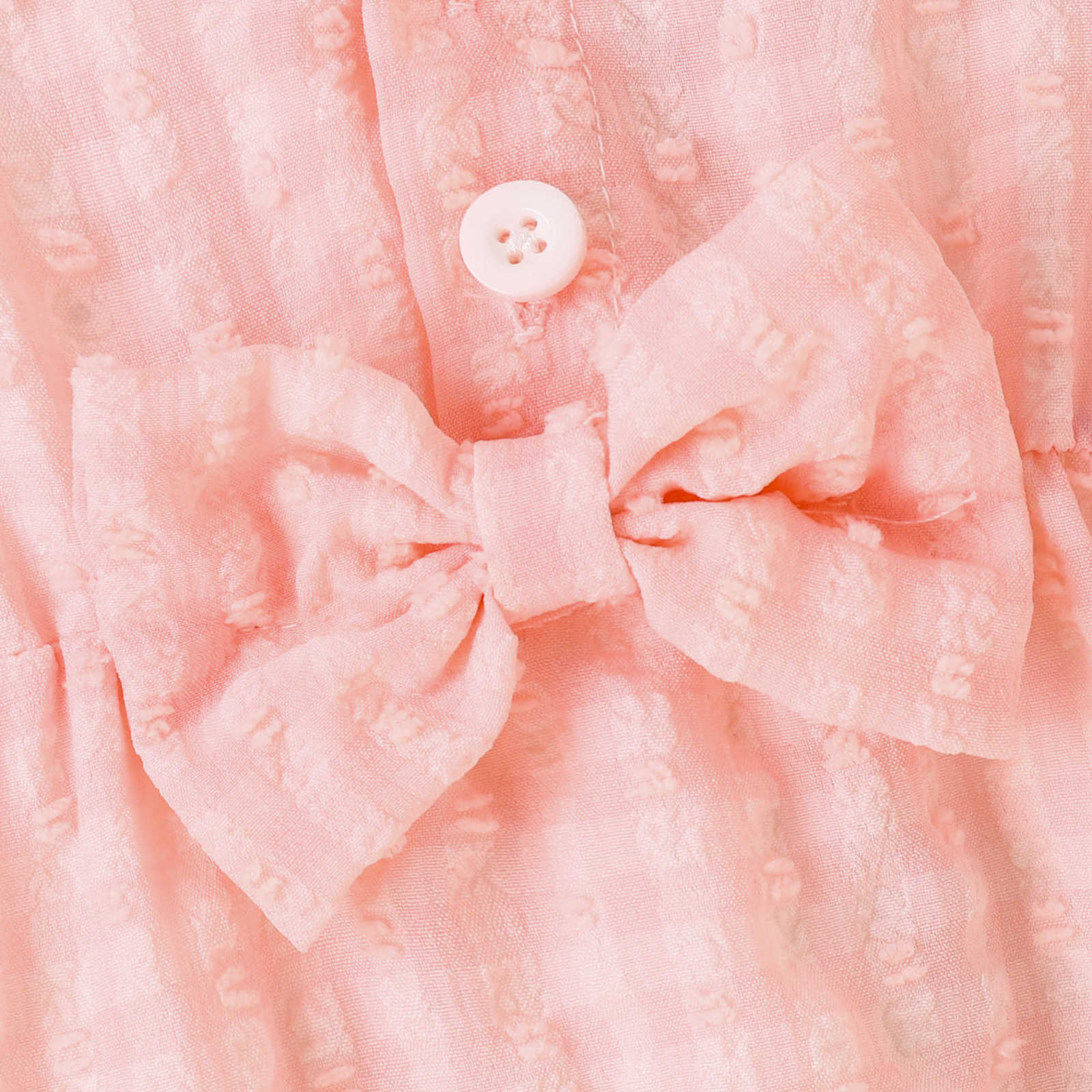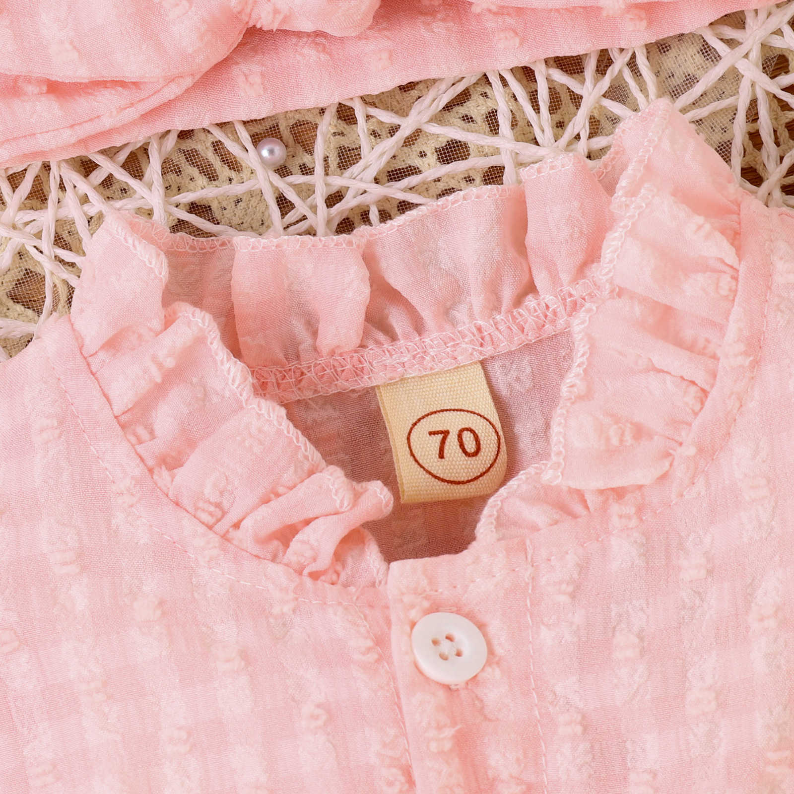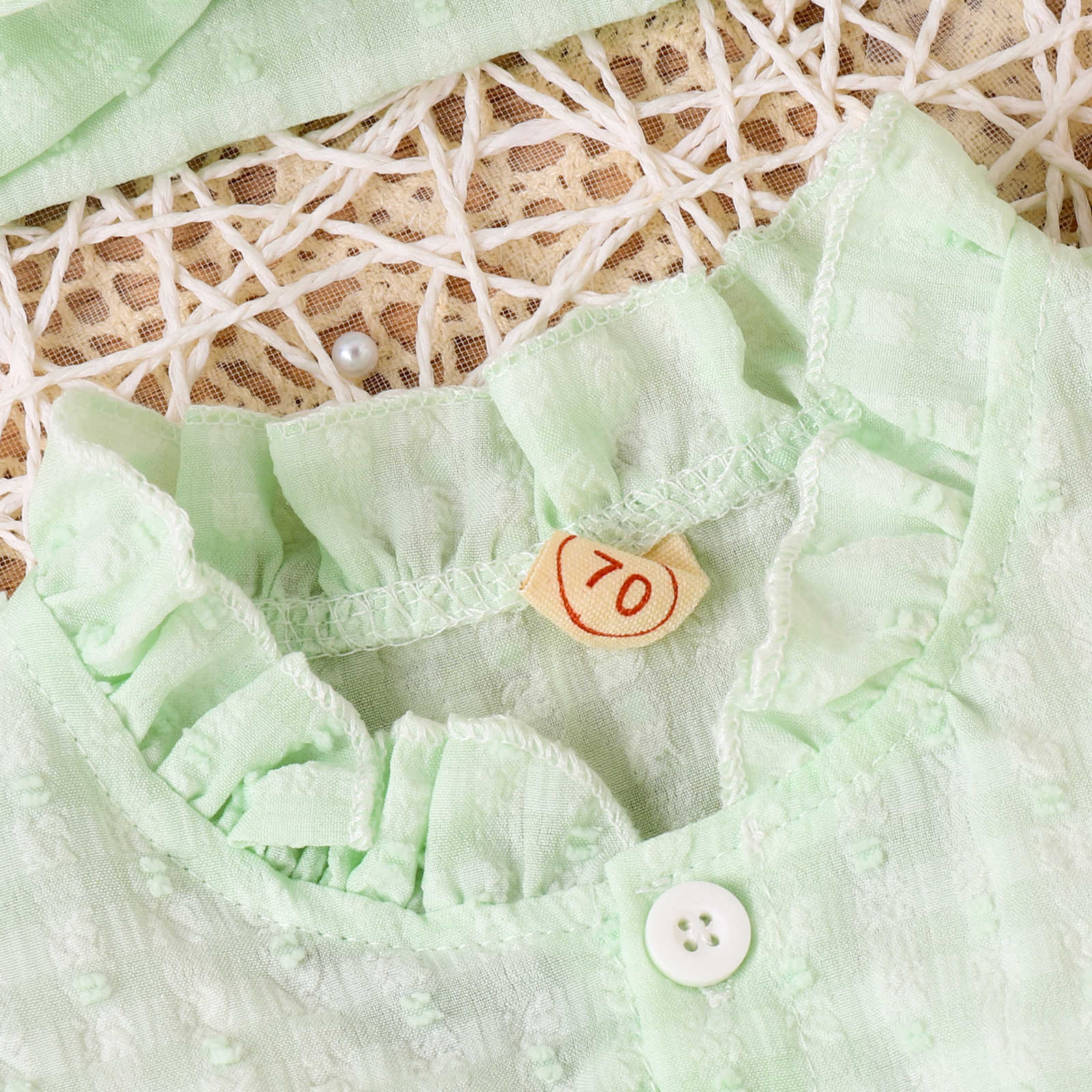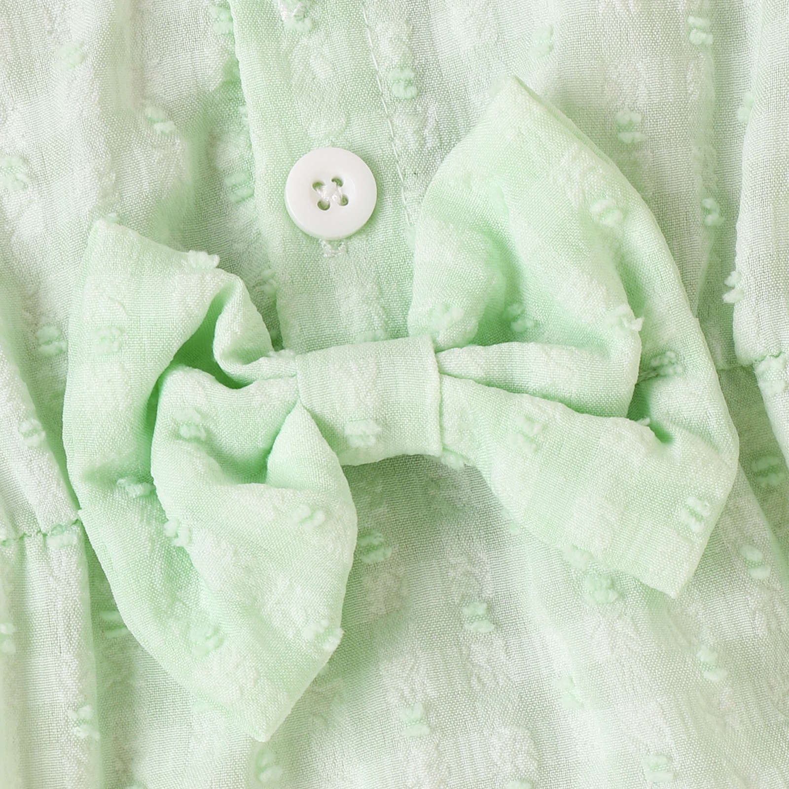 Ropa Infantil Baopai Estilo Japonés y Coreano Primavera y Verano Lindo Manga de Encaje Jacquard Cuadros Patrón Oscuro Lazo Envolvente Triangular Ropa Abierta