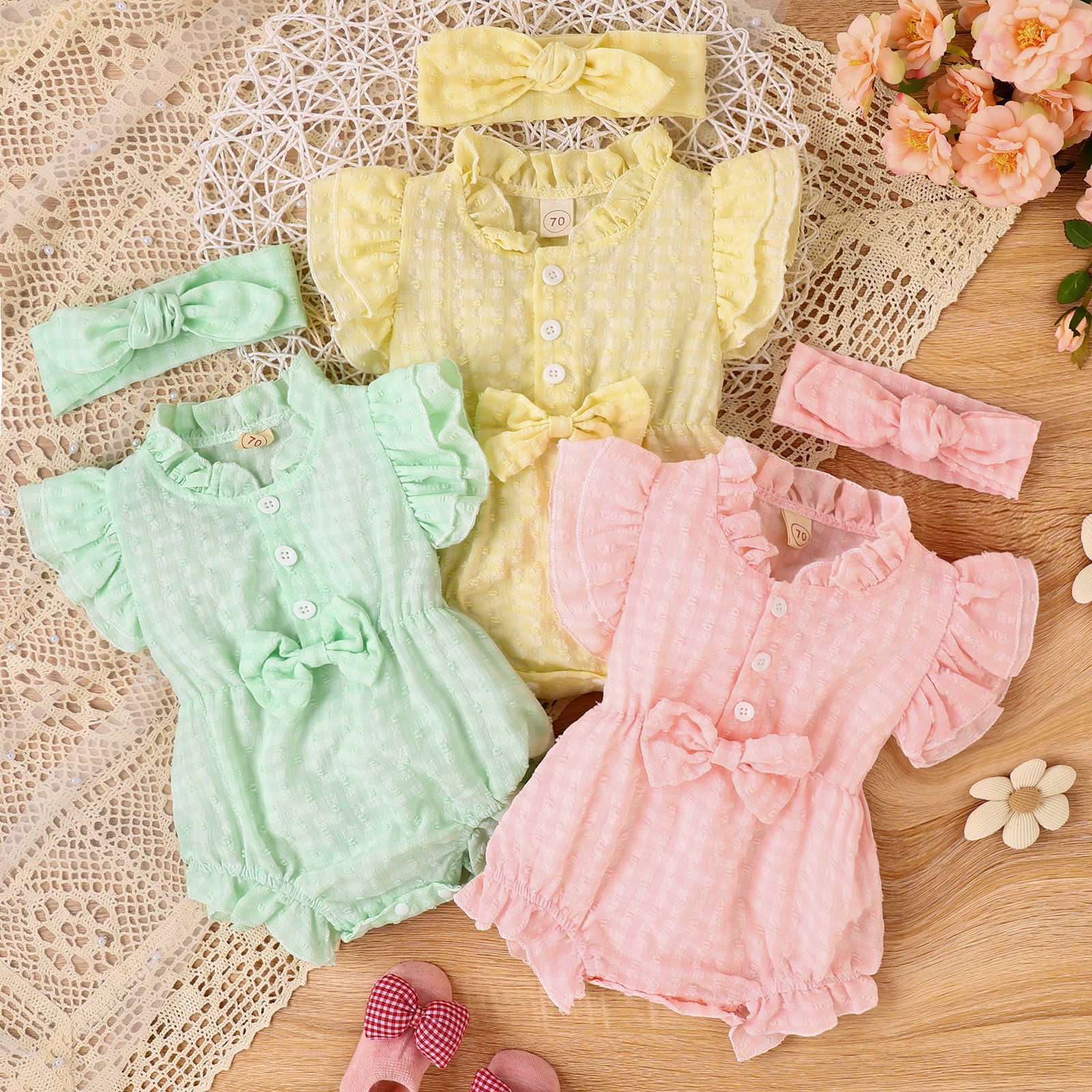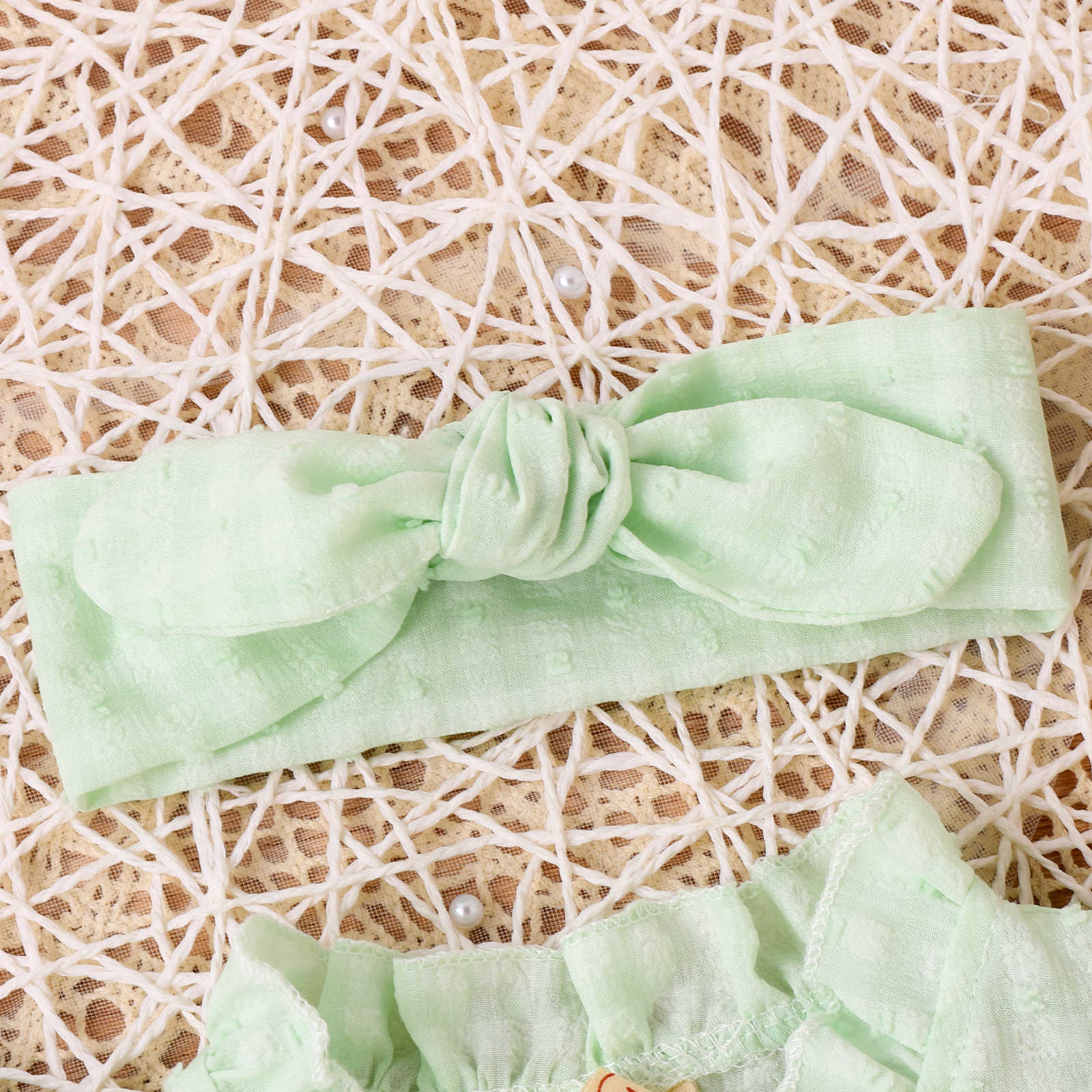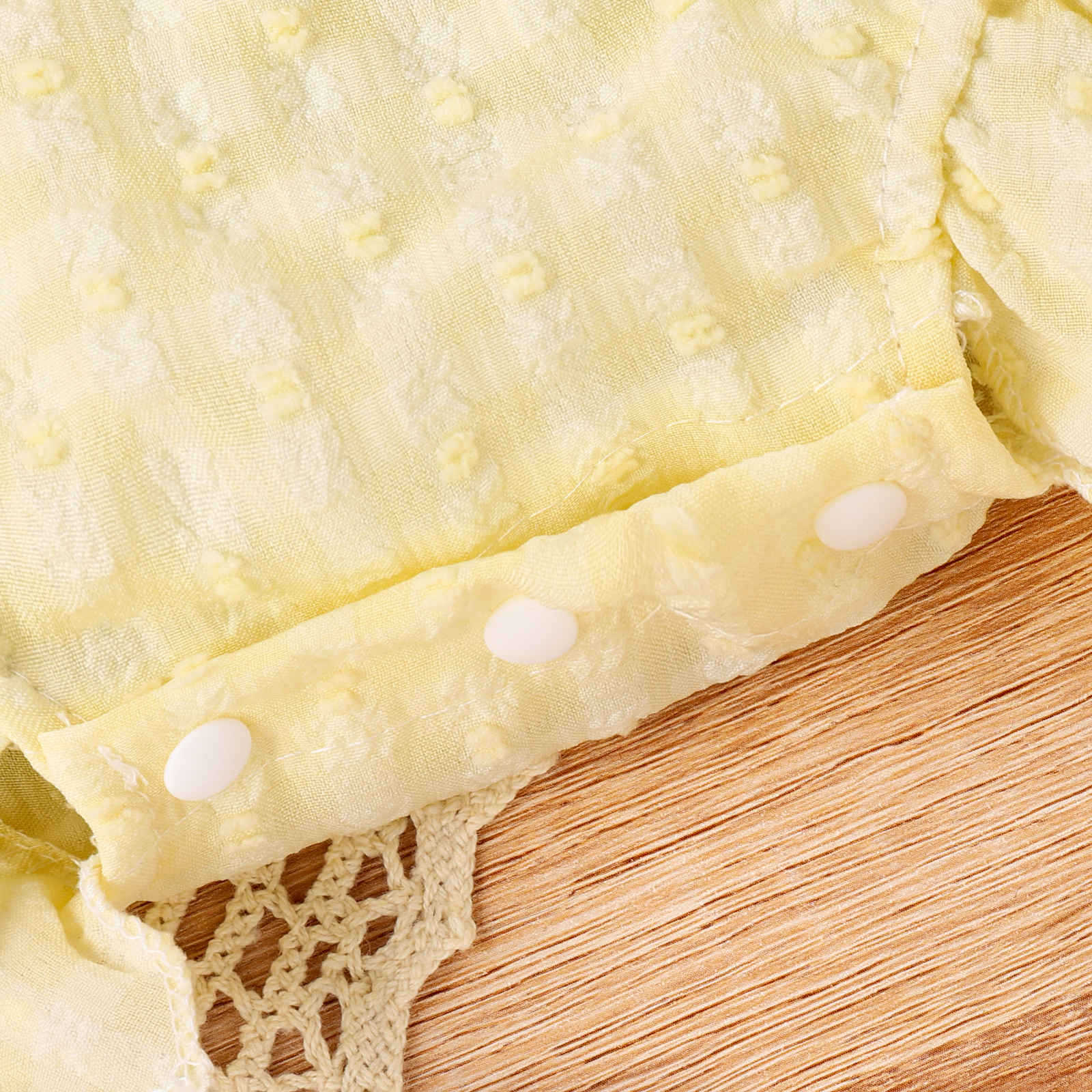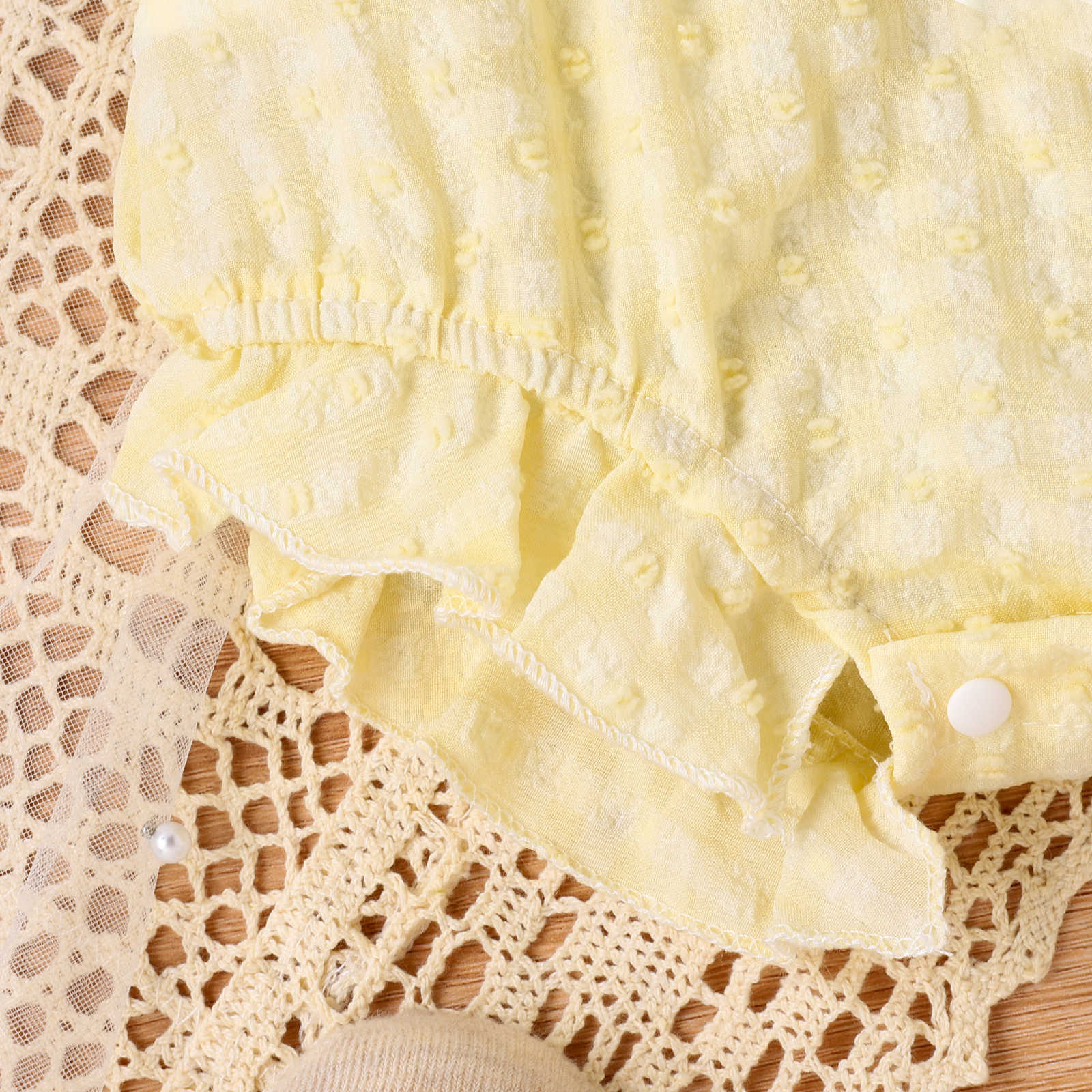 Ropa Infantil Baopai Estilo Japonés y Coreano Primavera y Verano Lindo Manga de Encaje Jacquard Cuadros Patrón Oscuro Lazo Envolvente Triangular Ropa Abierta