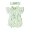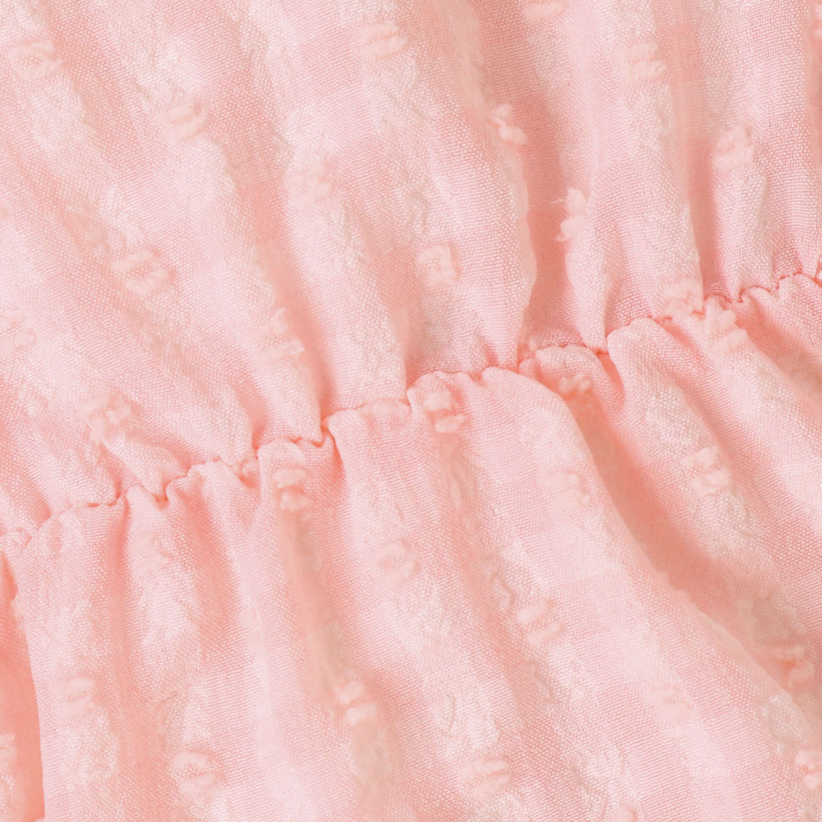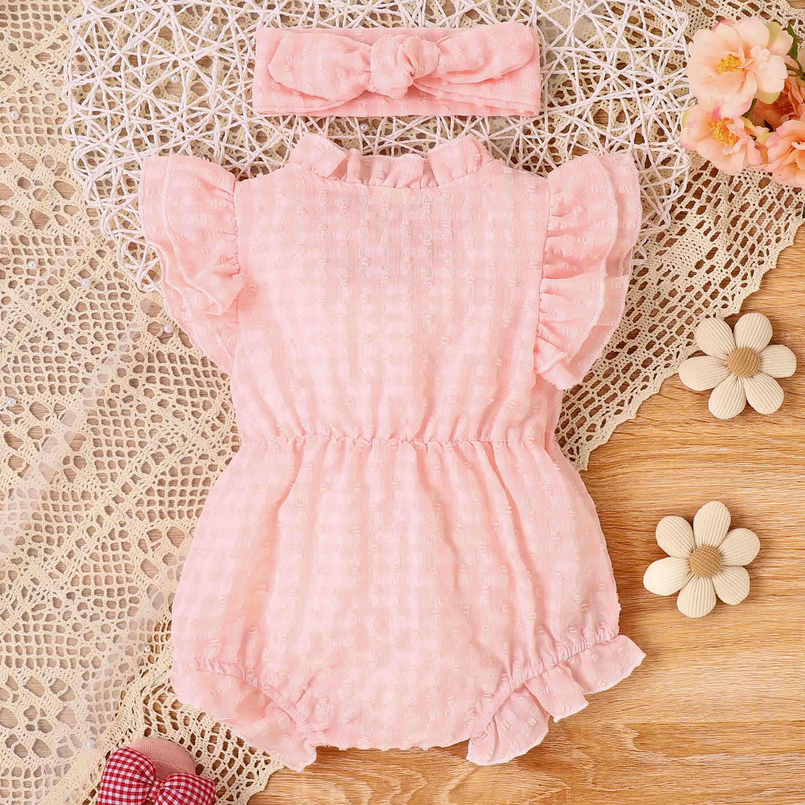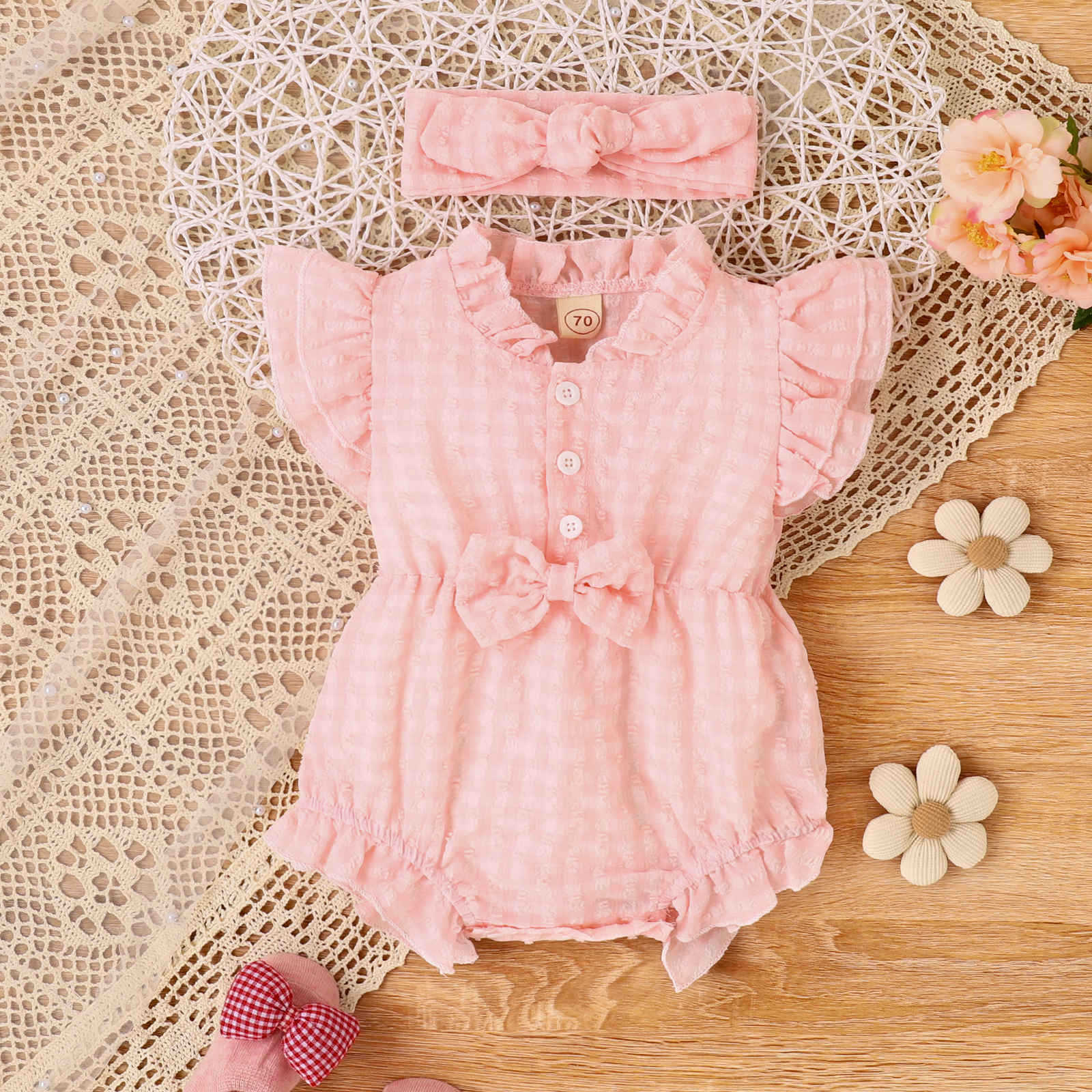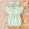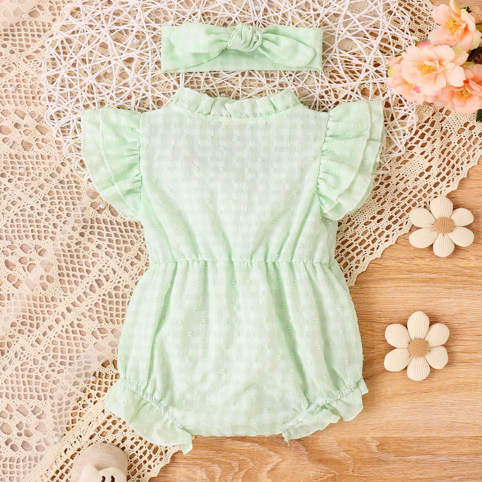 Ropa Infantil Baopai Estilo Japonés y Coreano Primavera y Verano Lindo Manga de Encaje Jacquard Cuadros Patrón Oscuro Lazo Envolvente Triangular Ropa Abierta
