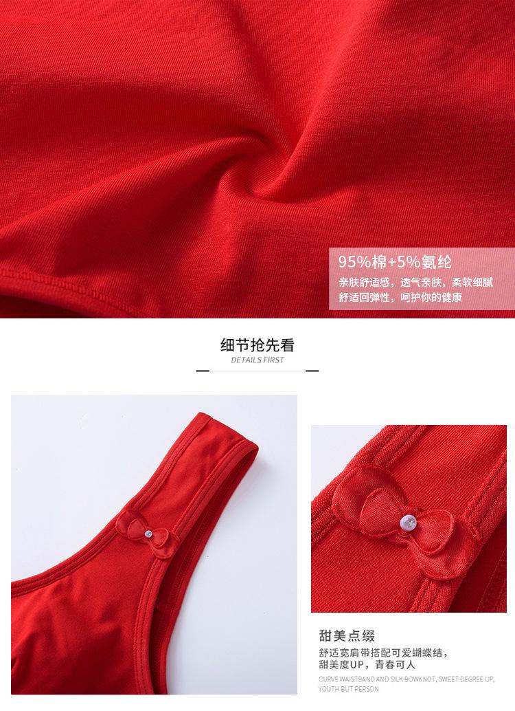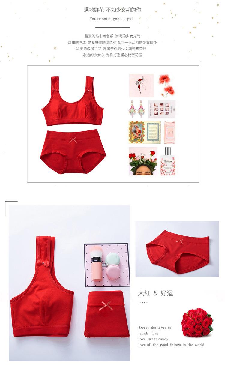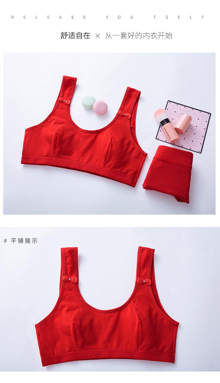 Conjunto de sujetador pequeño con diseño explosivo de niña para estudiantes de secundaria, de algodón rojo grande, con chaleco pequeño