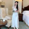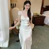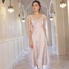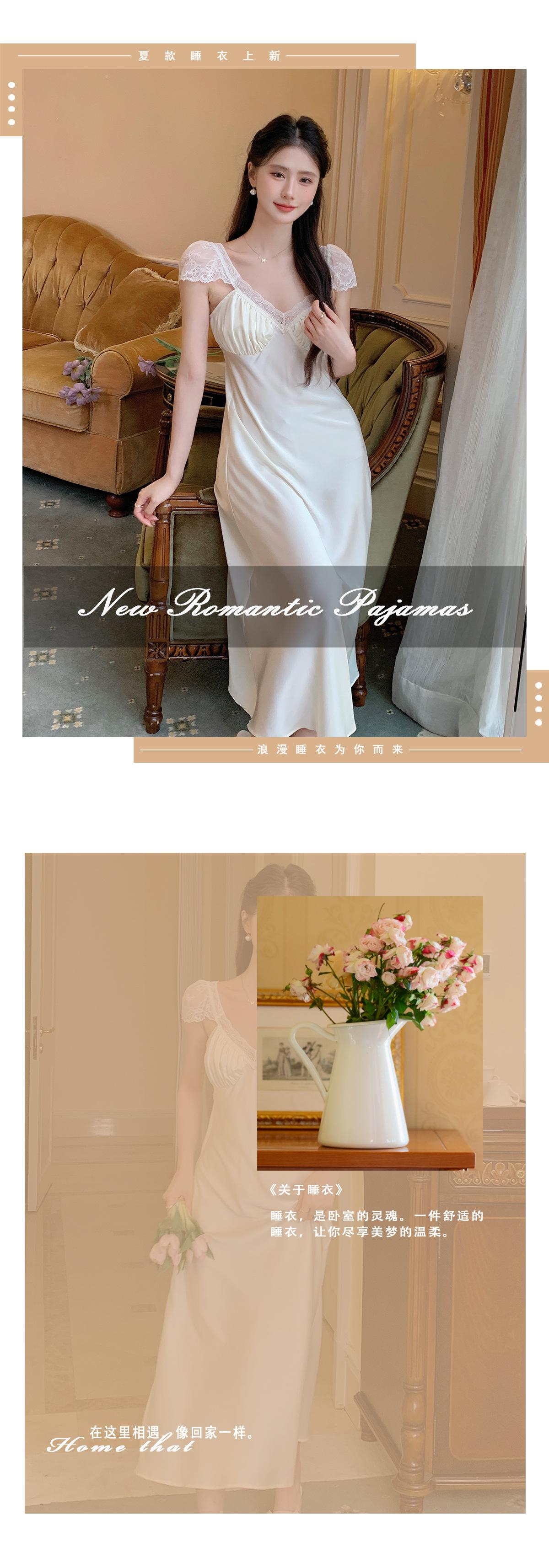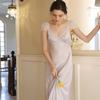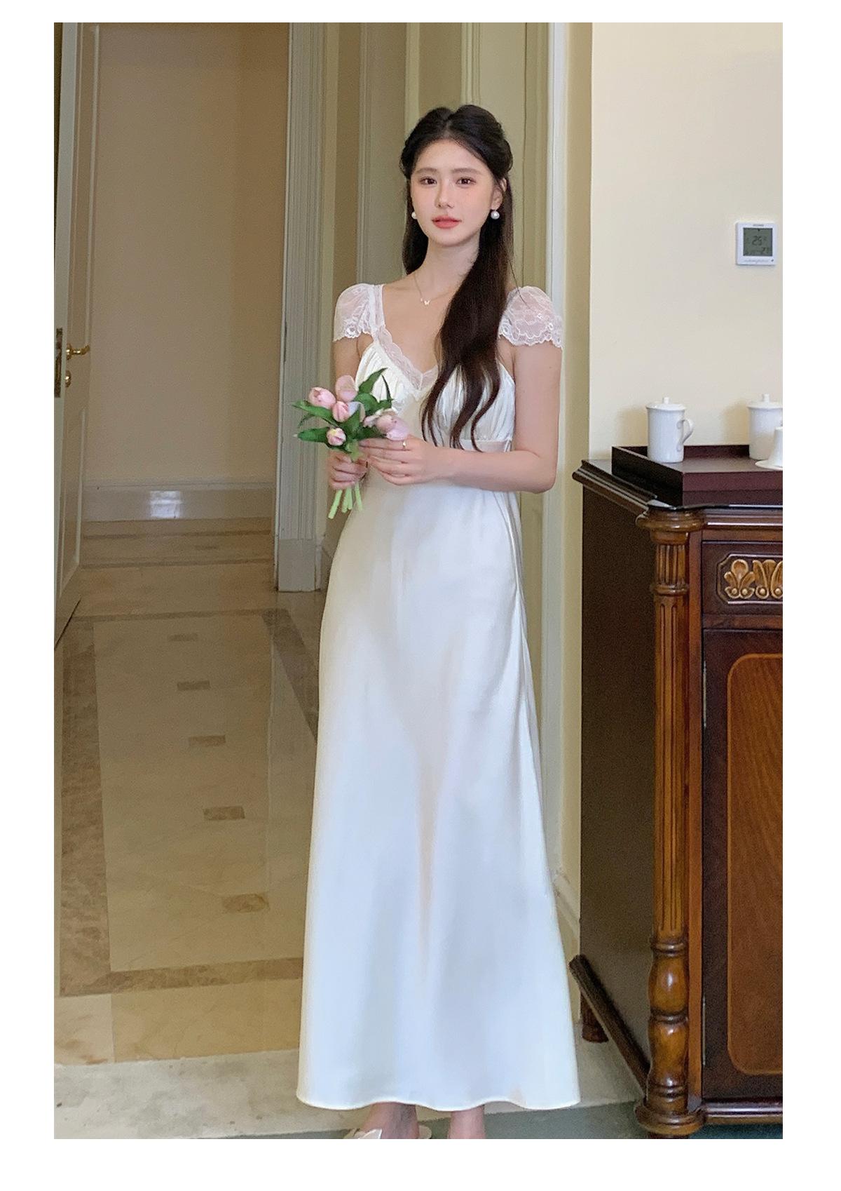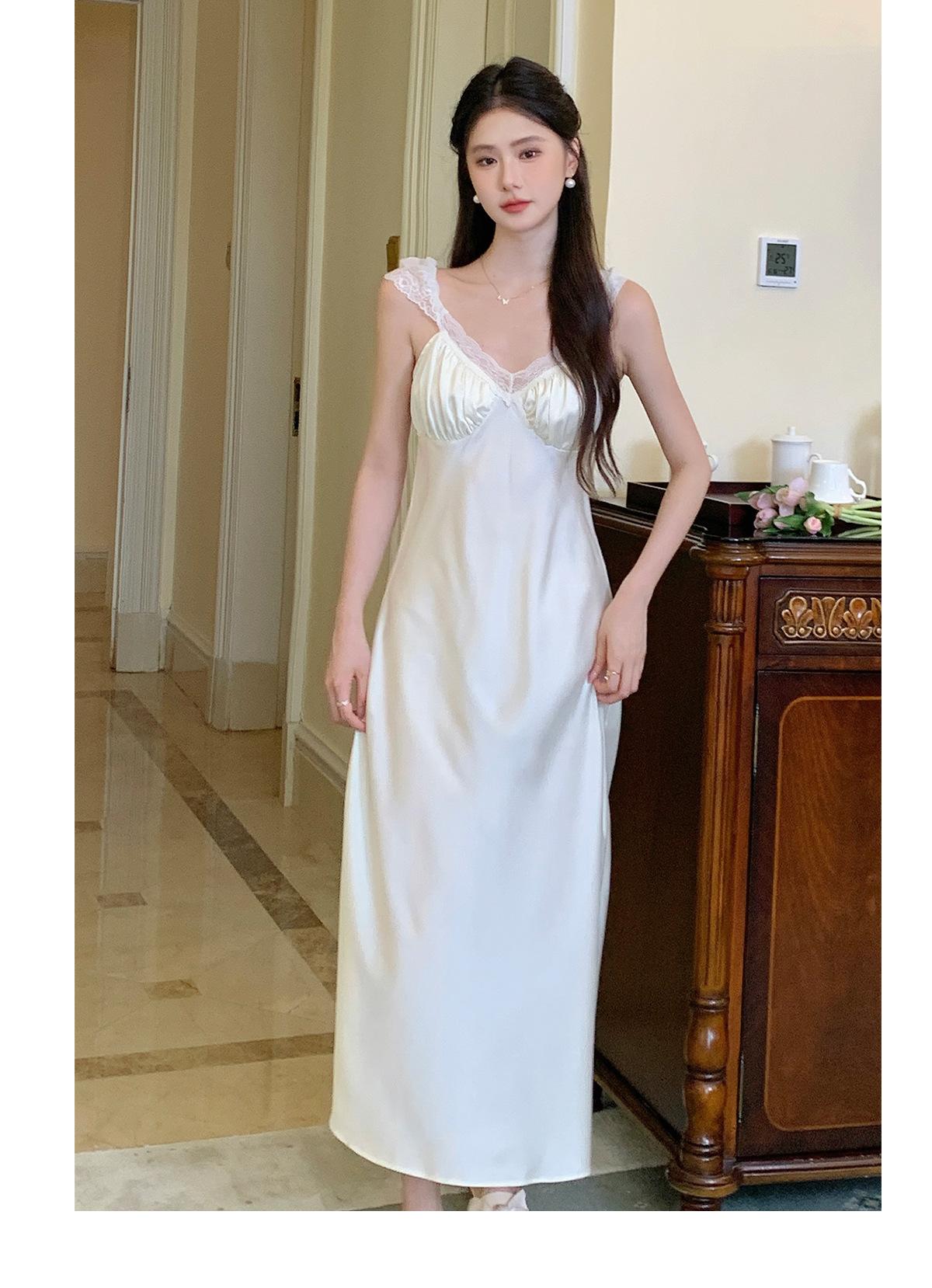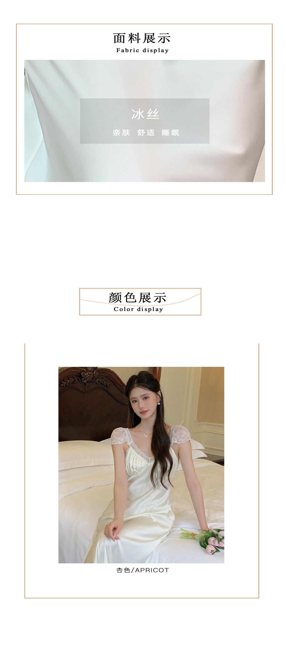 Pijama francés, Camisón largo, Camisón sexy de verano con cuello en V, Vestido para casa de satén de alta gama, fino, de color puro