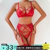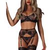 Suministro Transfronterizo Europeo y Americano Nuevo Sexy Rico Estampado Bordado Malla Transparente Sexy Conjunto de Liguero Conjunto de Tres Piezas