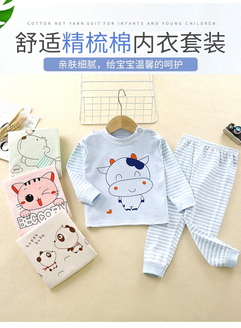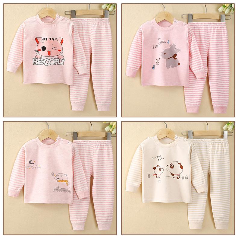 Ropa interior de algodón de colores para otoño e invierno para niños y niñas, lindos tops y pantalones térmicos para bebés y niños