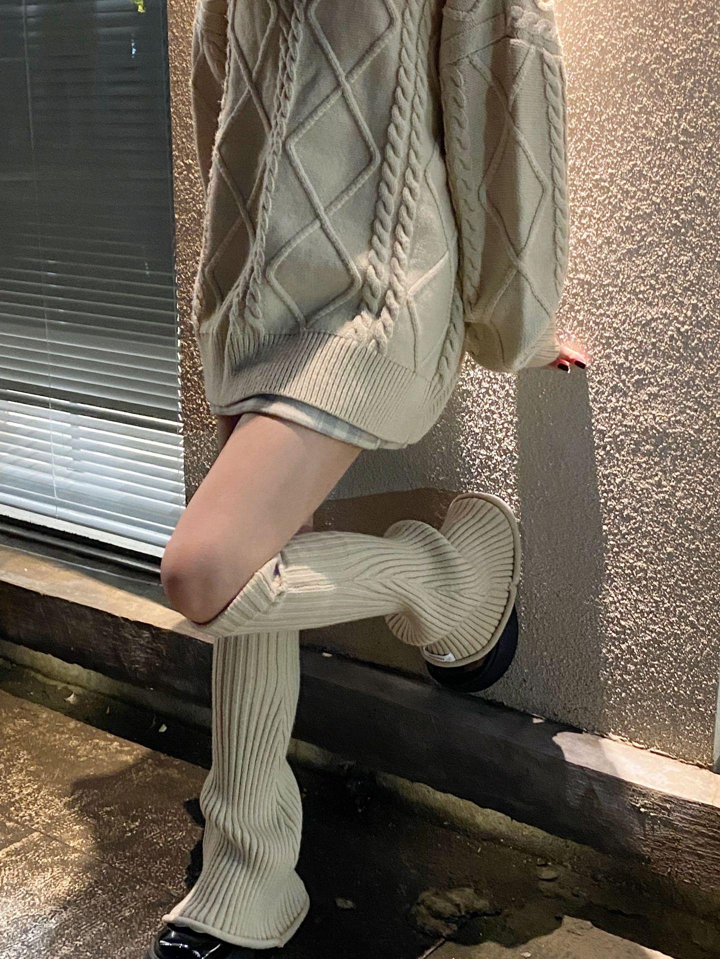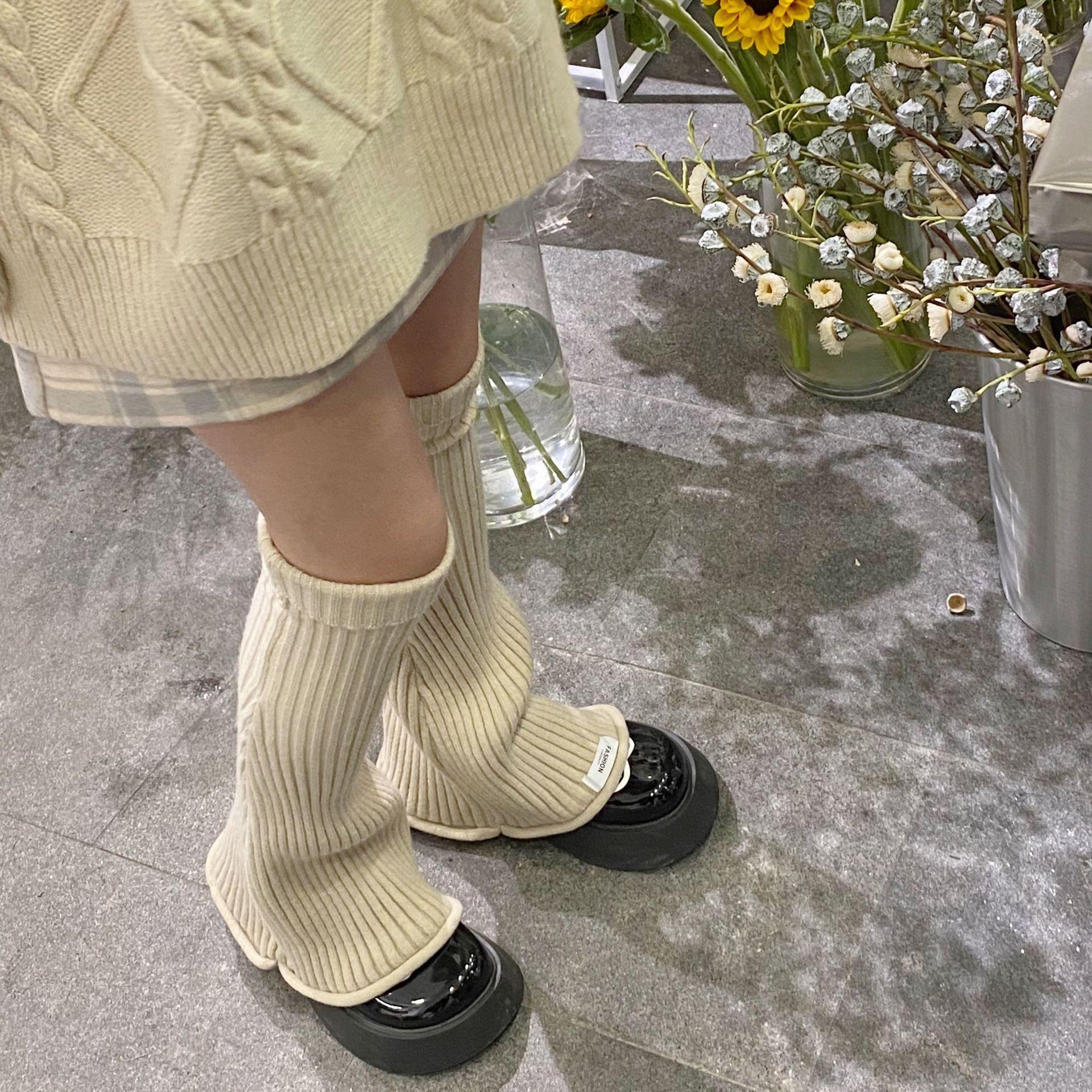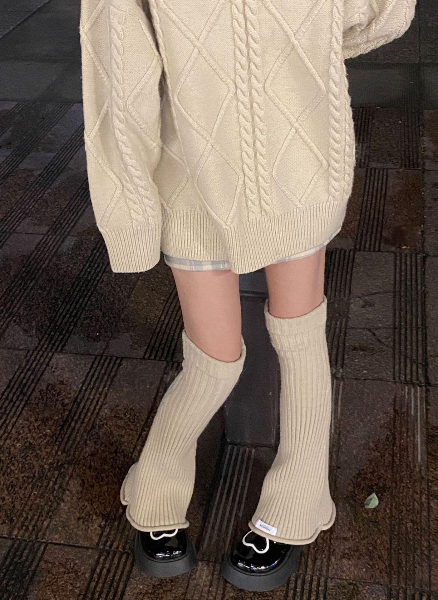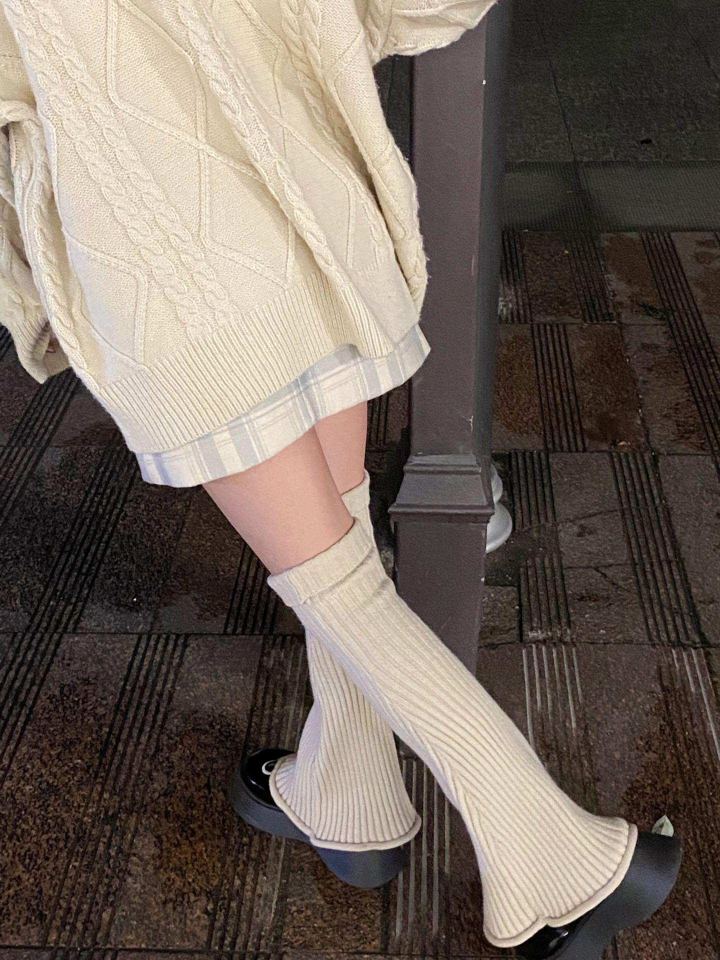Otoño e Invierno Celebridad de Internet Calentador de Piernas Cálido Retro Forma de Cuerno Herradura Pequeño Delgado Tejido de Lana a Rayas Calcetines Anchos para Pierna