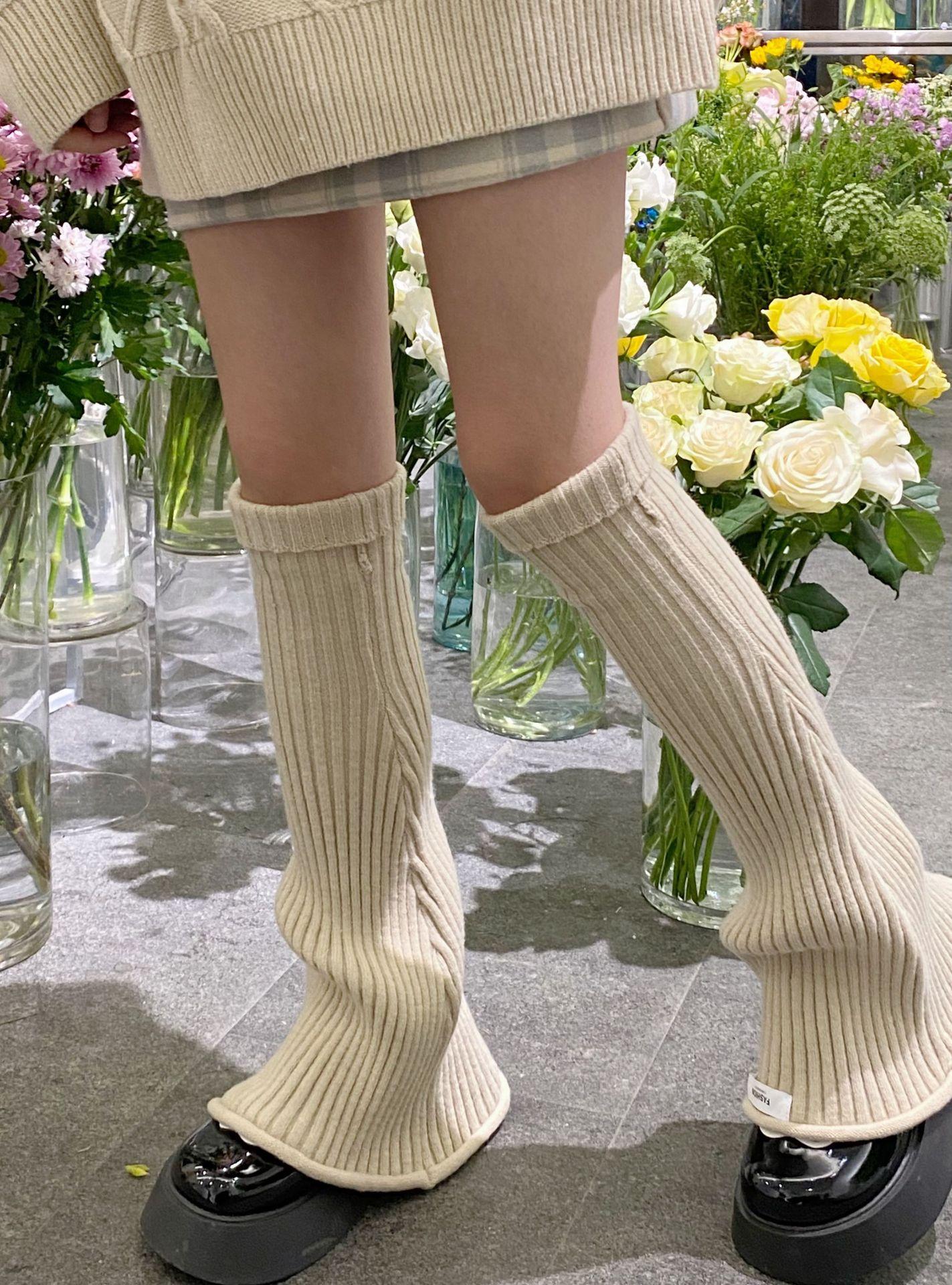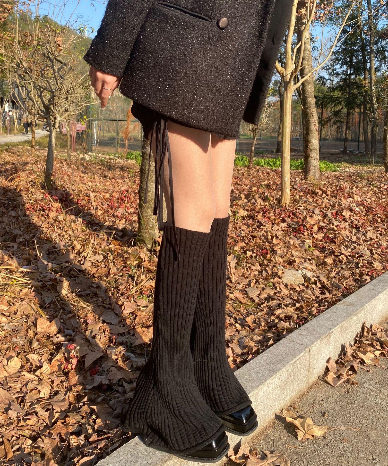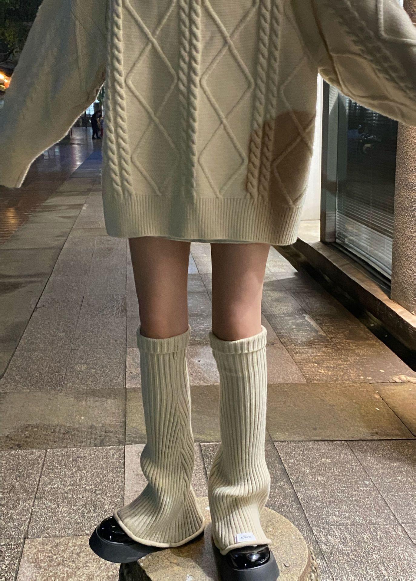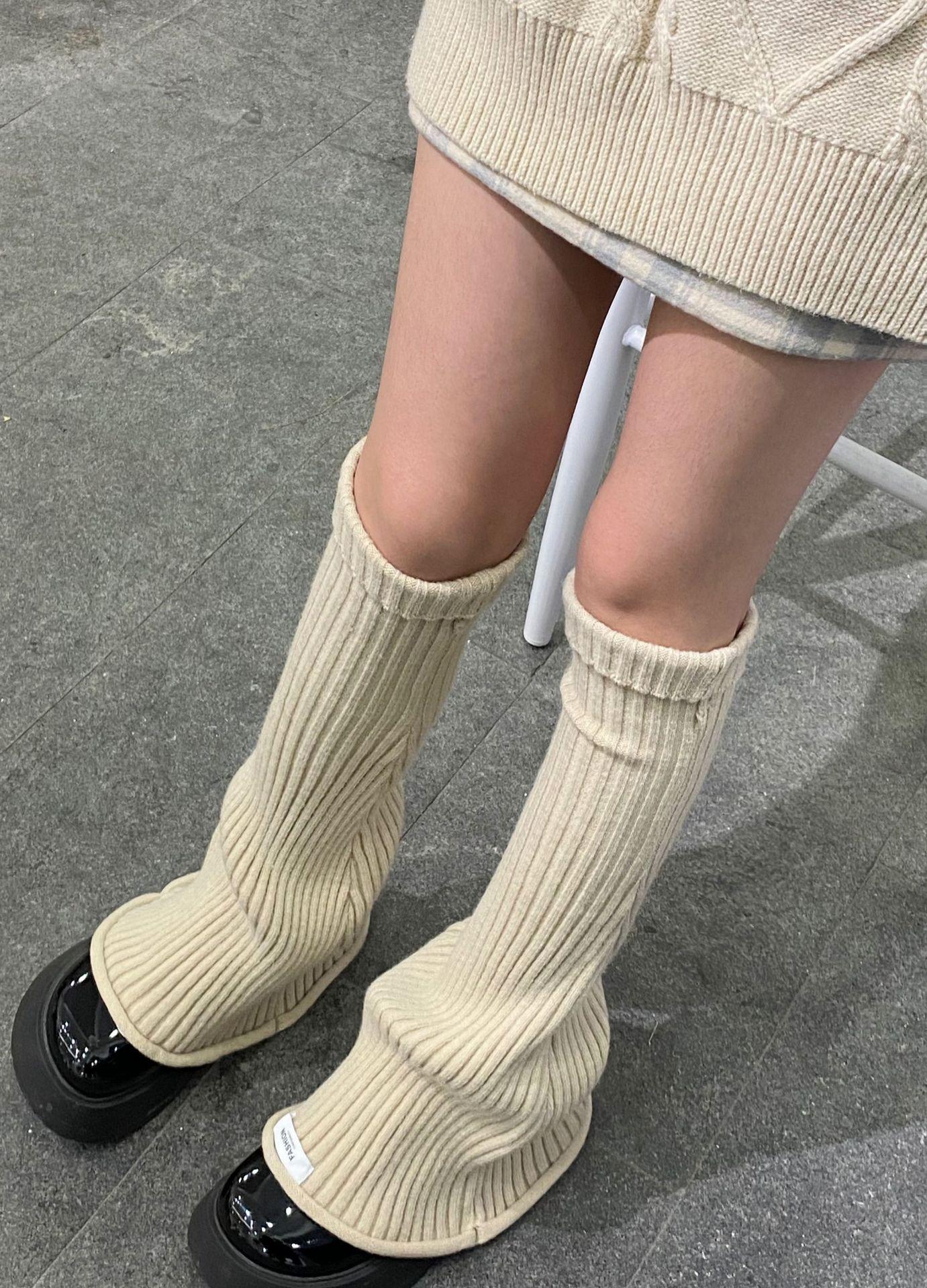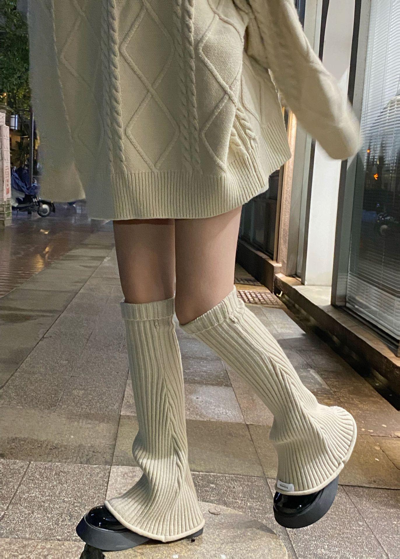 Otoño e Invierno Celebridad de Internet Calentador de Piernas Cálido Retro Forma de Cuerno Herradura Pequeño Delgado Tejido de Lana a Rayas Calcetines Anchos para Pierna