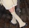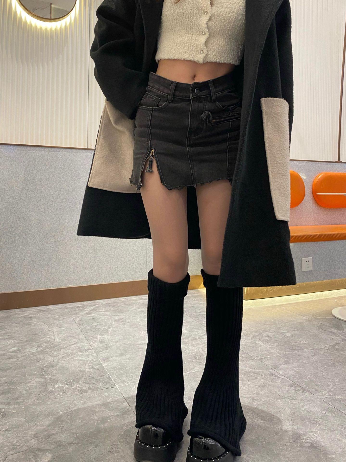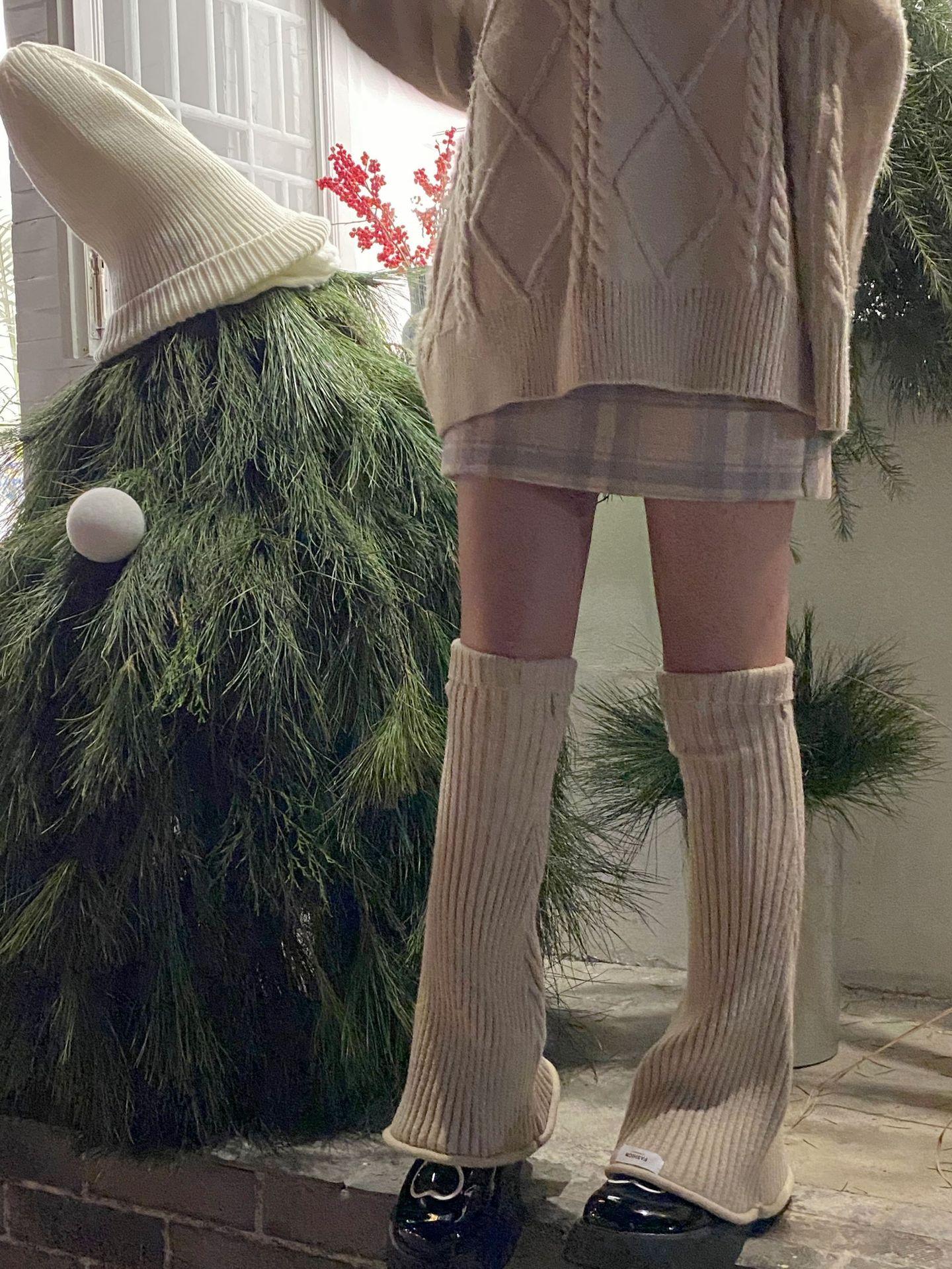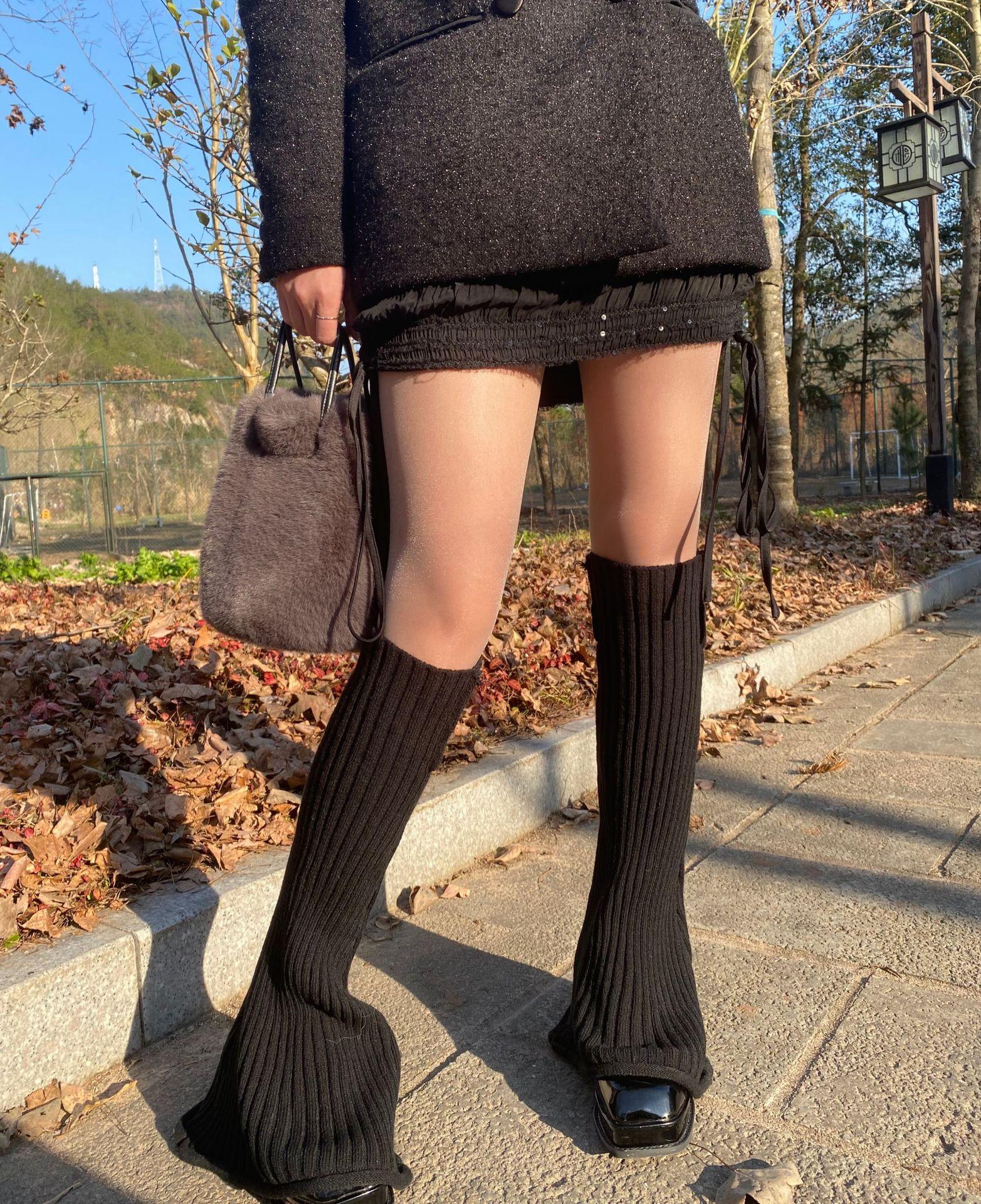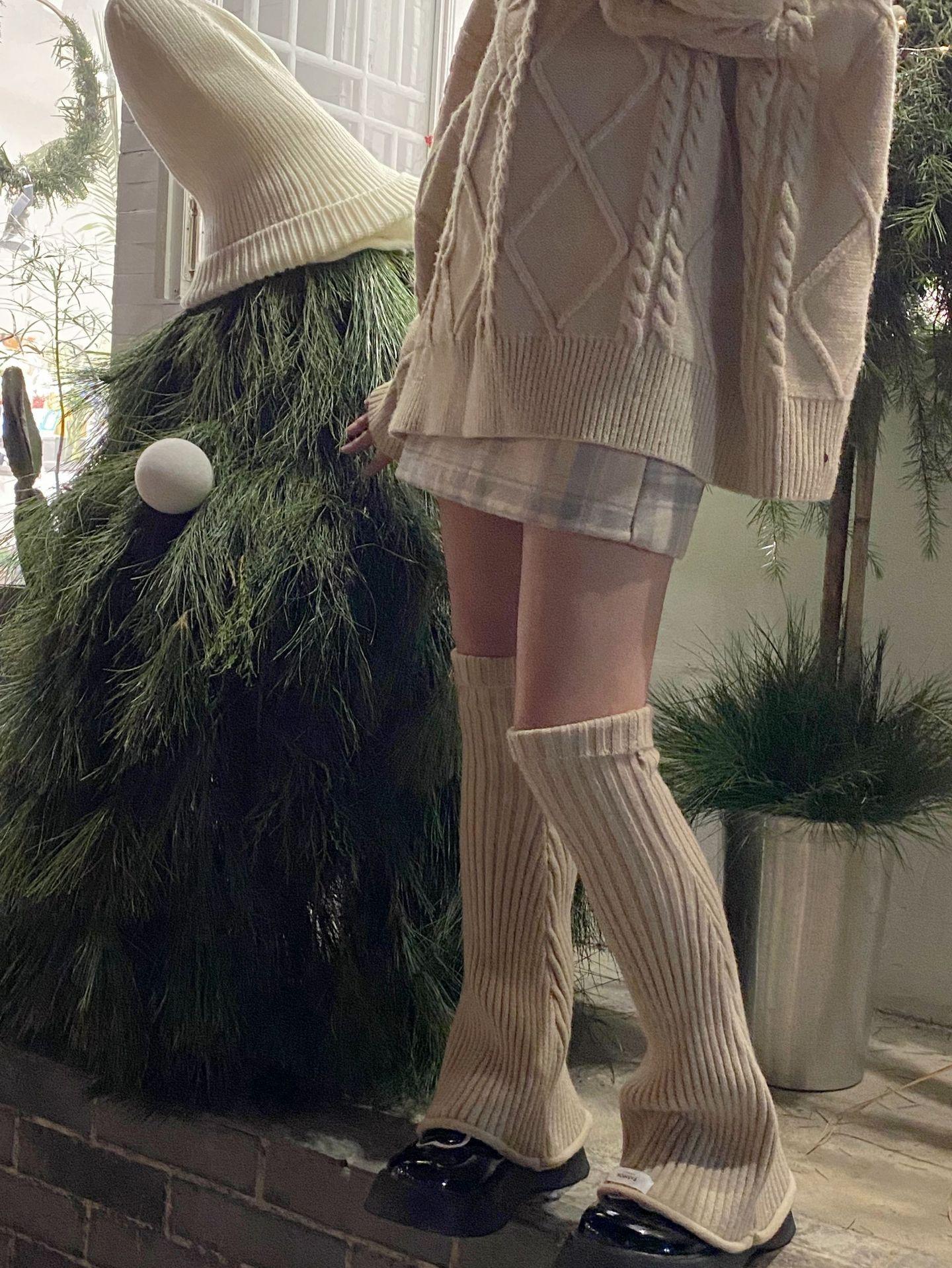 Otoño e Invierno Celebridad de Internet Calentador de Piernas Cálido Retro Forma de Cuerno Herradura Pequeño Delgado Tejido de Lana a Rayas Calcetines Anchos para Pierna