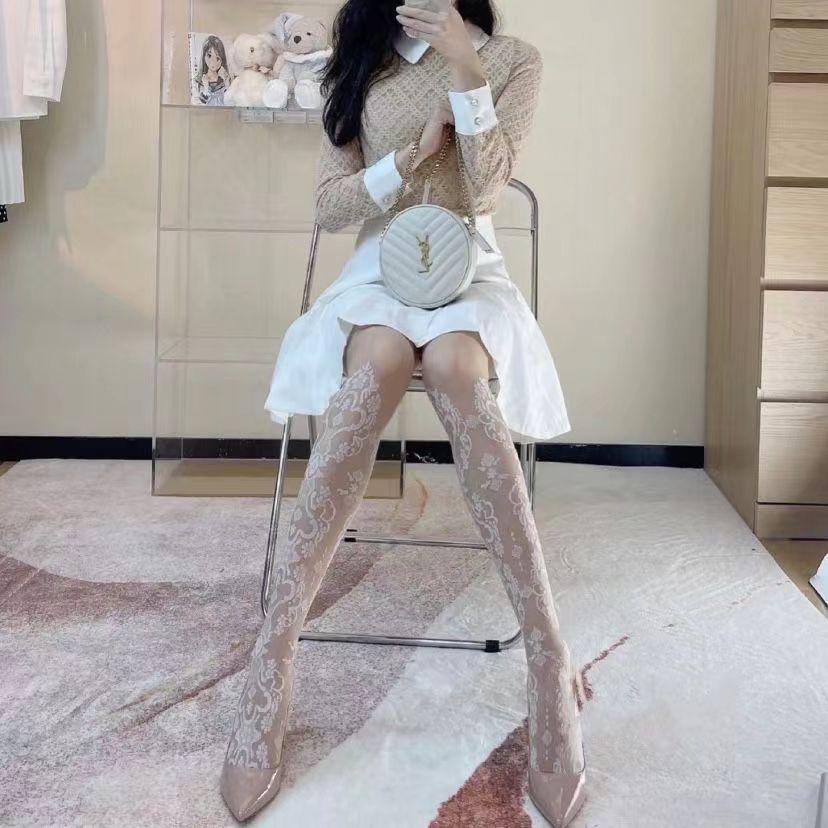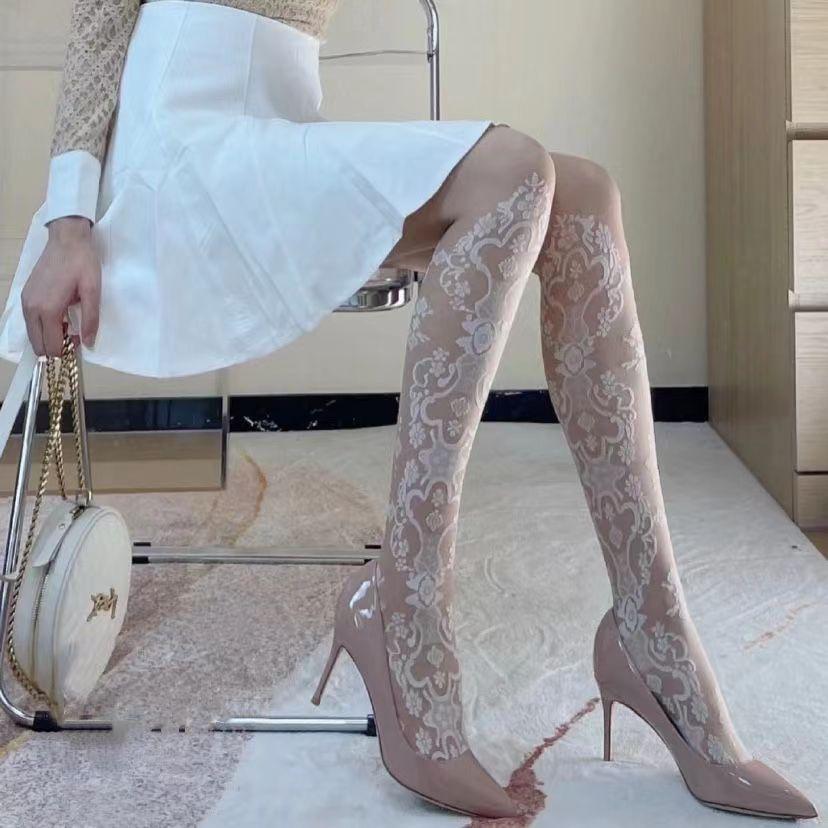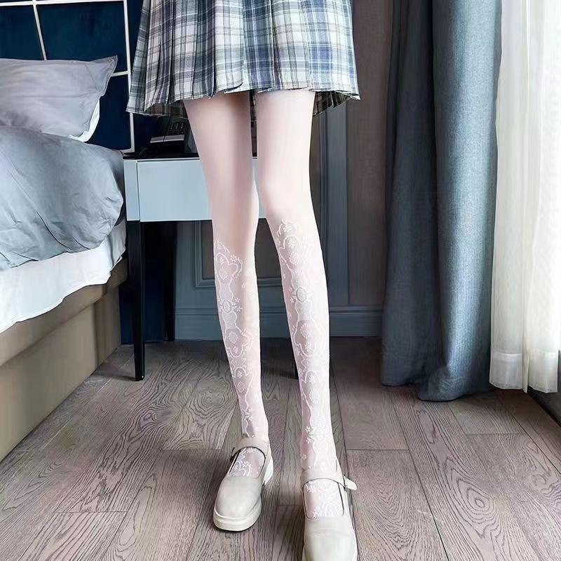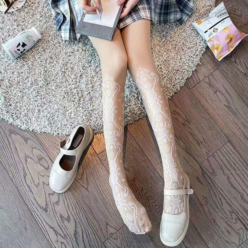 Medias Venus elegantes huecas de seda blanca jk moldeadoras de piernas jacquard delgadas anti-desgarros sexy medias panty para niña hot