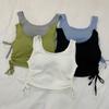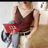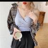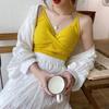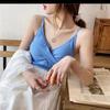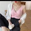 Verano Algodón Puro Sexy Cuello en V Versátil Chaleco Tirantes con Almohadilla de Soporte Uso Interior Uso Exterior Top Chica Picante Ajustado Adelgazante