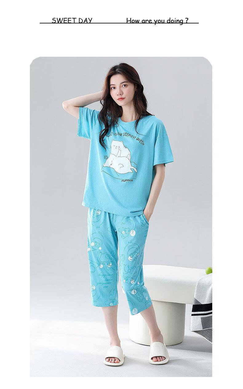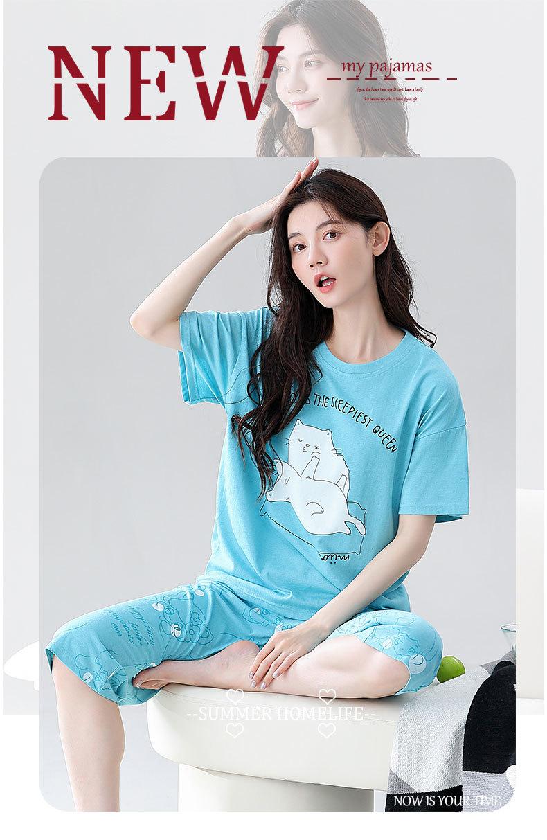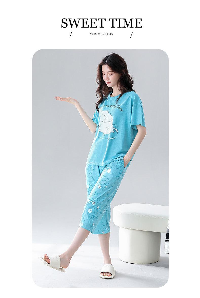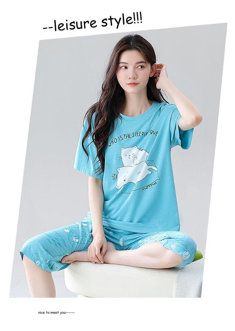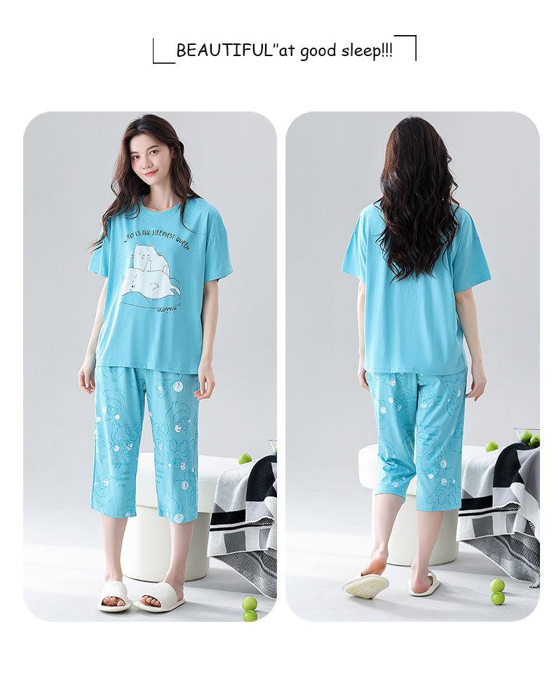 Pijama de verano para mujer, de algodón fino, de manga corta, con pantalones cortos, traje informal de dibujos animados, de talla grande, holgado, para exteriores y hogar