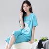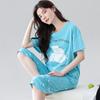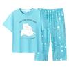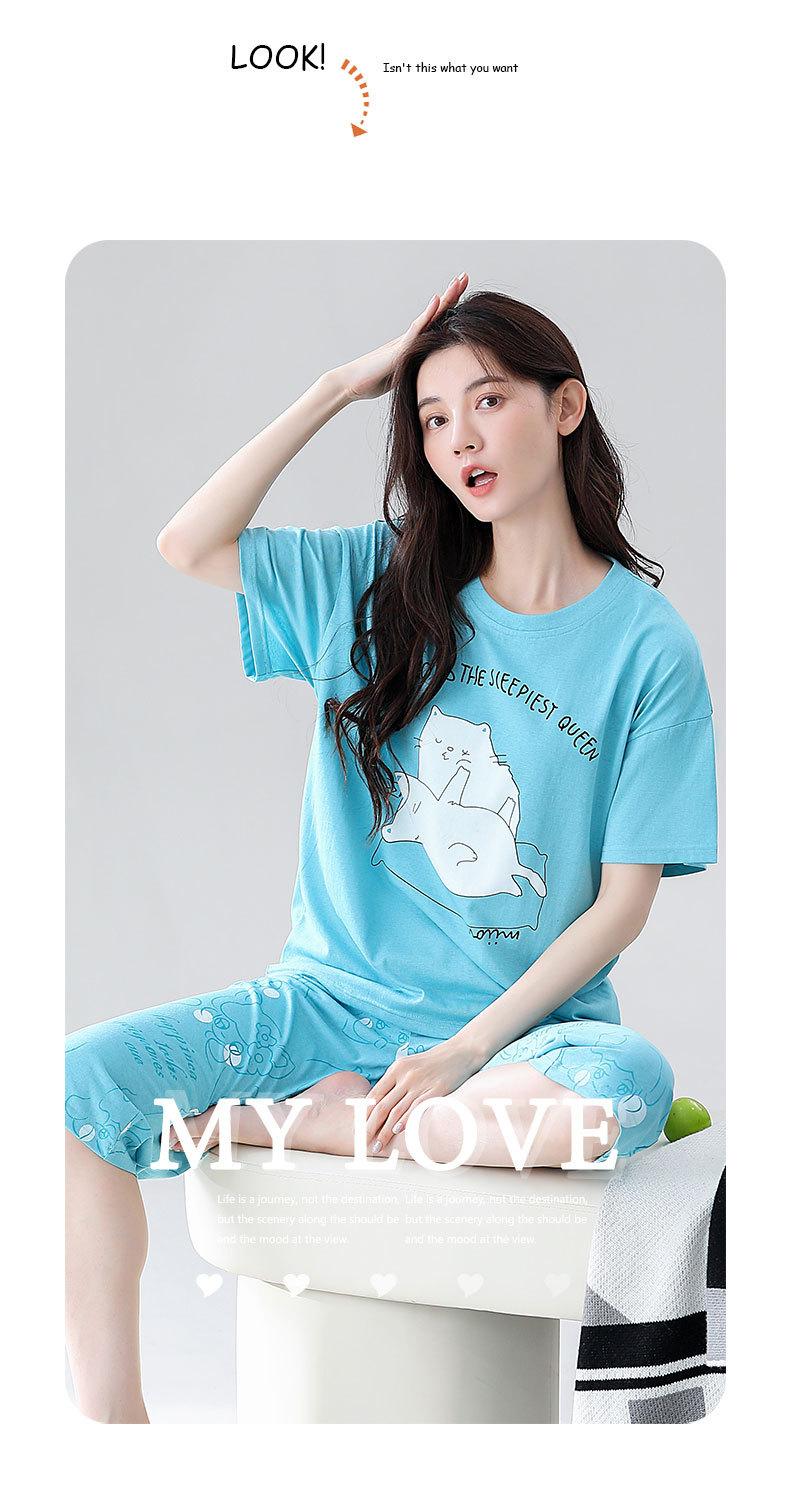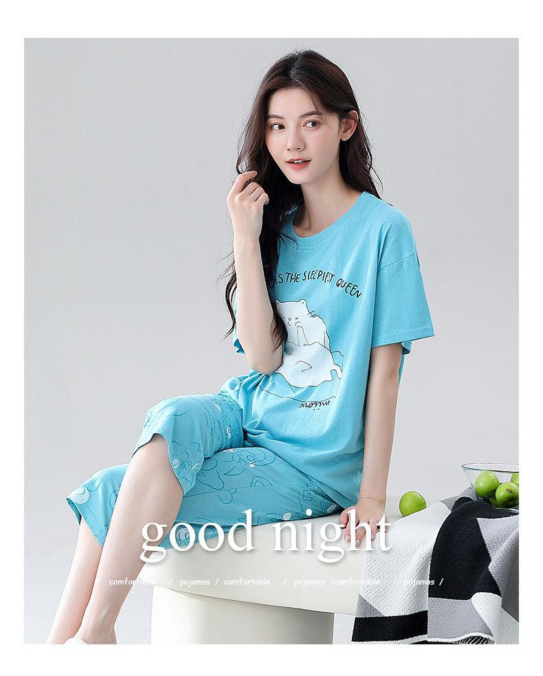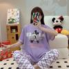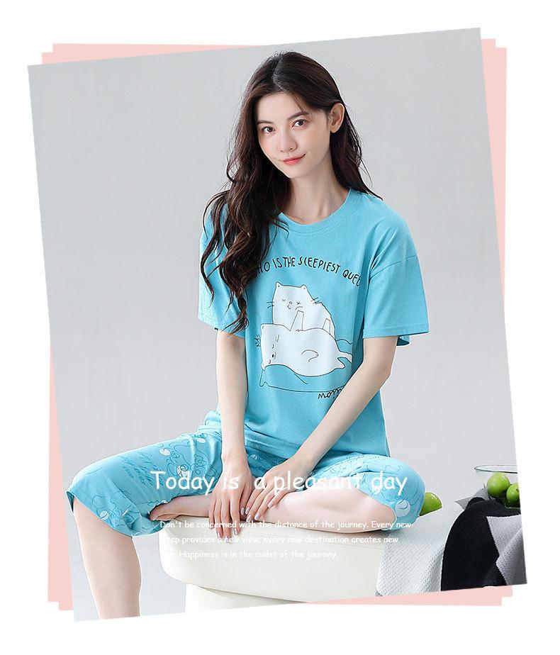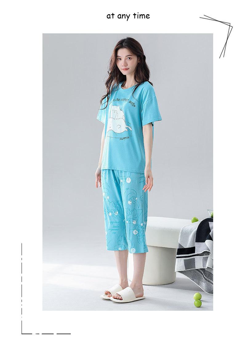 Pijama de verano para mujer, de algodón fino, de manga corta, con pantalones cortos, traje informal de dibujos animados, de talla grande, holgado, para exteriores y hogar