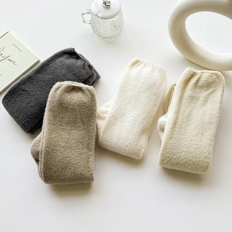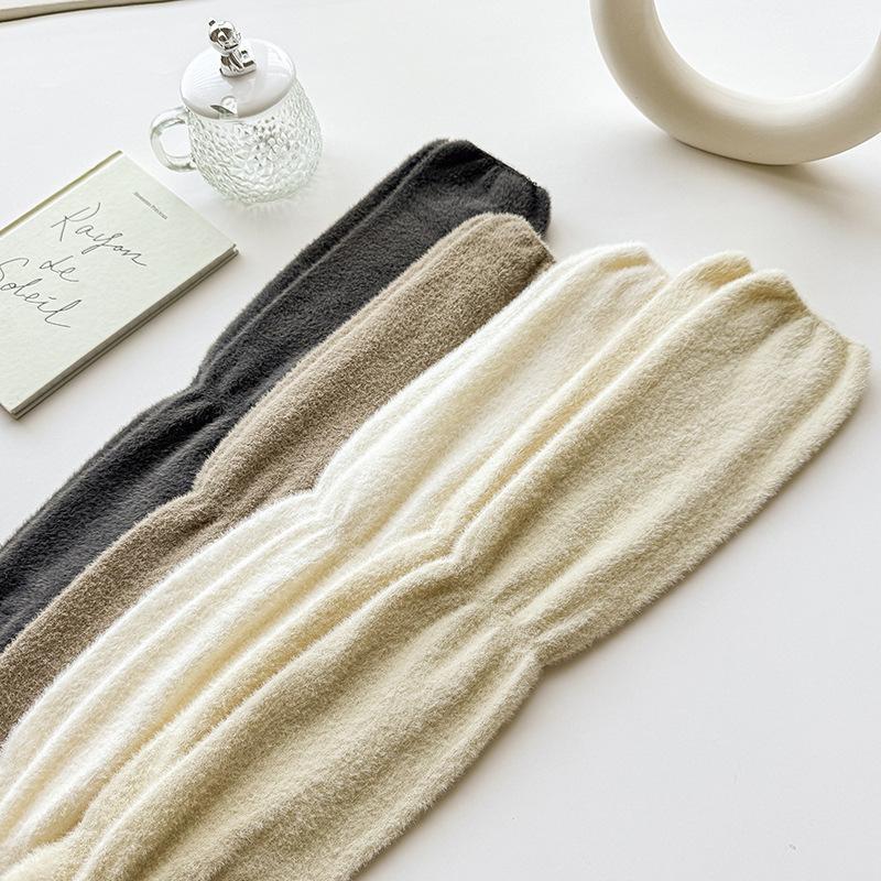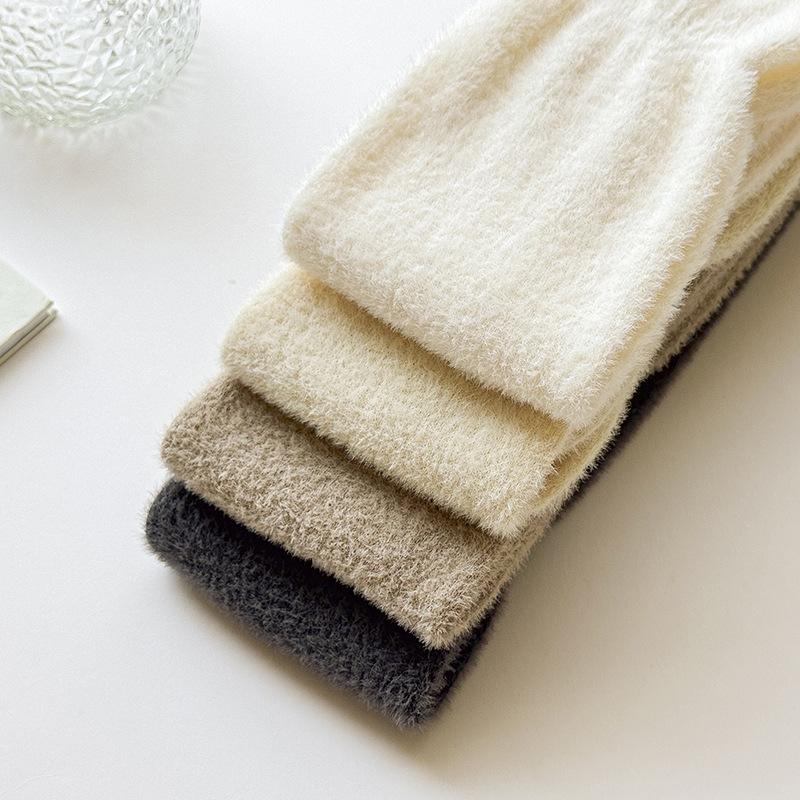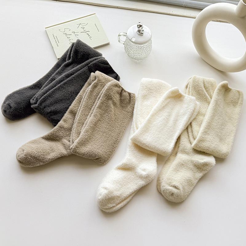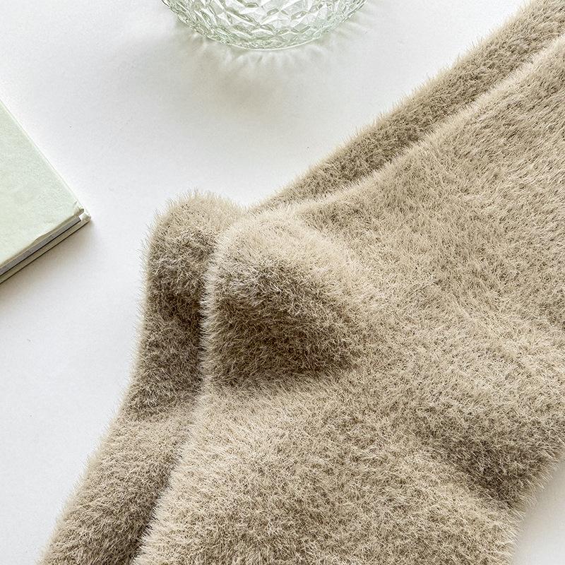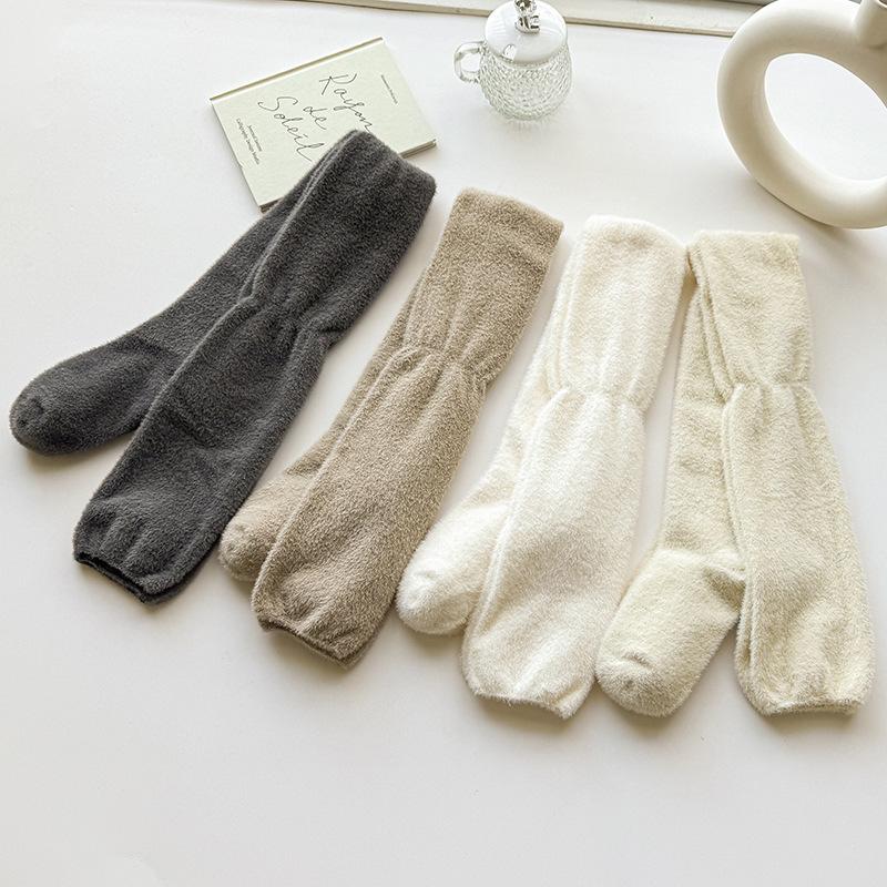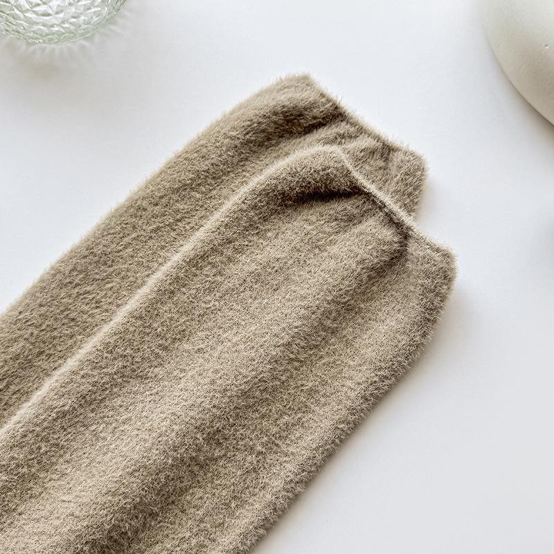 Calcetines hasta la rodilla de terciopelo fino, cálidos, de color liso y pelo grueso, con botas, estilo preppy y peludo, para otoño e invierno.