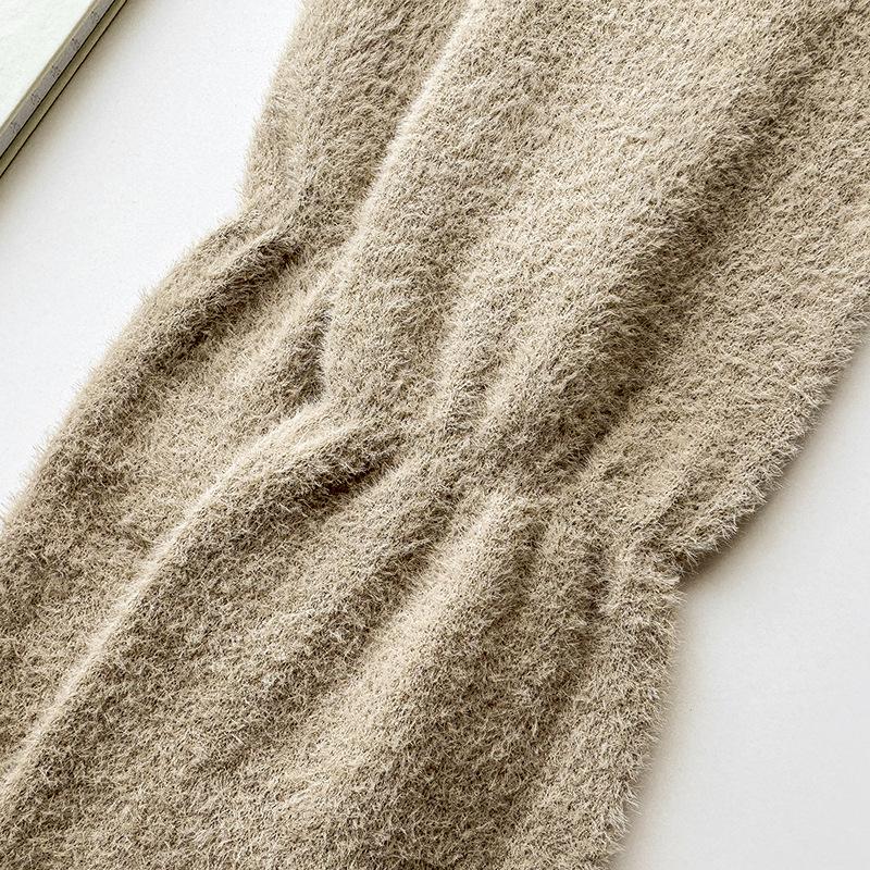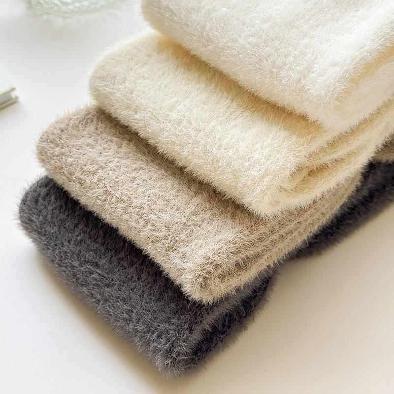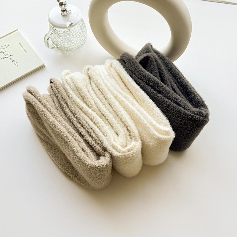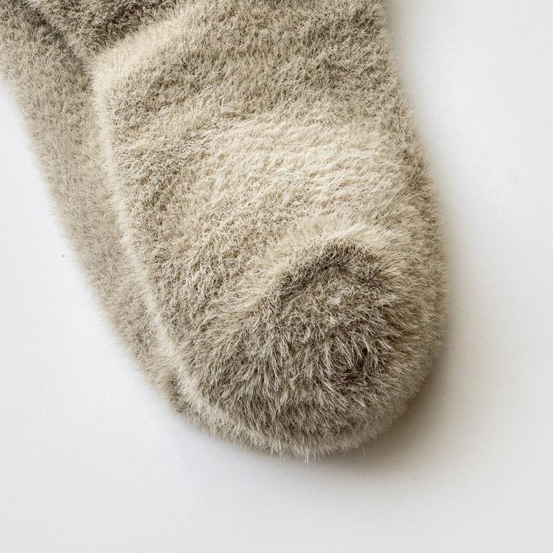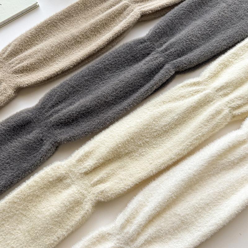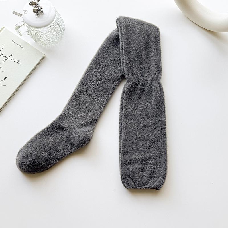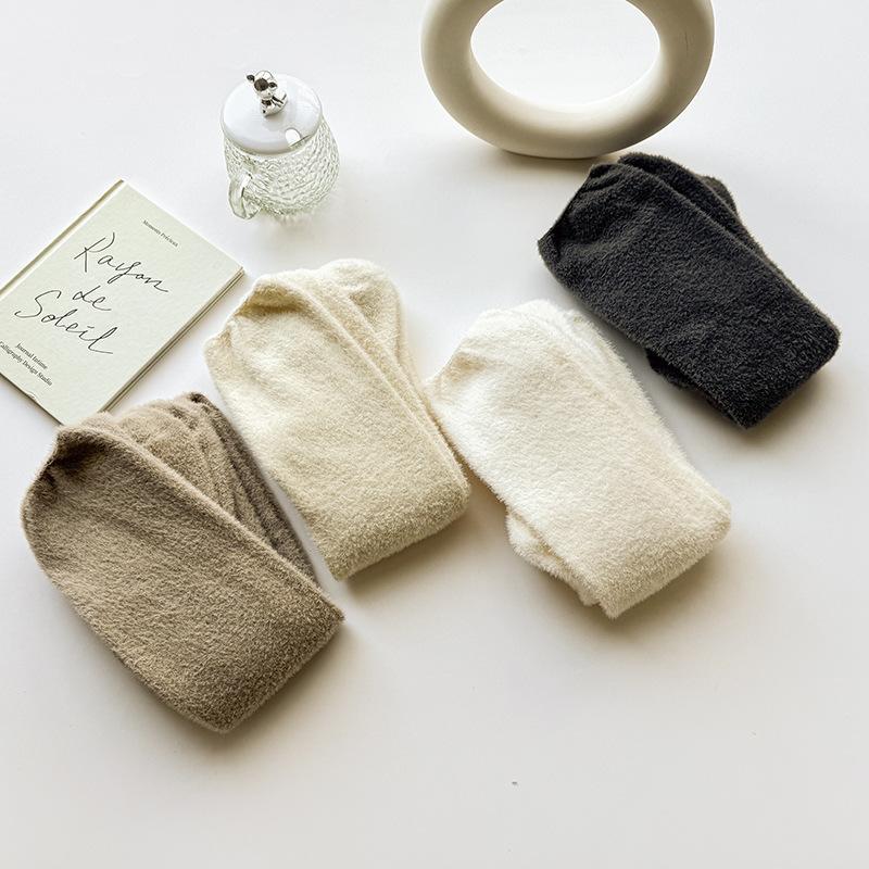 Calcetines hasta la rodilla de terciopelo fino, cálidos, de color liso y pelo grueso, con botas, estilo preppy y peludo, para otoño e invierno.