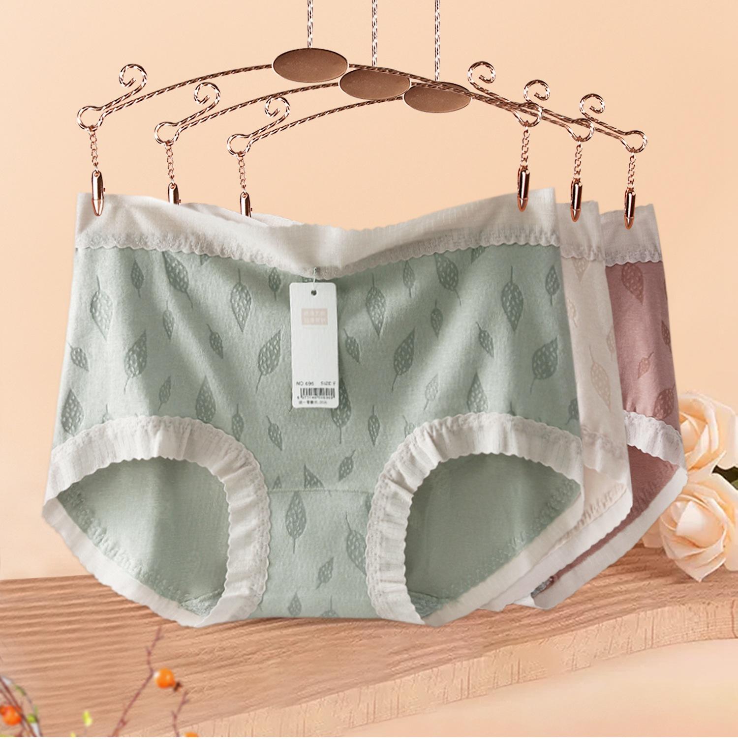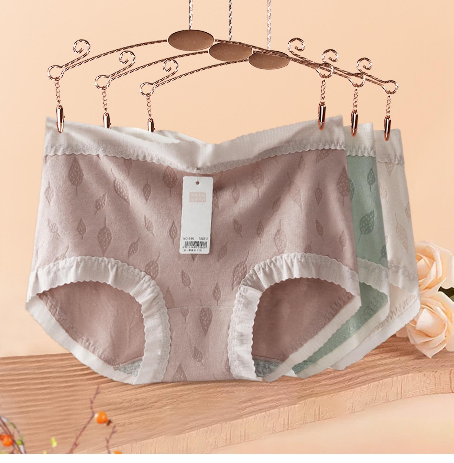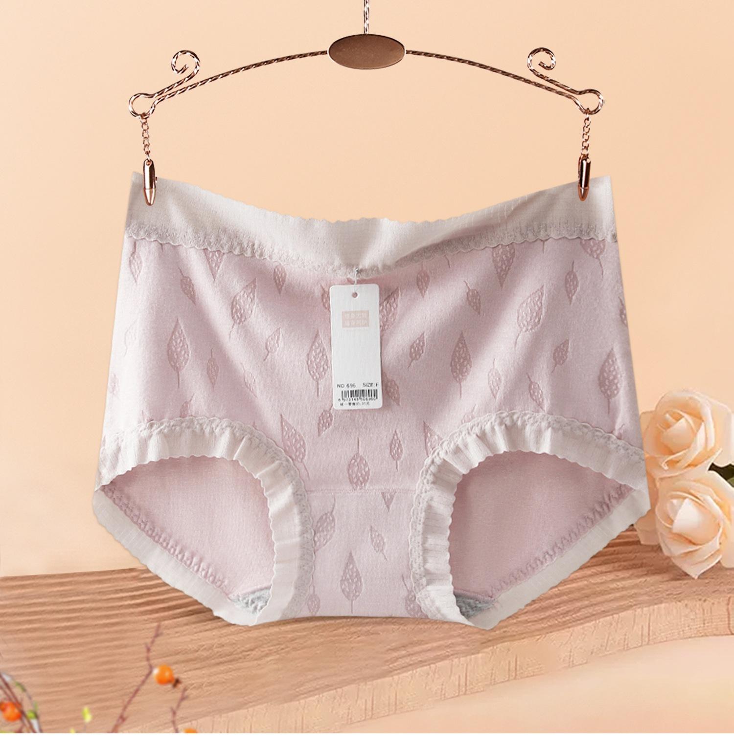 Ropa interior fina de algodón jacquard para mujer, bragas triangulares de cintura media ensanchadas, cómodas y con realce de cadera, con encaje, talla grande, para chica gordita