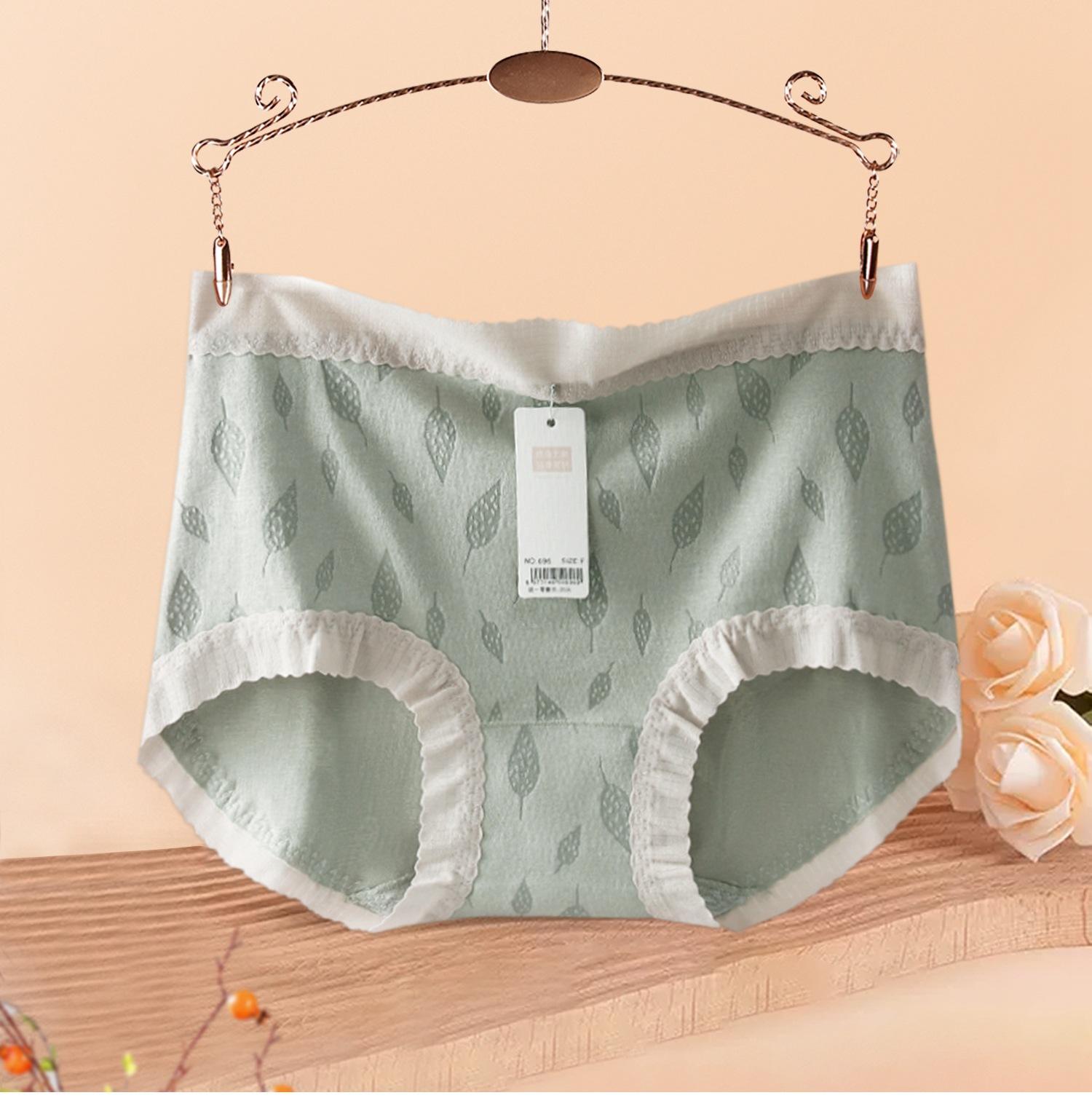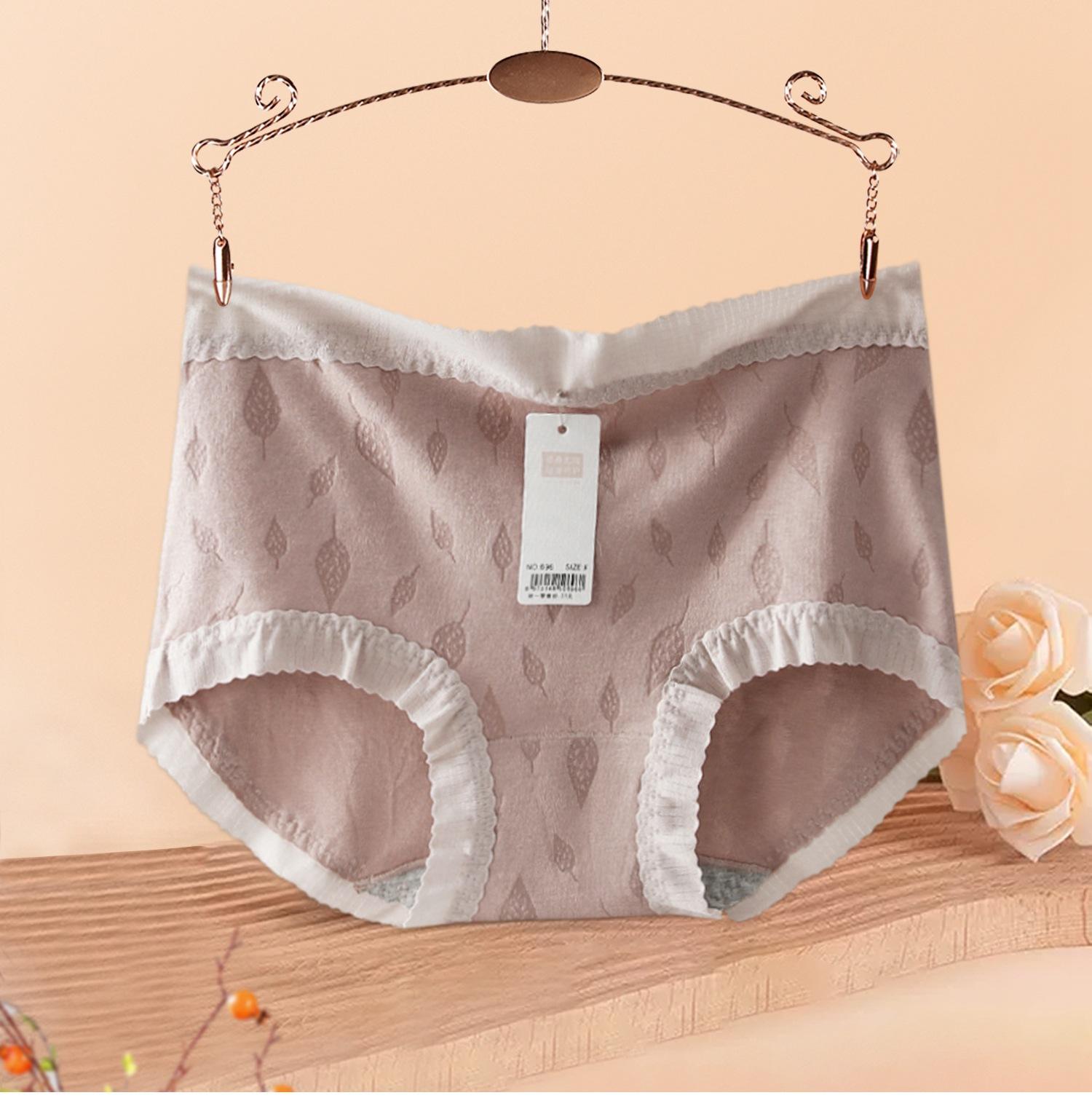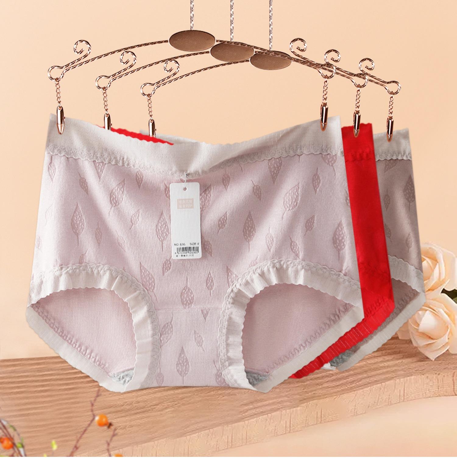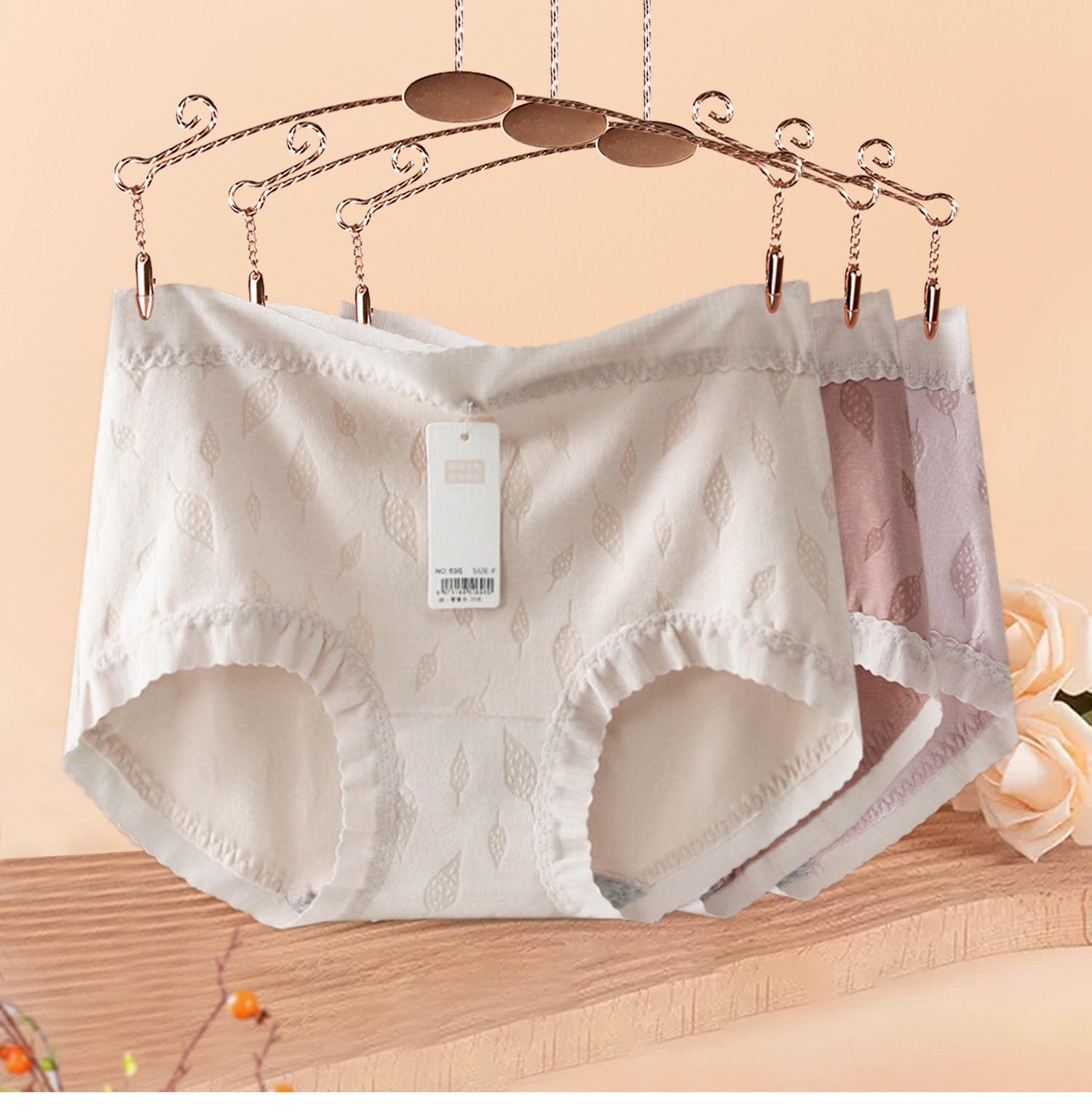 Ropa interior fina de algodón jacquard para mujer, bragas triangulares de cintura media ensanchadas, cómodas y con realce de cadera, con encaje, talla grande, para chica gordita