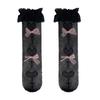 Calcetines de tubo medio con lazo de encaje en blanco y negro con diseño de piruleta de amor