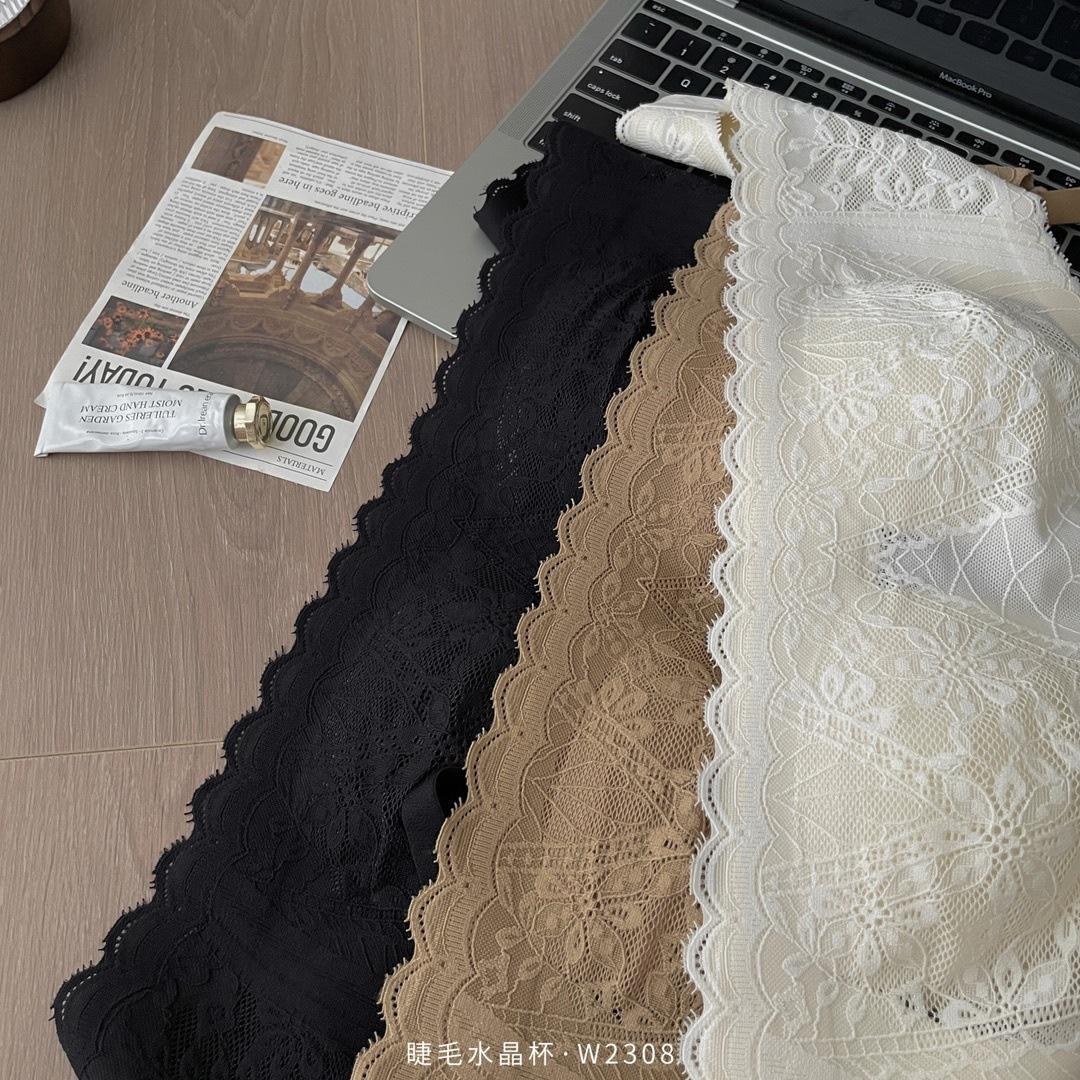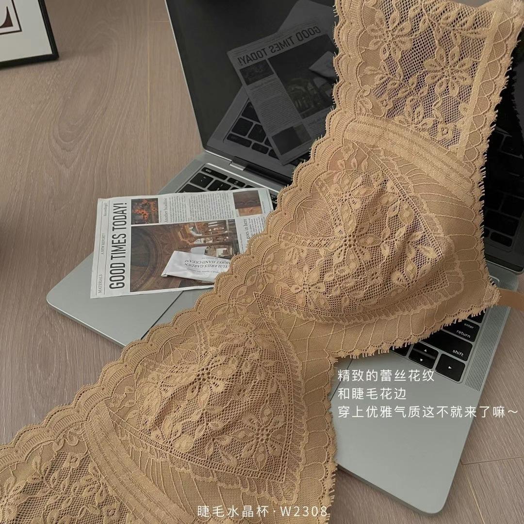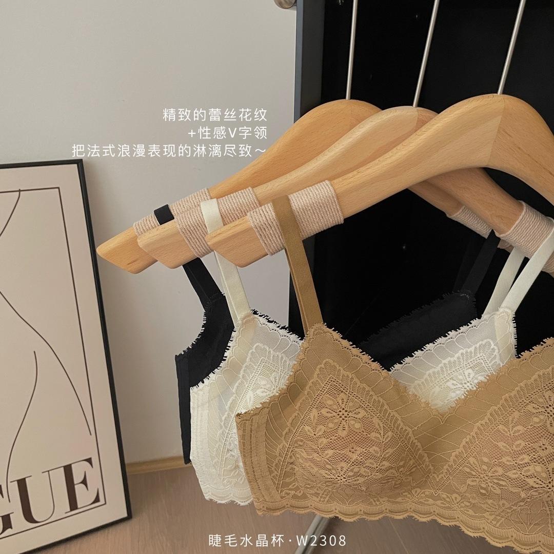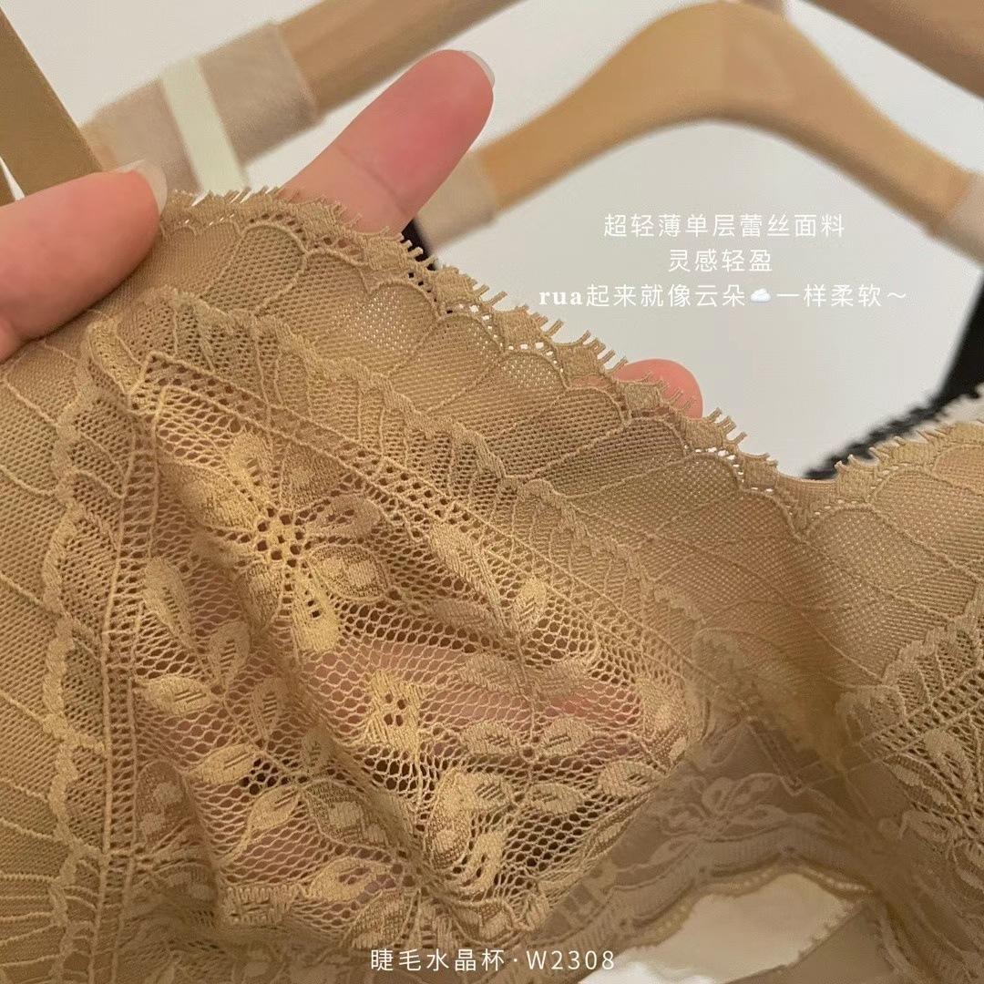 Ropa interior para busto pequeño para mujer Encaje de pestañas Orejas de conejo Copa de cristal Sin marcas Sin aro de acero Lujo ligero Hueco francés Exquisito Amigable con la piel