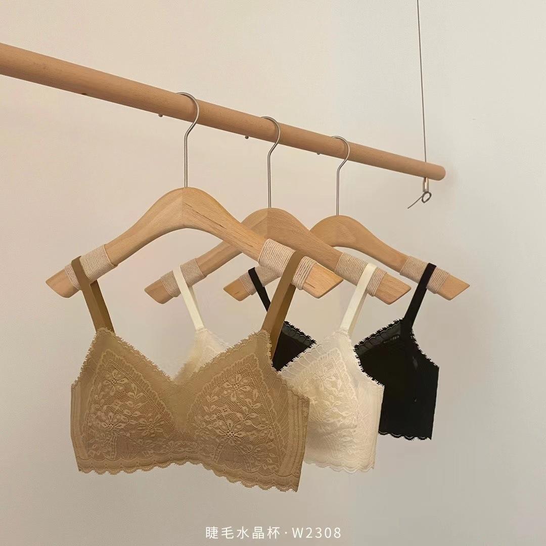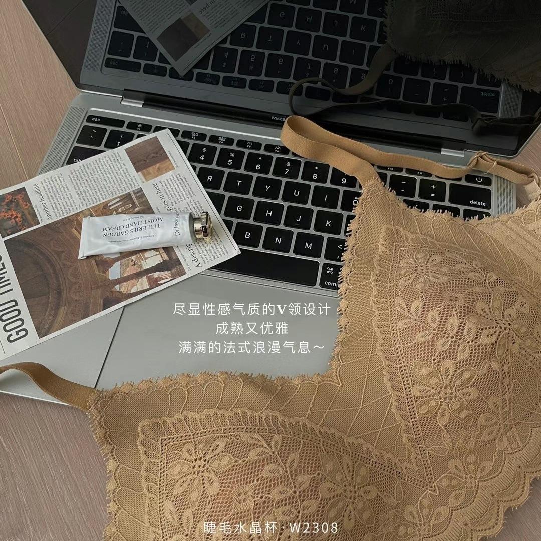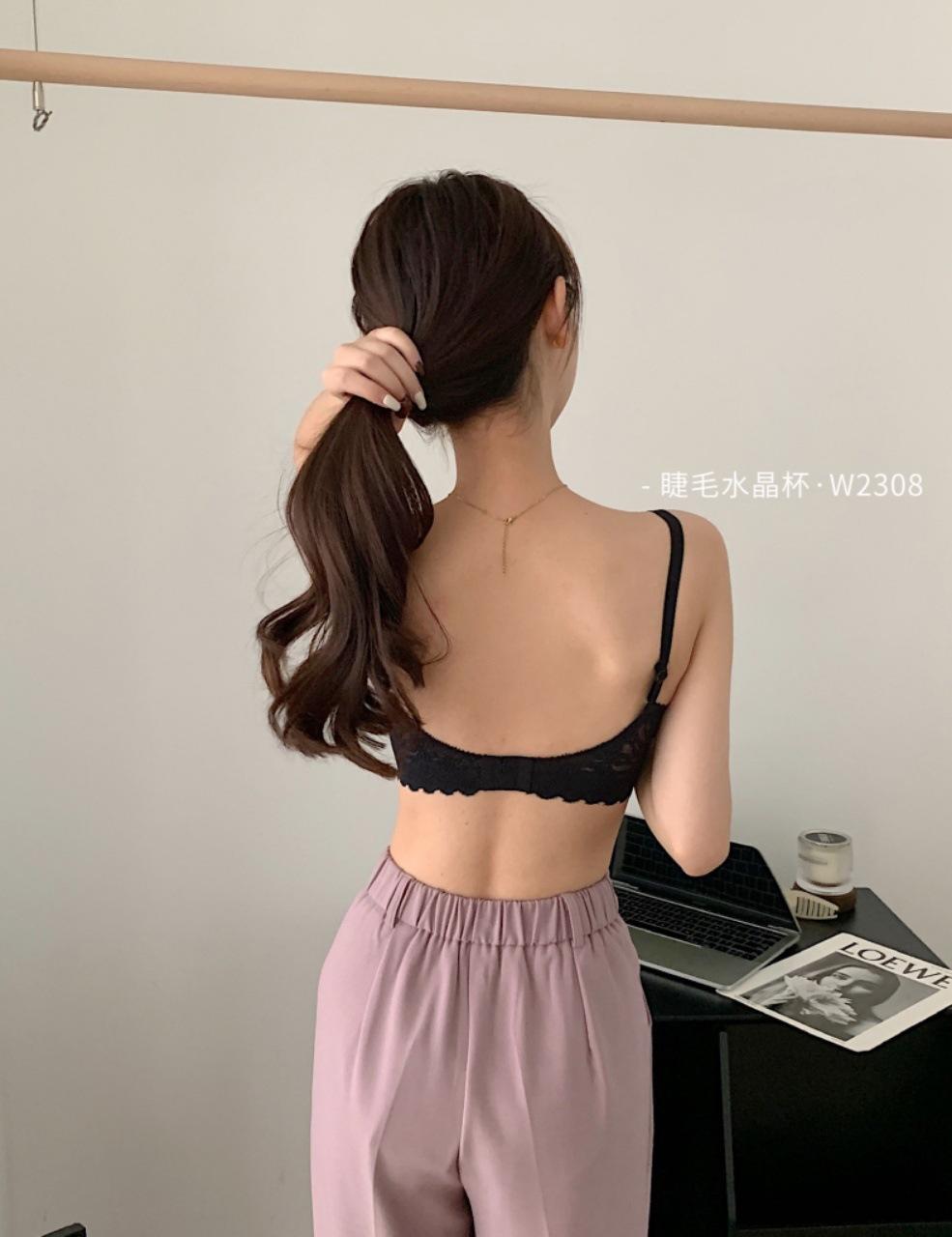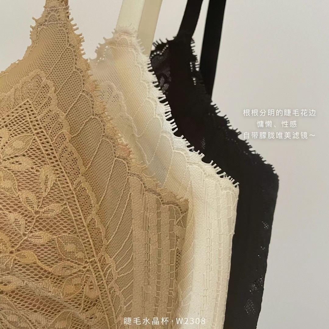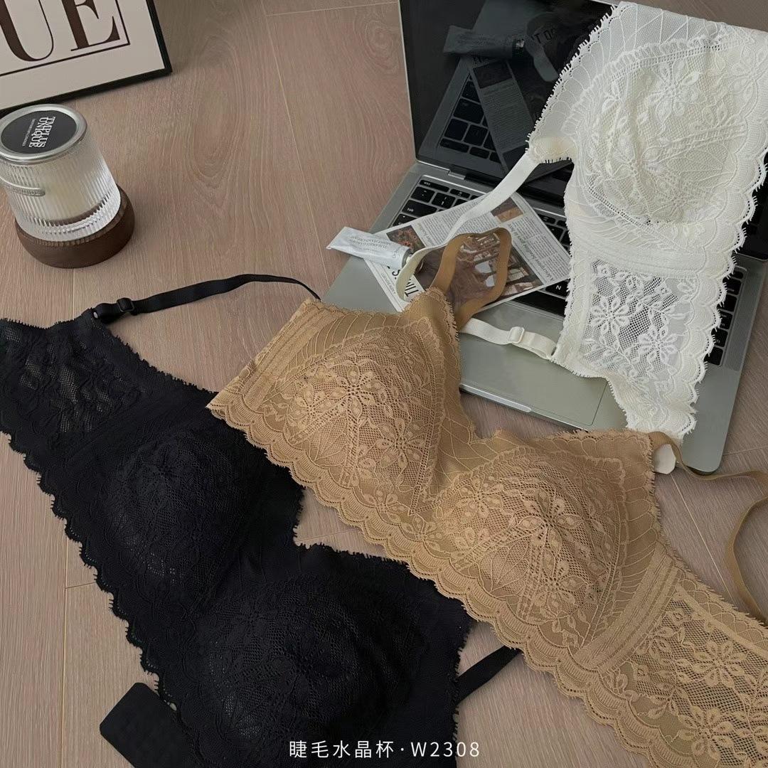 Ropa interior para busto pequeño para mujer Encaje de pestañas Orejas de conejo Copa de cristal Sin marcas Sin aro de acero Lujo ligero Hueco francés Exquisito Amigable con la piel