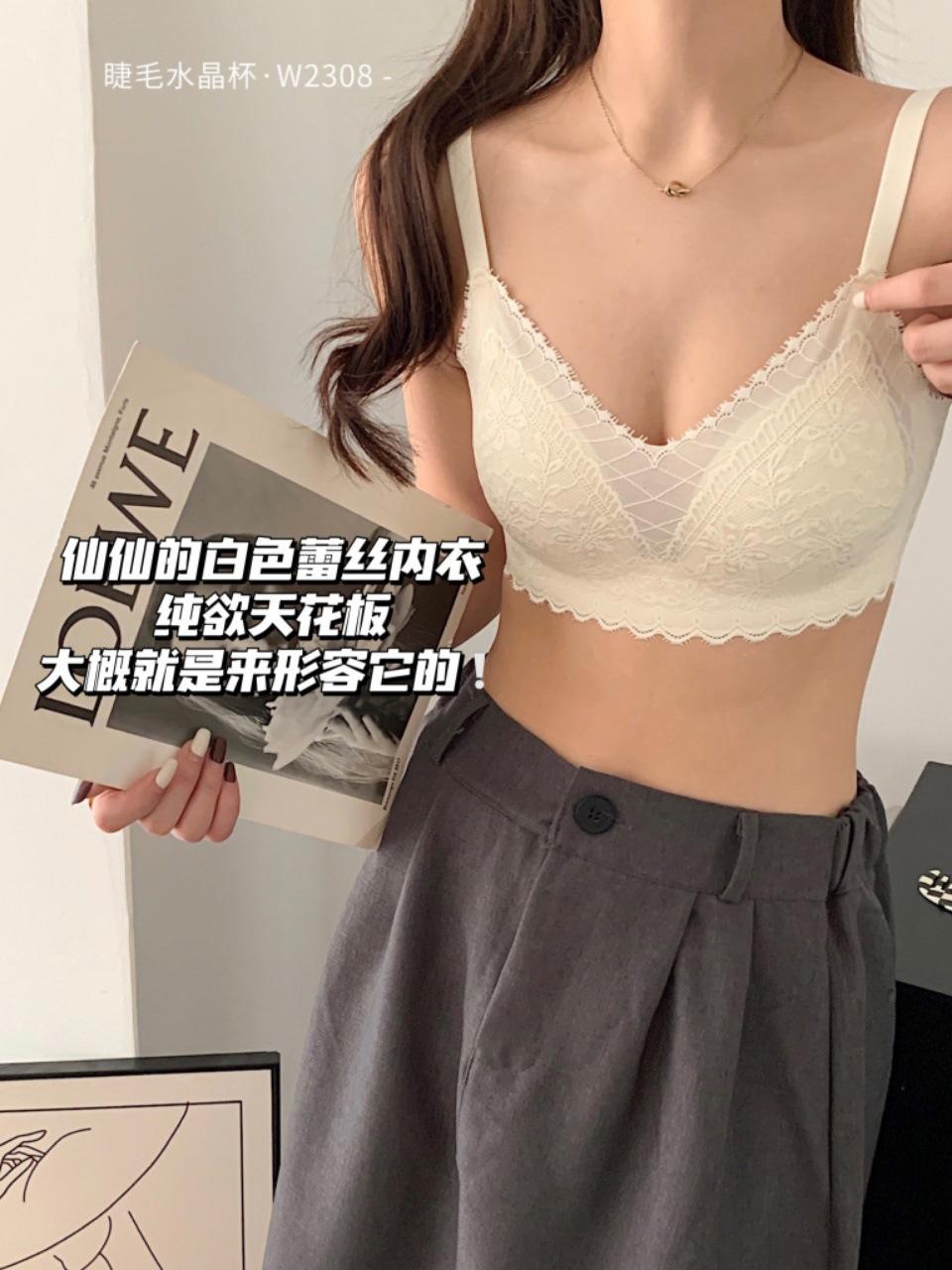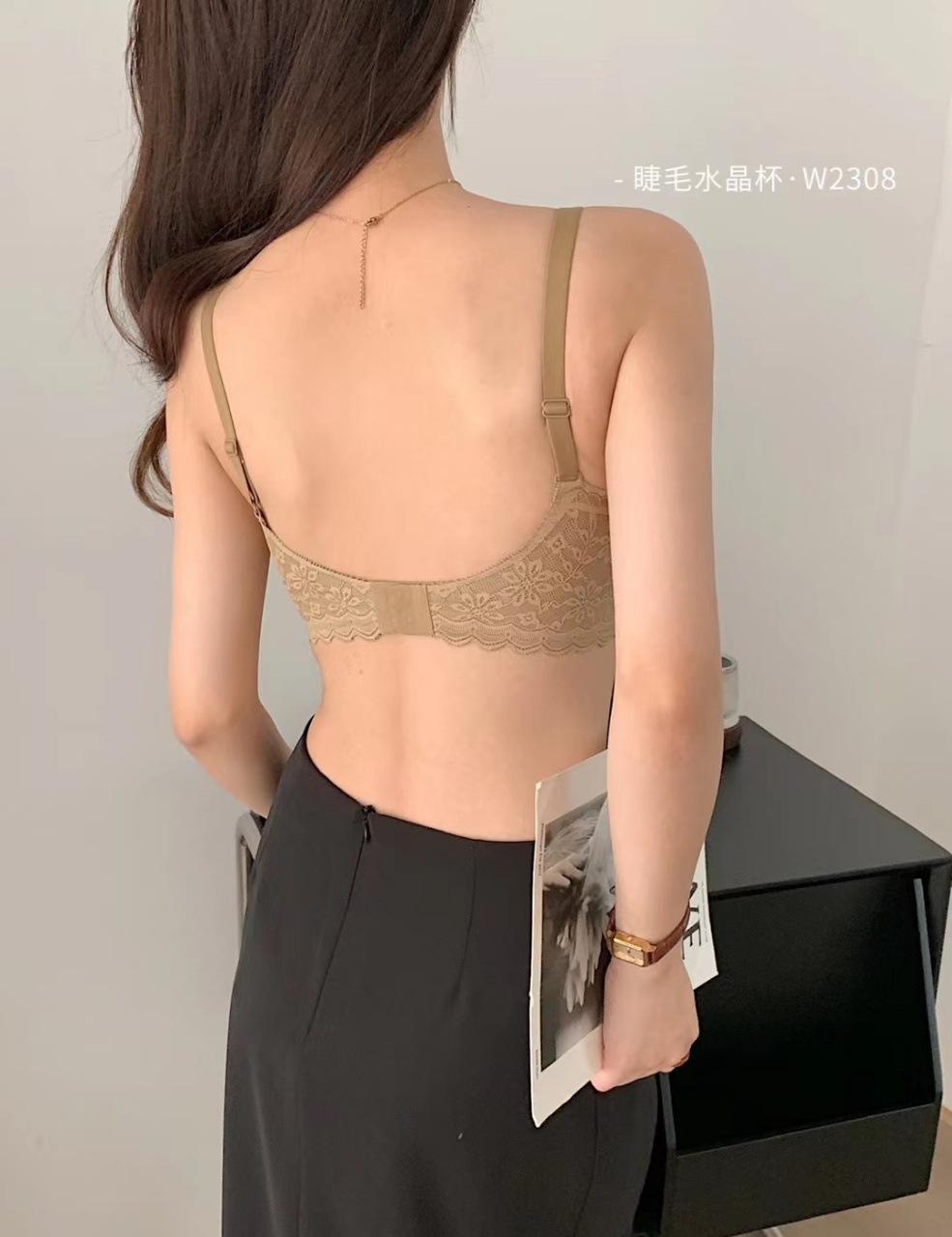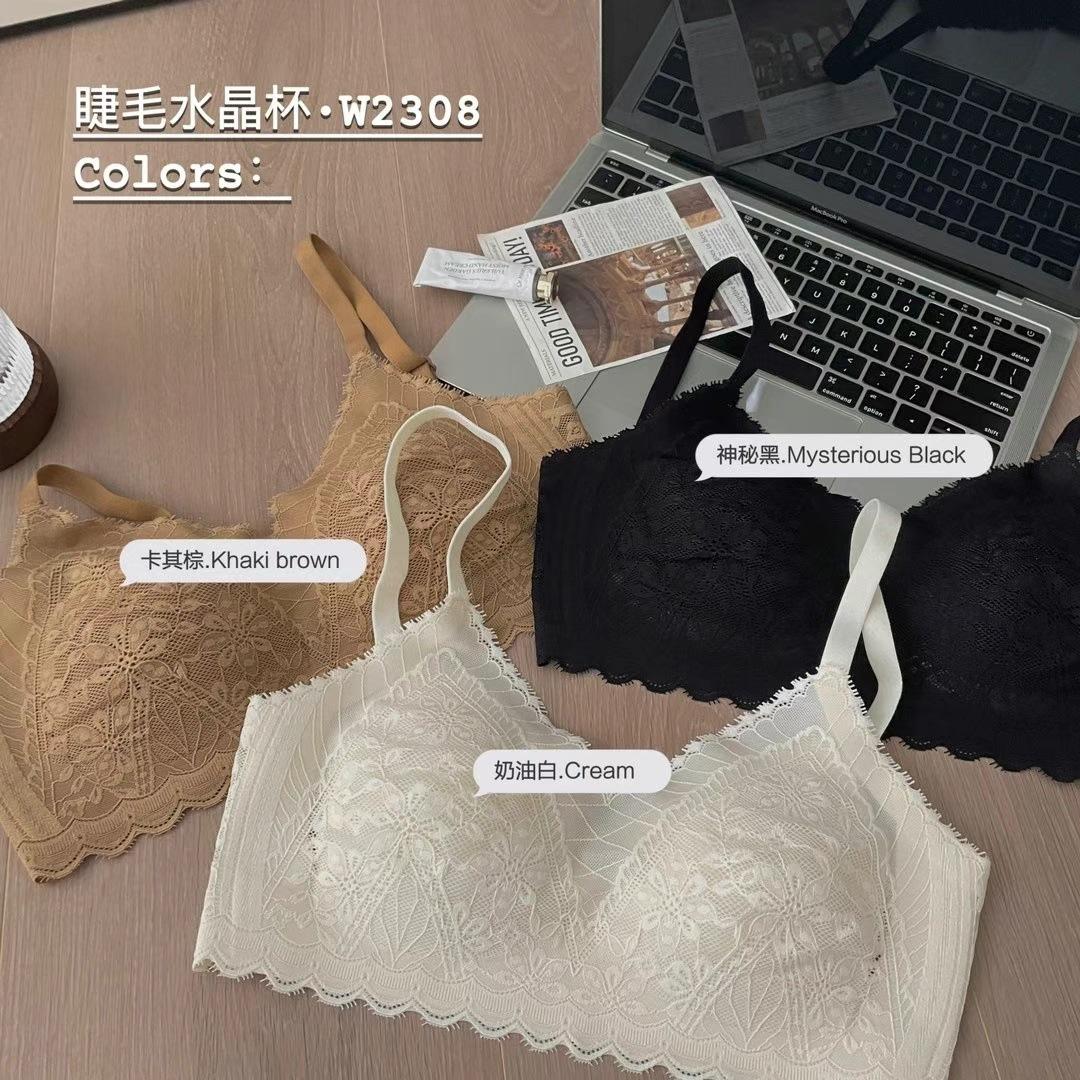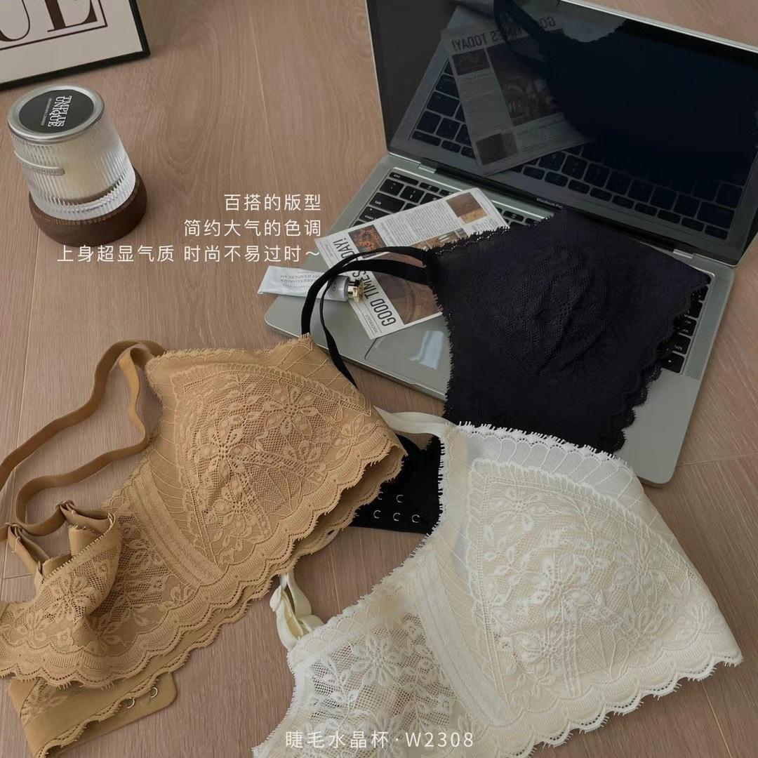 Ropa interior para busto pequeño para mujer Encaje de pestañas Orejas de conejo Copa de cristal Sin marcas Sin aro de acero Lujo ligero Hueco francés Exquisito Amigable con la piel