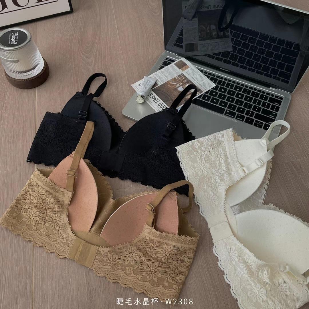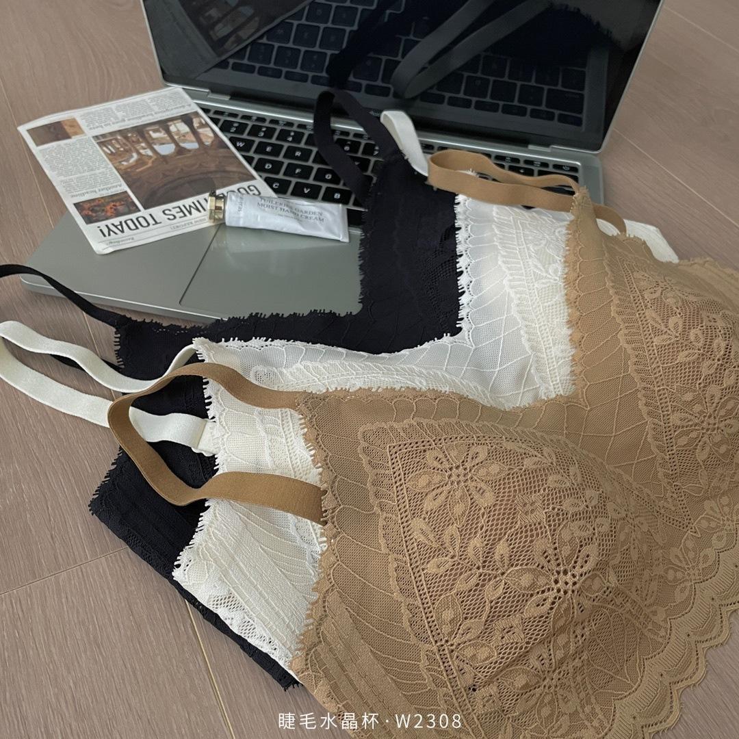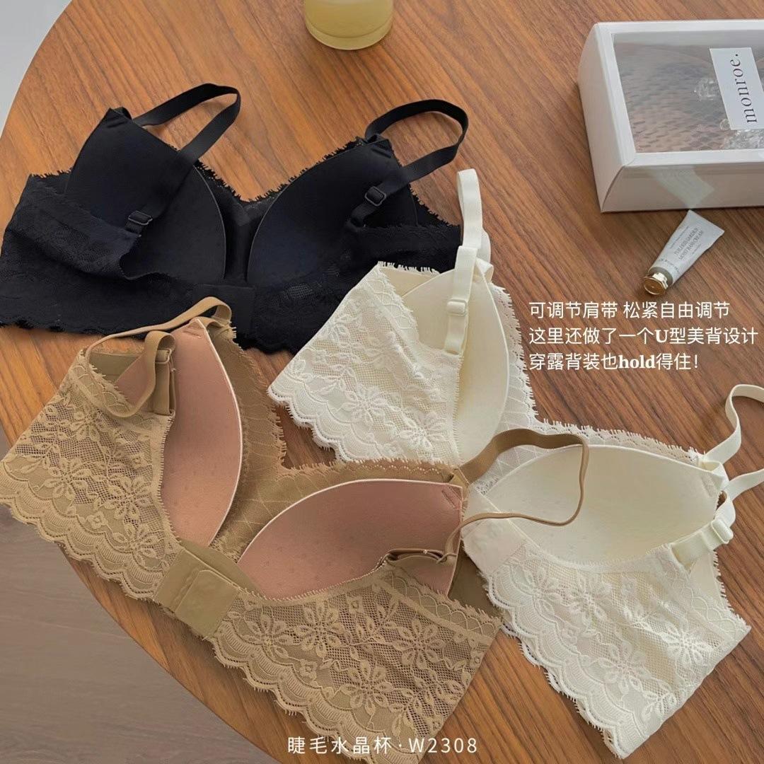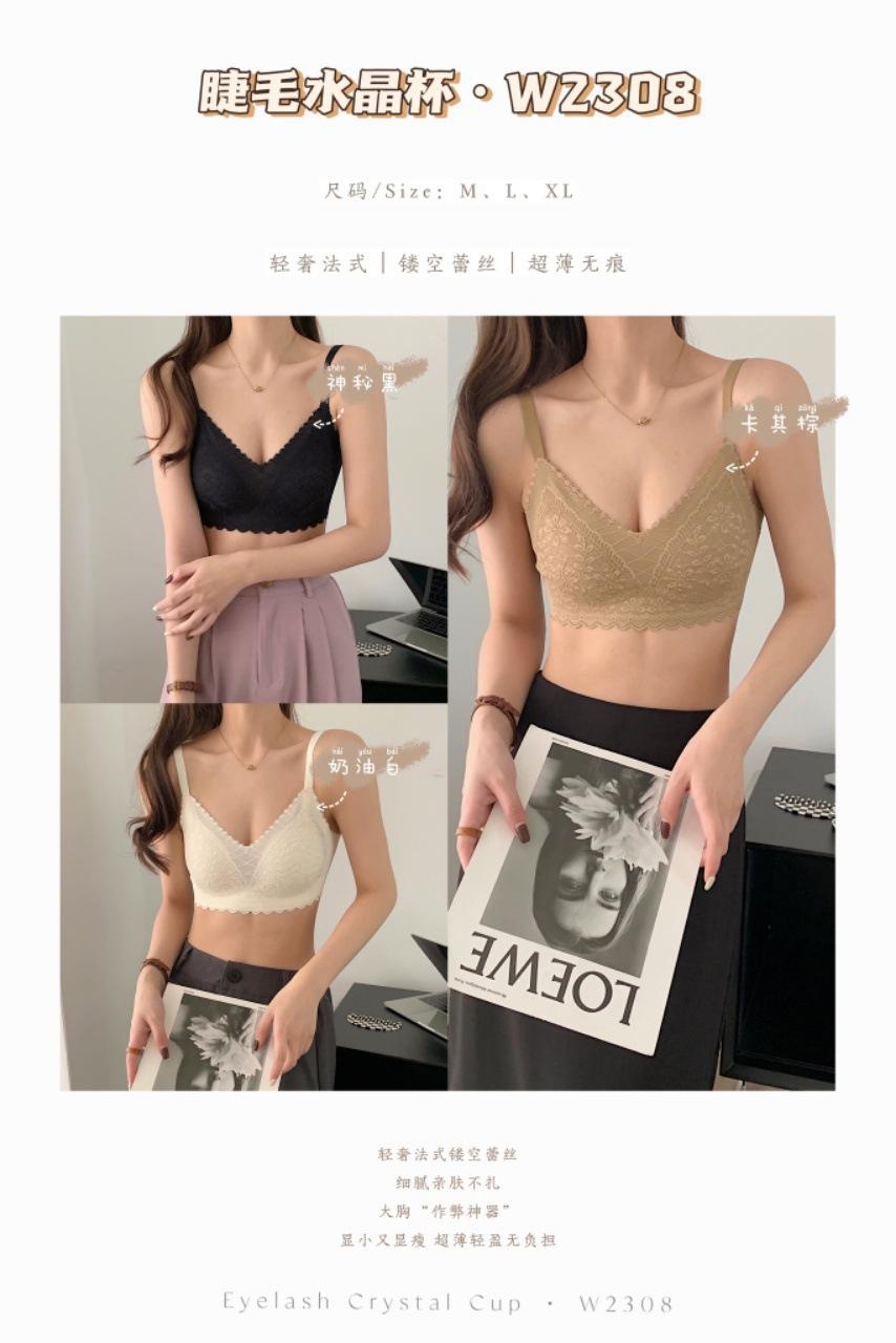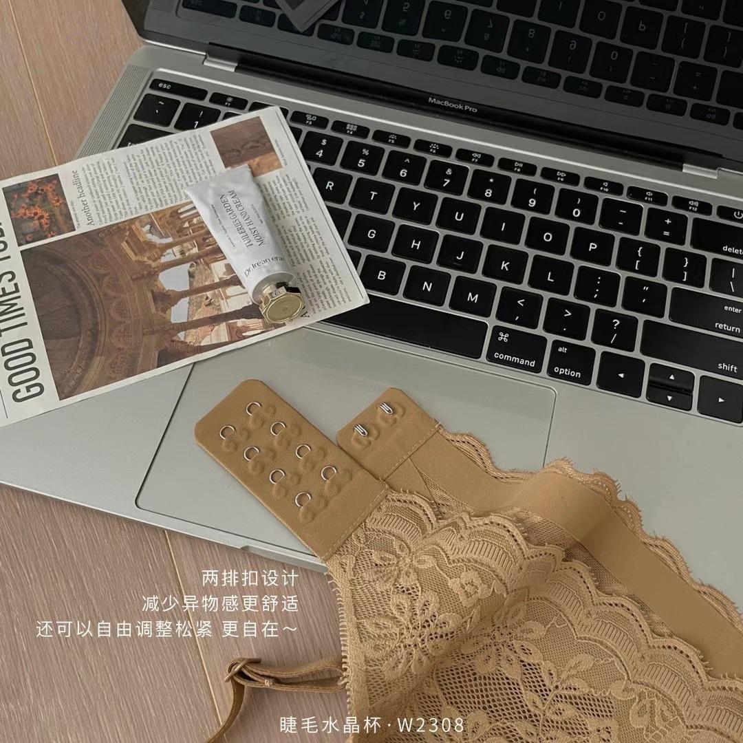 Ropa interior para busto pequeño para mujer Encaje de pestañas Orejas de conejo Copa de cristal Sin marcas Sin aro de acero Lujo ligero Hueco francés Exquisito Amigable con la piel