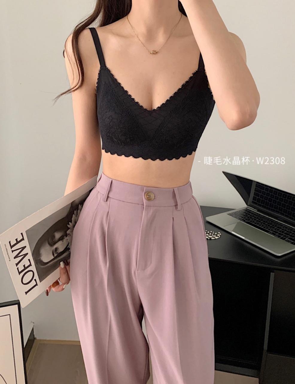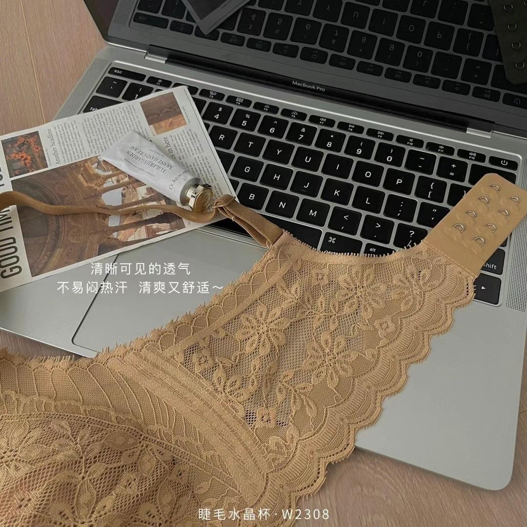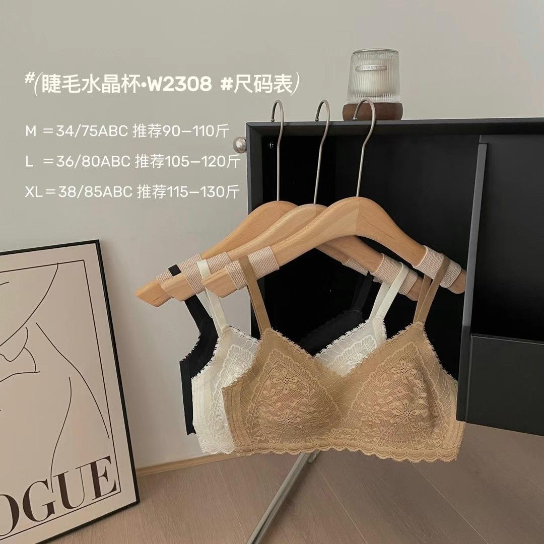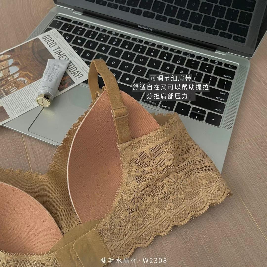 Ropa interior para busto pequeño para mujer Encaje de pestañas Orejas de conejo Copa de cristal Sin marcas Sin aro de acero Lujo ligero Hueco francés Exquisito Amigable con la piel