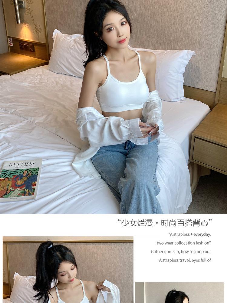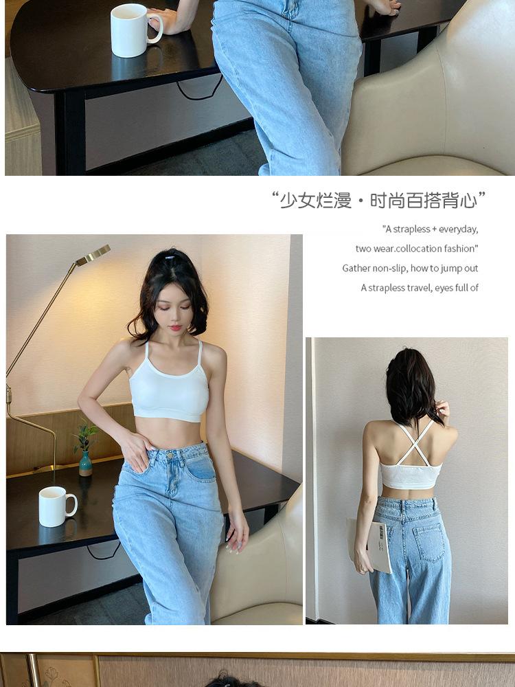 Hermoso top de tubo con espalda descubierta y almohadillas para el pecho, prenda exterior de verano para mujer, base interior, sin mangas, corto, sexy, top cruzado en el pecho para chica