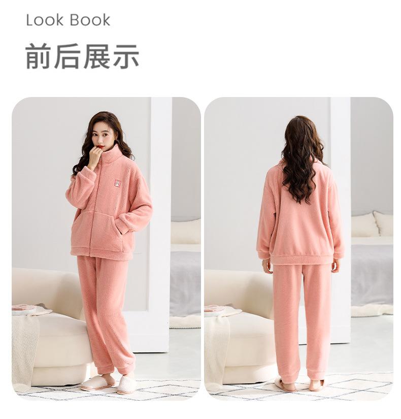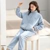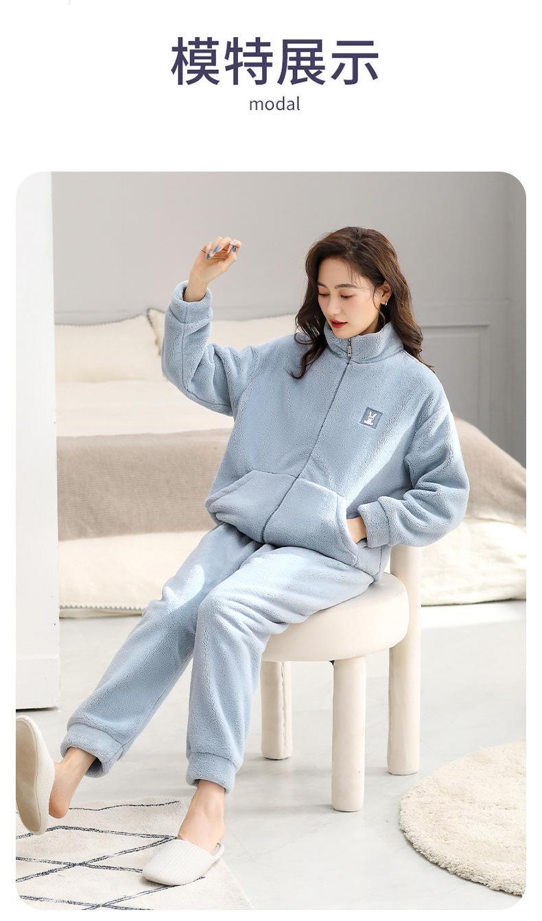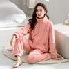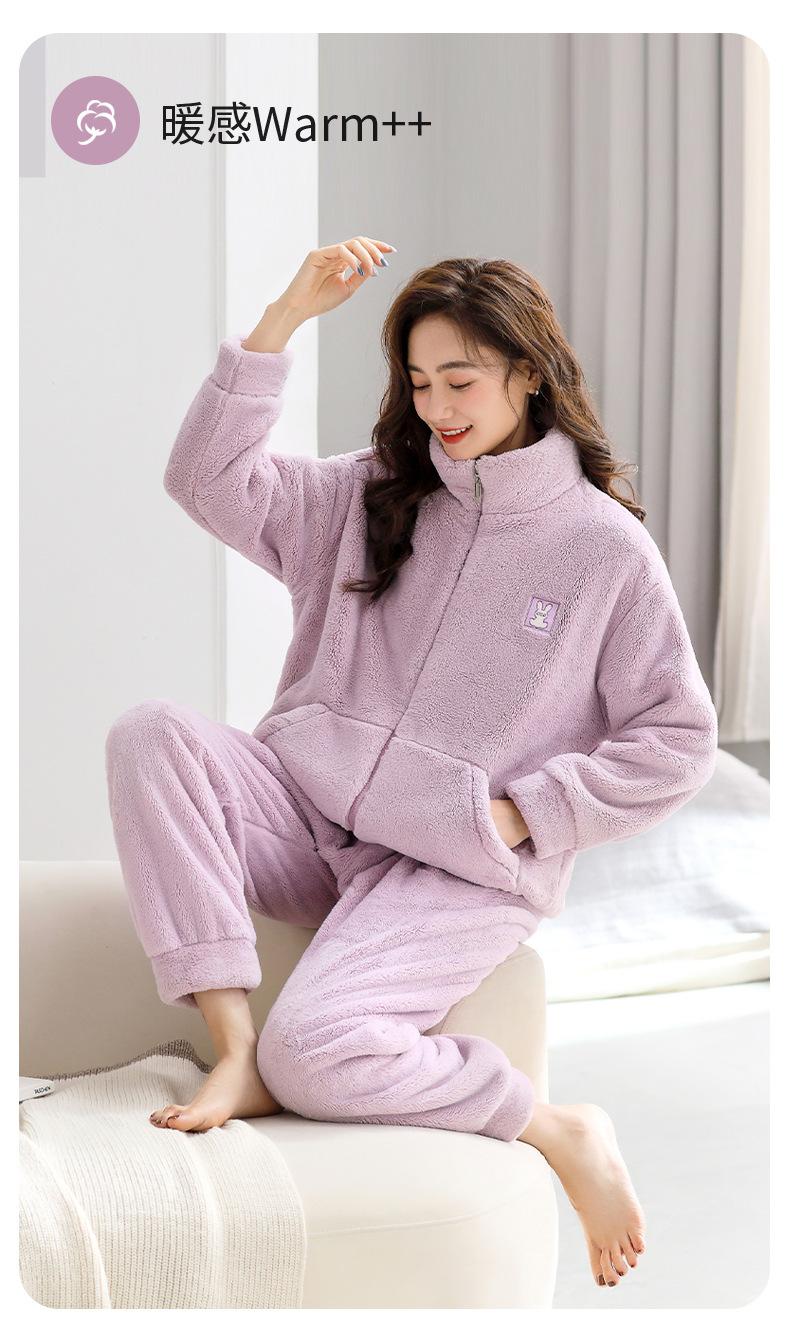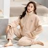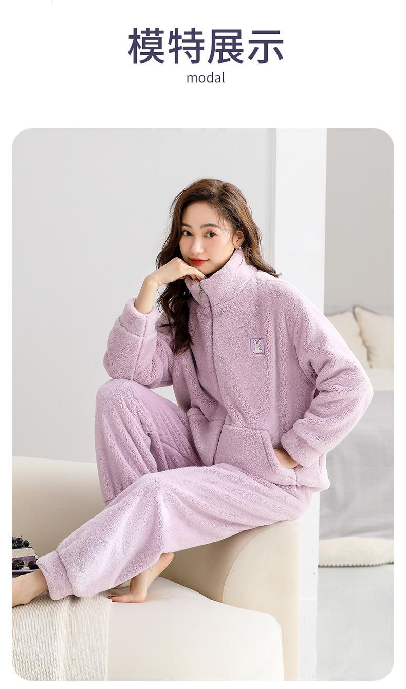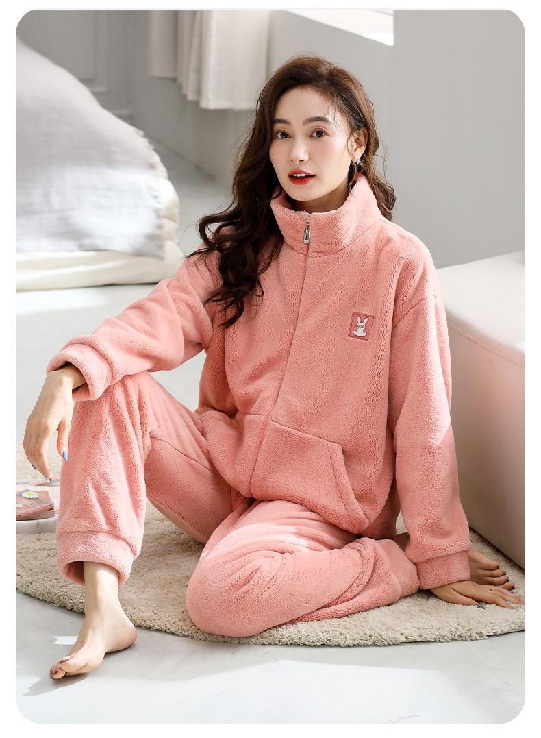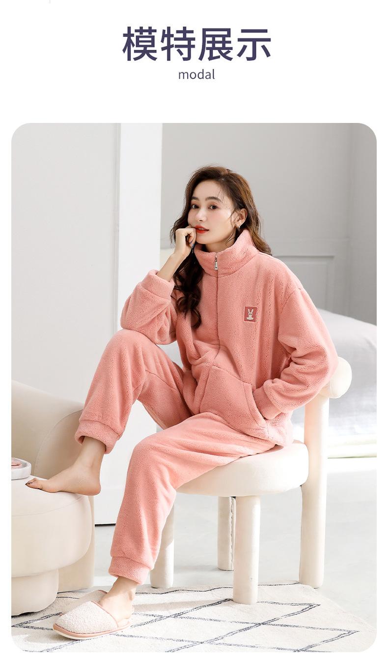 Pijama de forro polar coral con cremallera para mujer, invierno, manga larga, cálido, cuello alto, se puede usar afuera, franela mate completa, ropa de casa para mujer