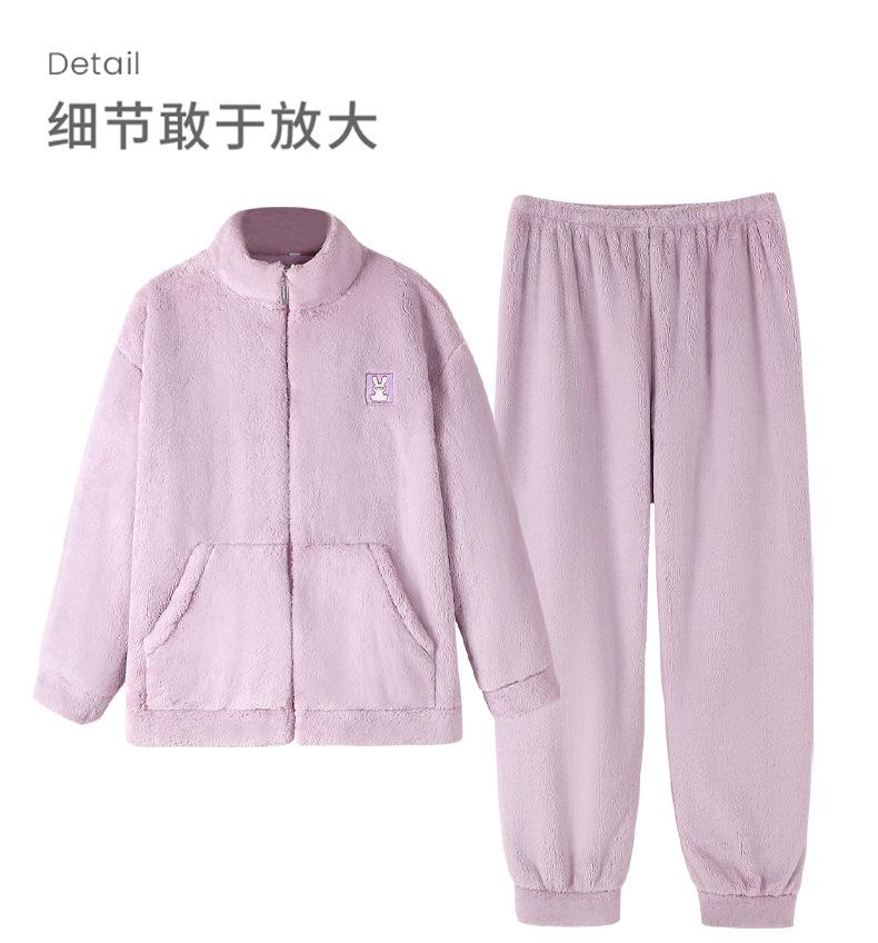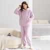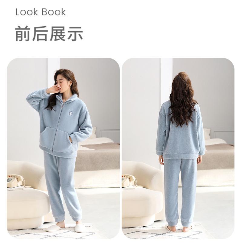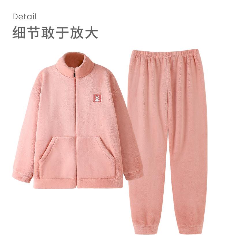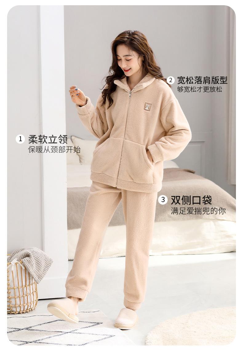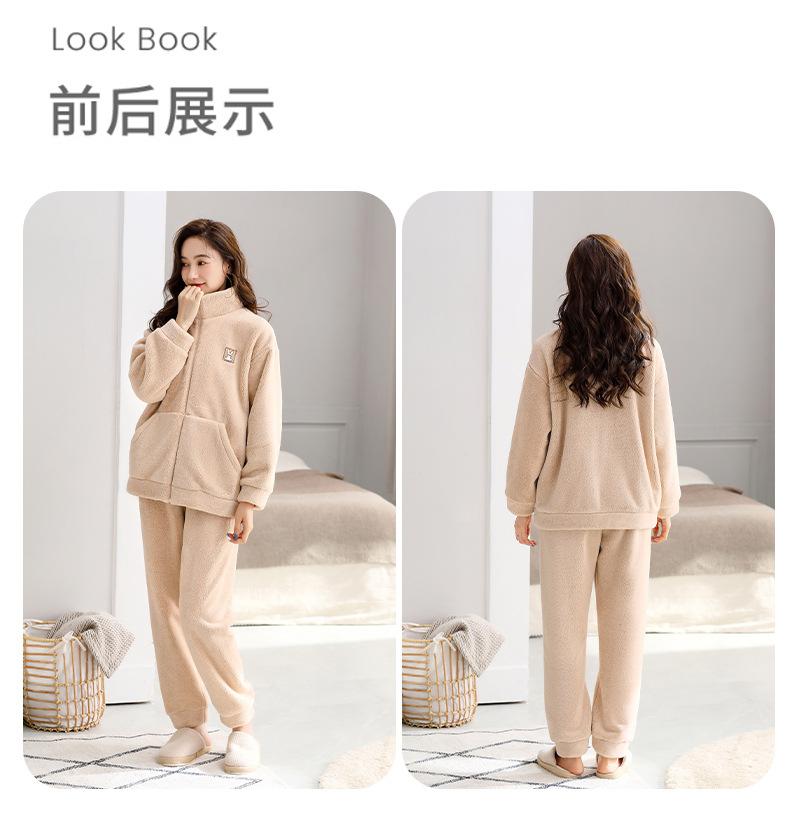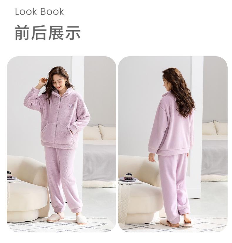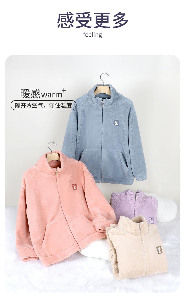 Pijama de forro polar coral con cremallera para mujer, invierno, manga larga, cálido, cuello alto, se puede usar afuera, franela mate completa, ropa de casa para mujer