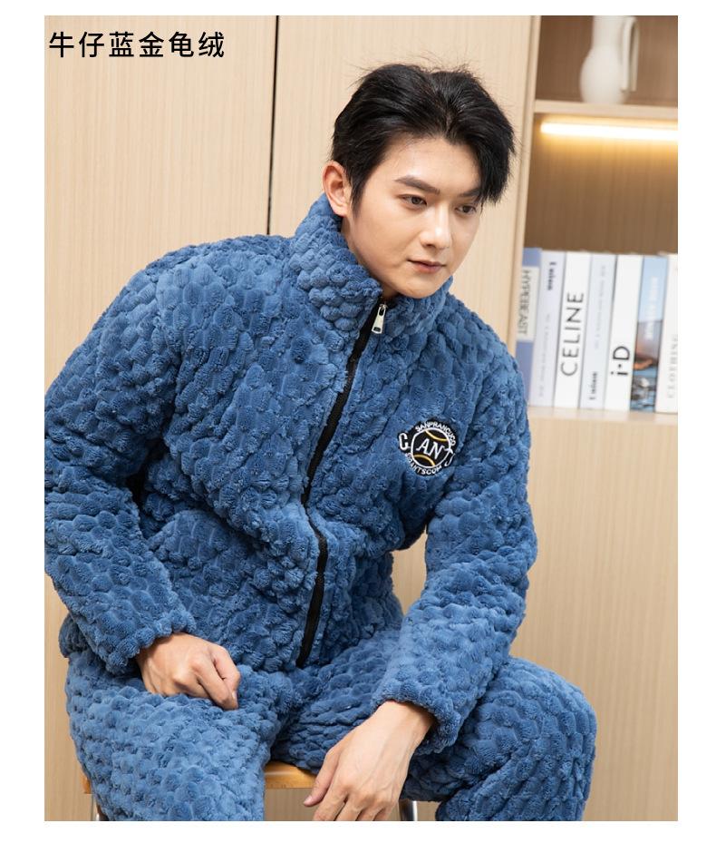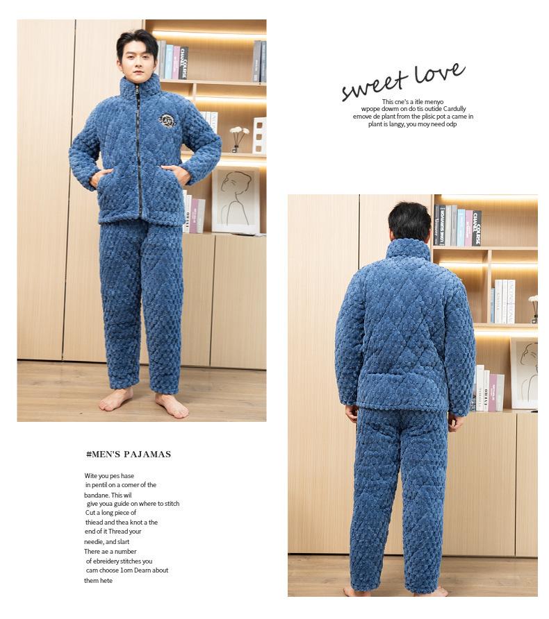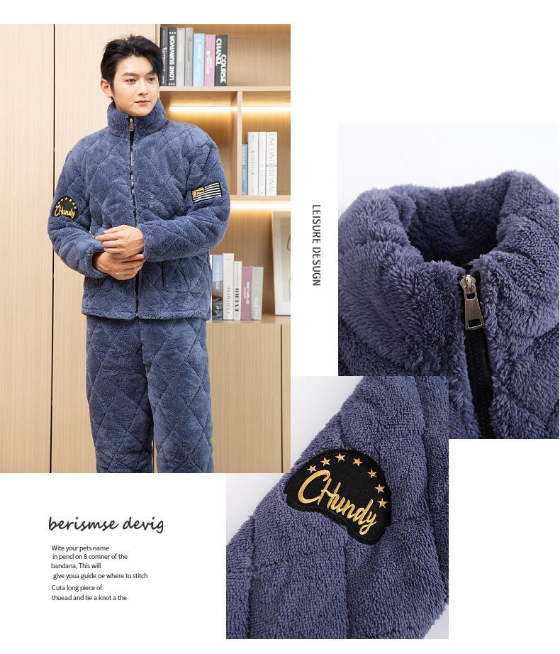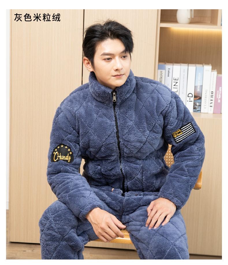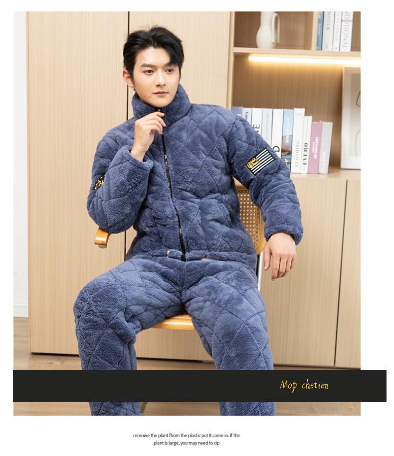 Pijama de invierno con cremallera para hombre, de franela, de tres capas, acolchado, grueso, para el hogar, chaqueta de algodón polar coral, venta al por mayor