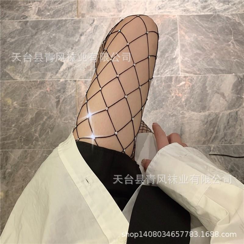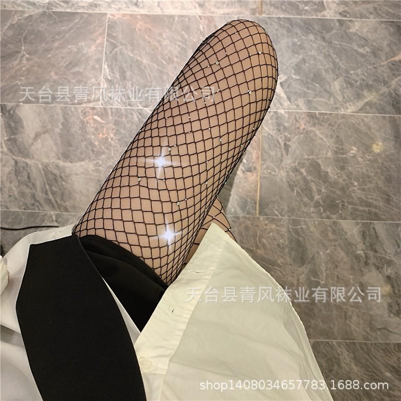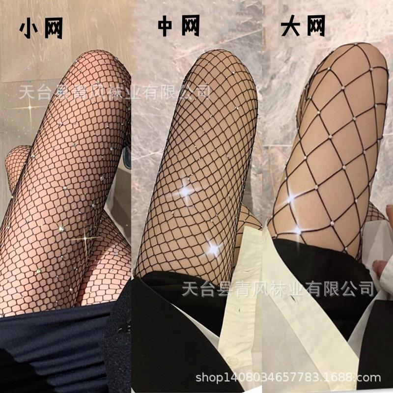 Calcetines de red de estilo europeo y americano, dulces y picantes, con efecto diamante, calados, grandes, medianos y pequeños, sexys, ajustados y con efecto diamante para discoteca.