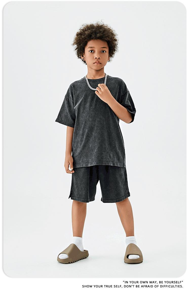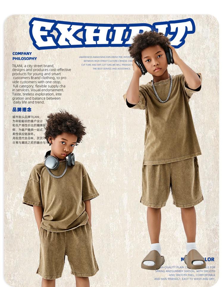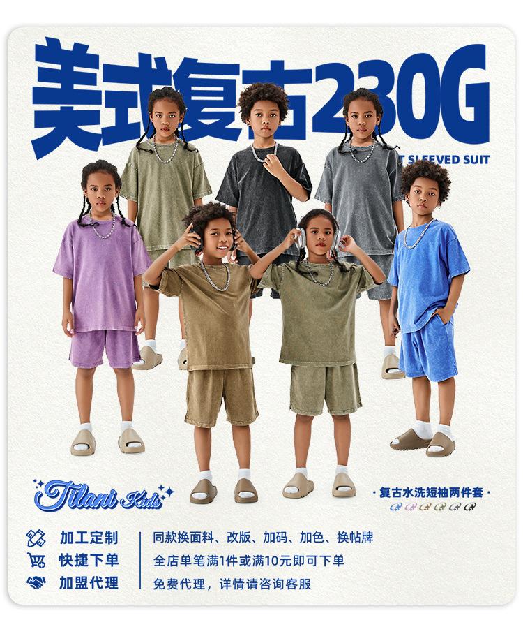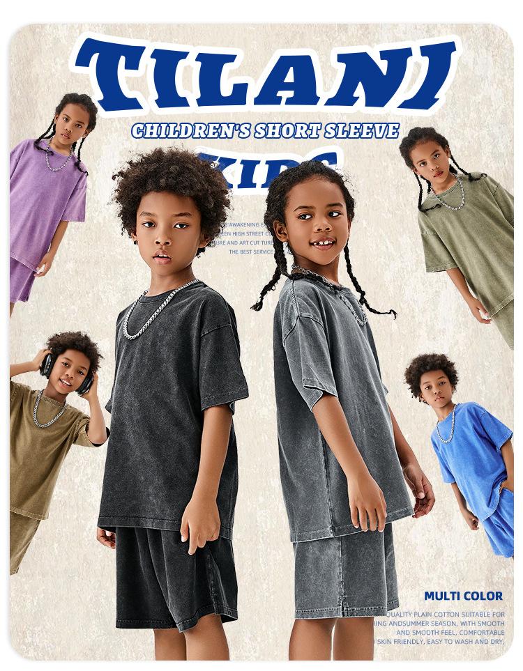 Ropa infantil TILANI, estilo europeo y americano, estilo High Street americano, 230 g, lavado, viejo, oversize, para niños, Tide, para hombres y mujeres