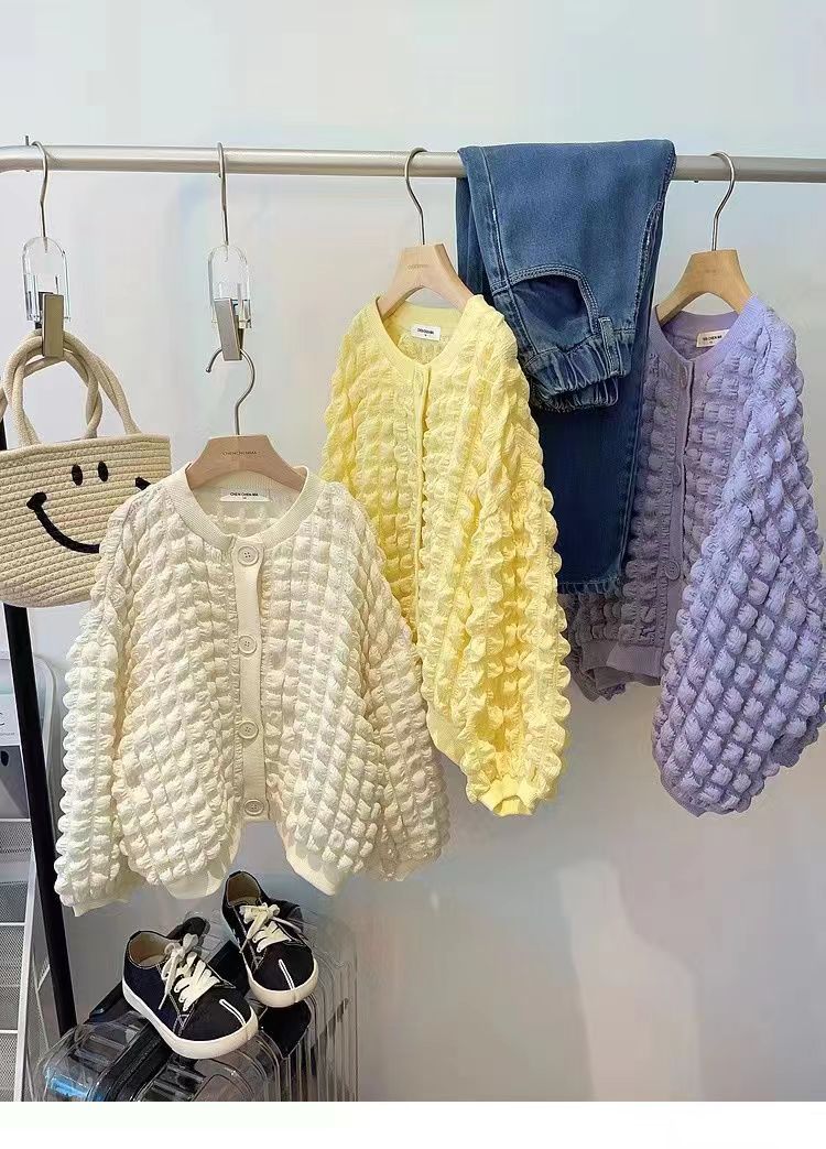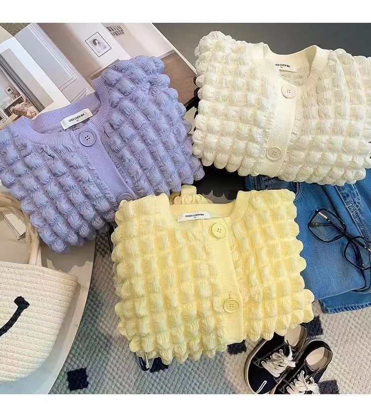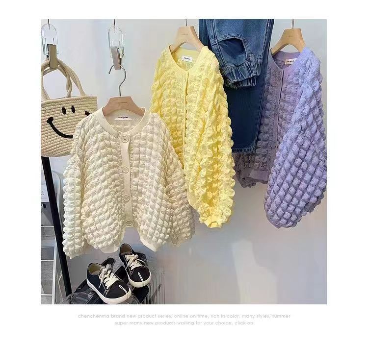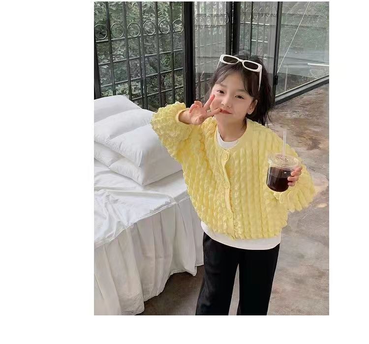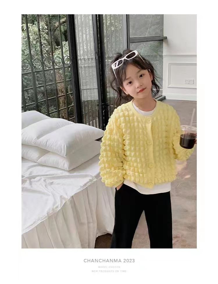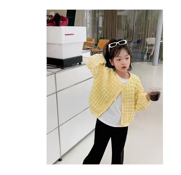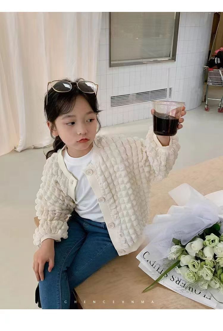Compra Ropa Exterior para Niñas 2023 Primavera y Otoño Nuevo Estilo Burbuja a Cuadros Elegante Cárdigan Cuello Redondo Casual Mangas Largas Estilo Medio al por mayor en Joom.pro
