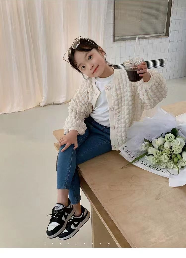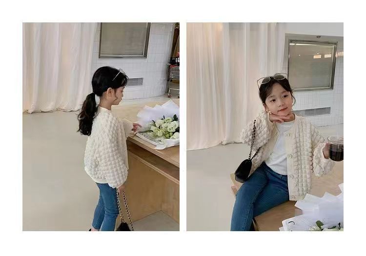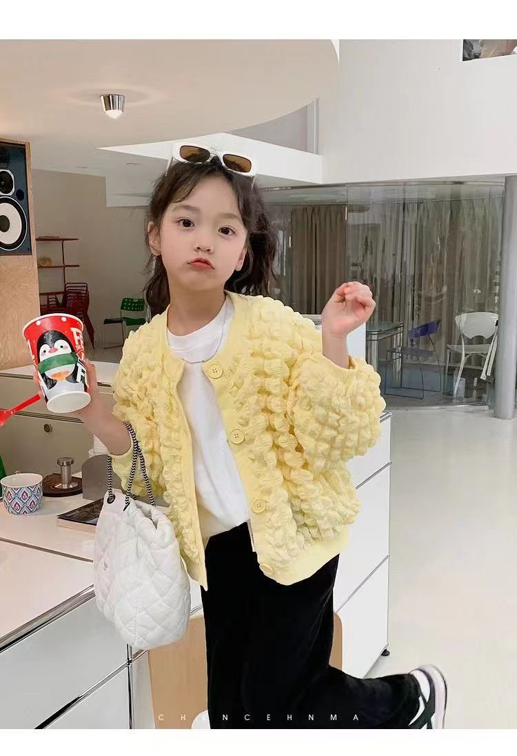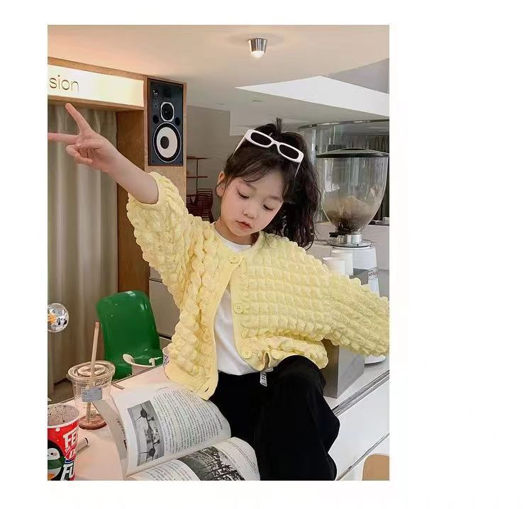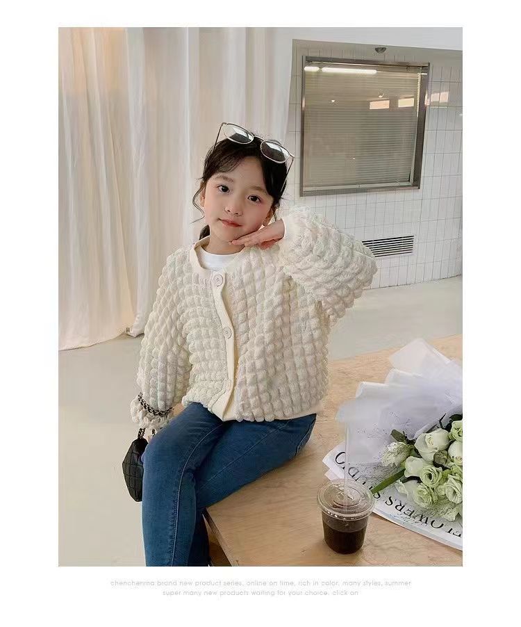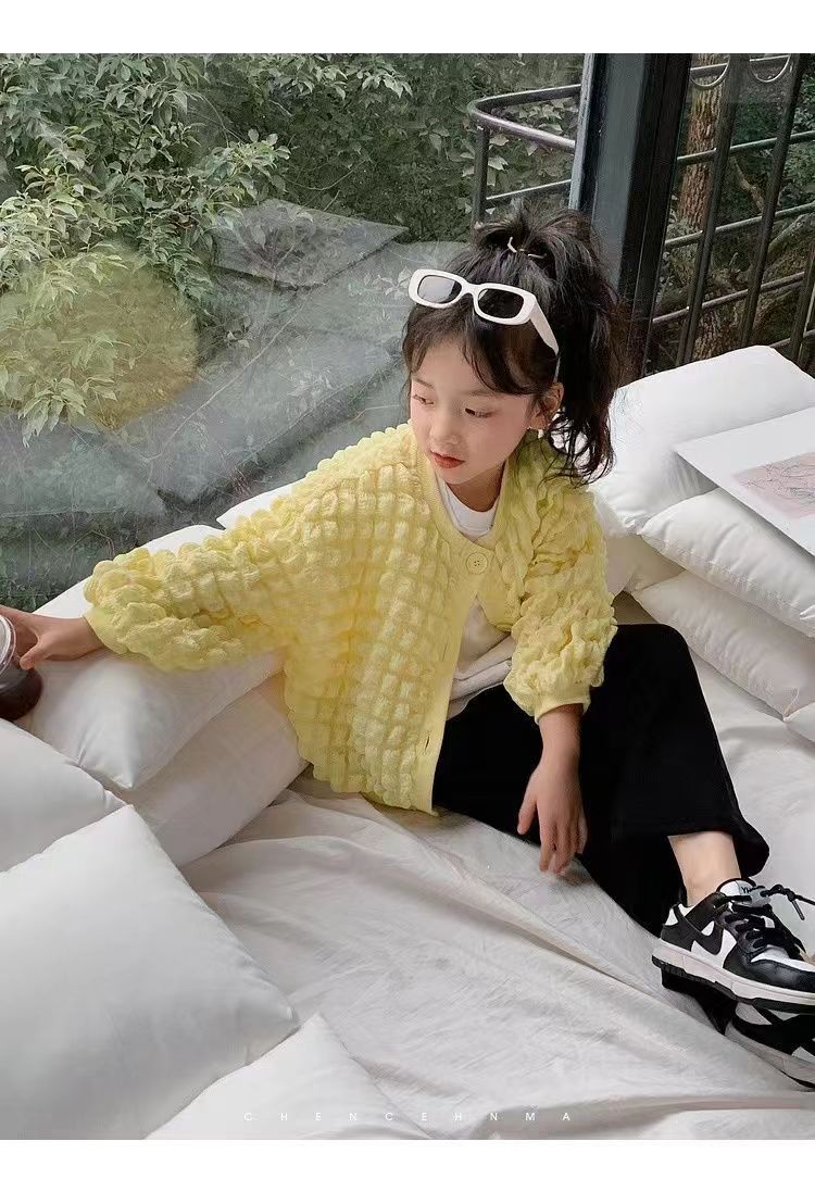 Compra Ropa Exterior para Niñas 2023 Primavera y Otoño Nuevo Estilo Burbuja a Cuadros Elegante Cárdigan Cuello Redondo Casual Mangas Largas Estilo Medio al por mayor en Joom.pro