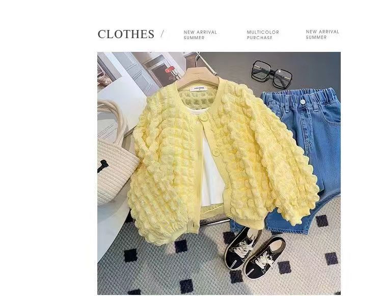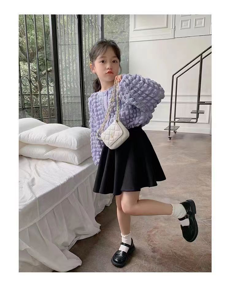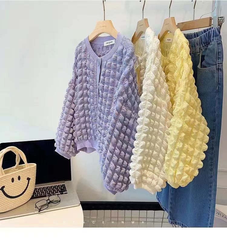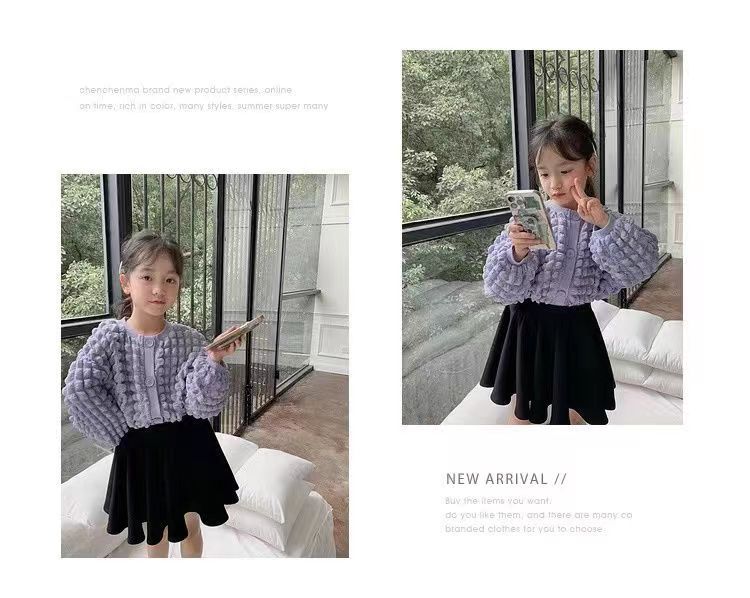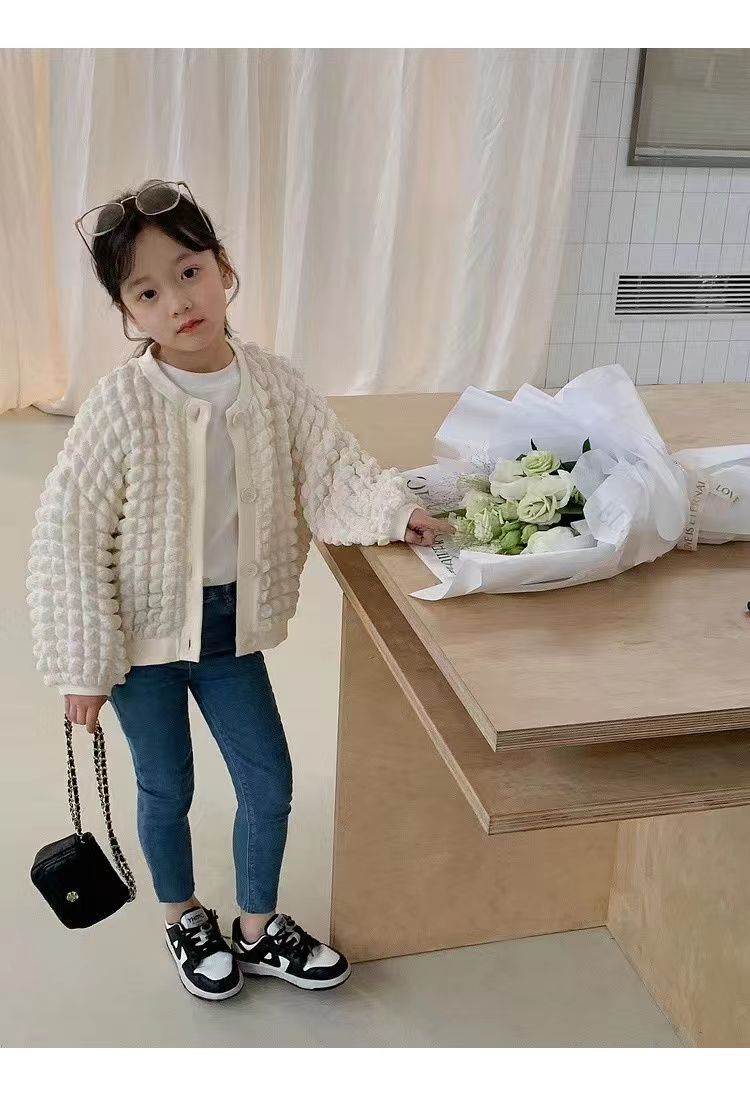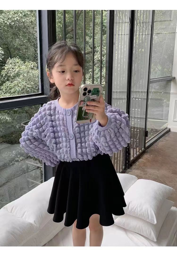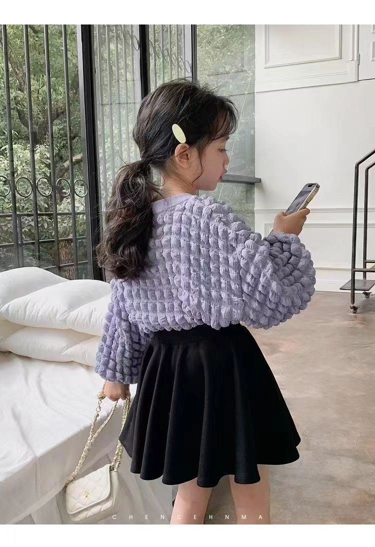 Compra Ropa Exterior para Niñas 2023 Primavera y Otoño Nuevo Estilo Burbuja a Cuadros Elegante Cárdigan Cuello Redondo Casual Mangas Largas Estilo Medio al por mayor en Joom.pro