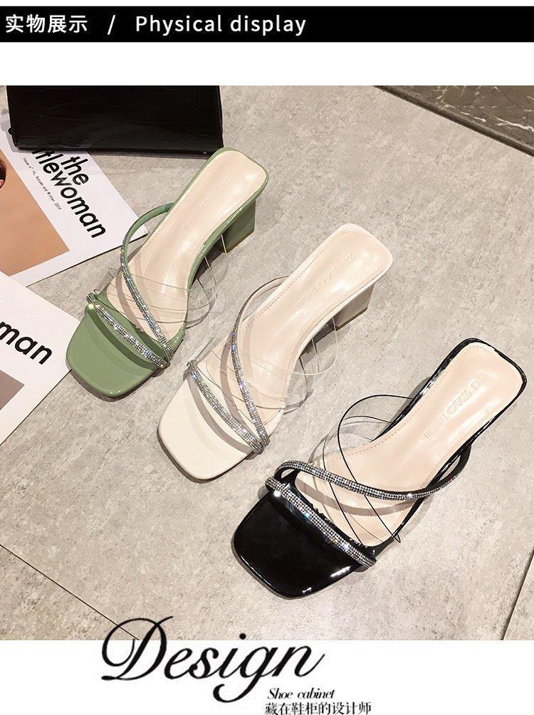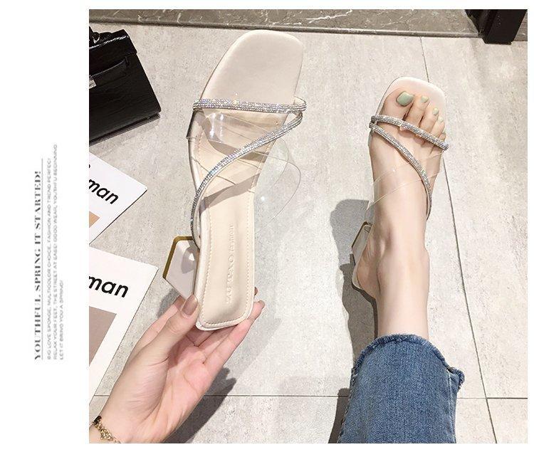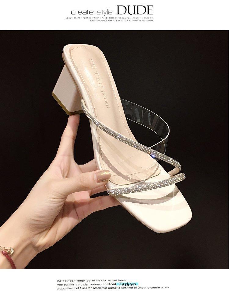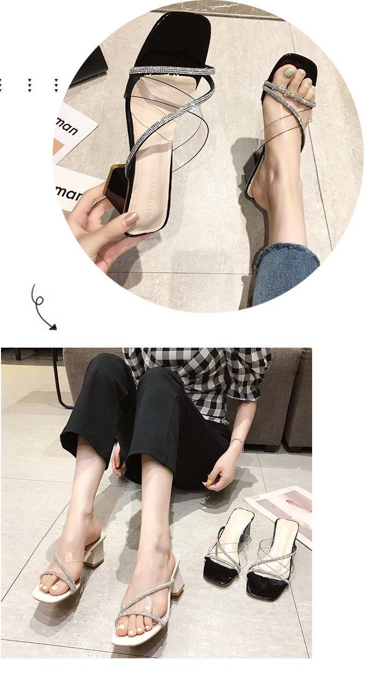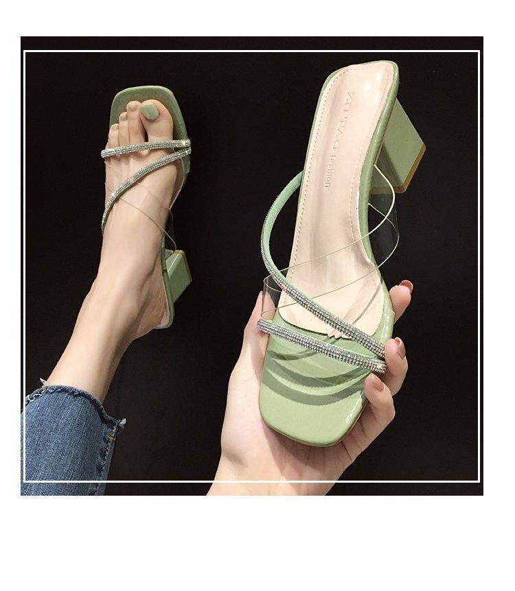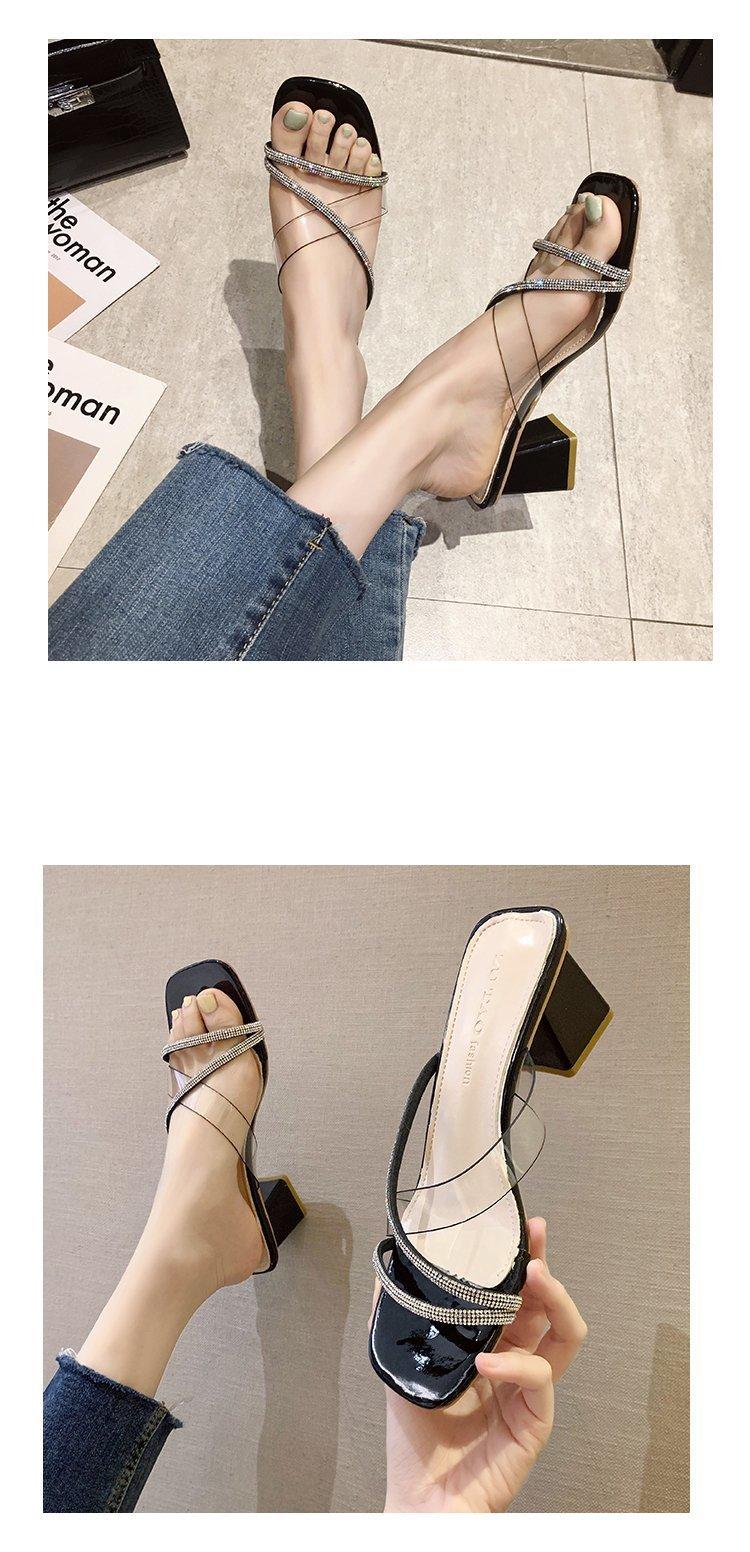 Nuevas zapatillas de verano para mujer, de tacón grueso, estilo coreano, sencillas y a la moda, transparentes, para uso exterior, con cabeza cuadrada y media pantuflas.