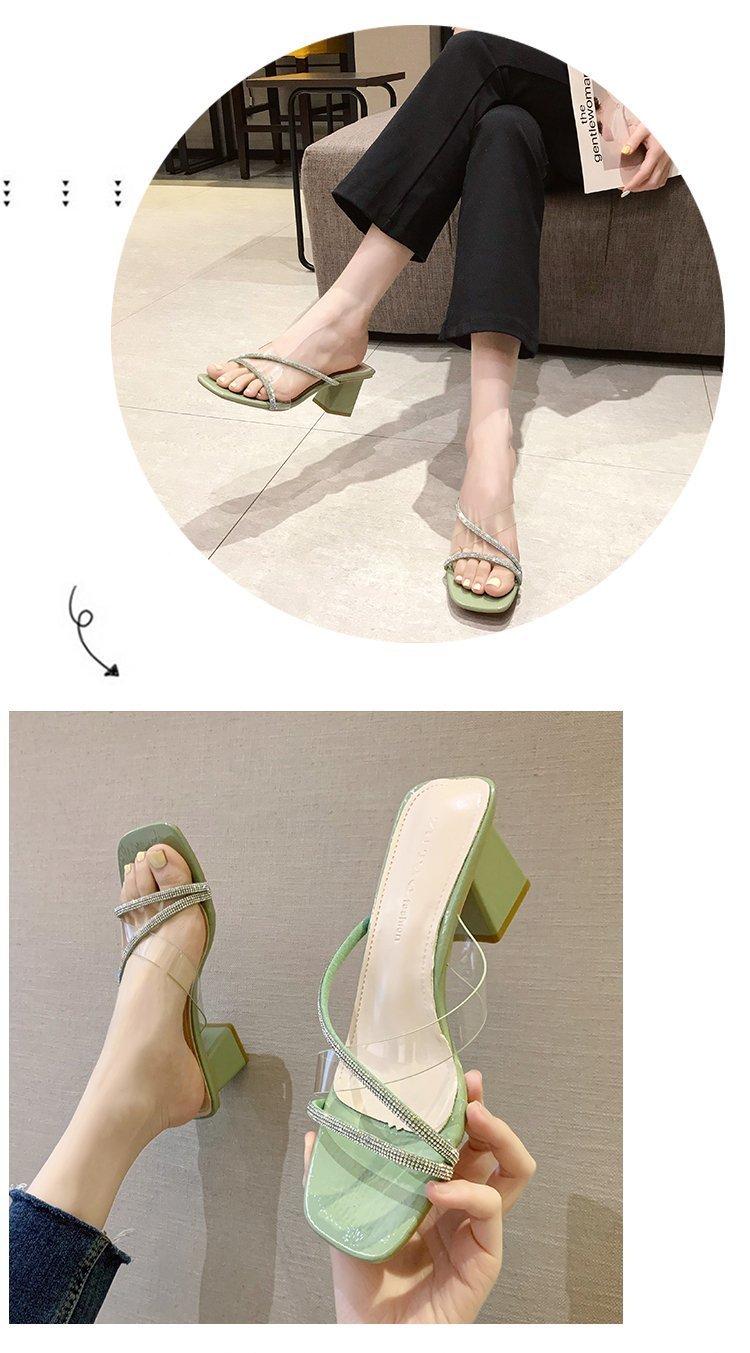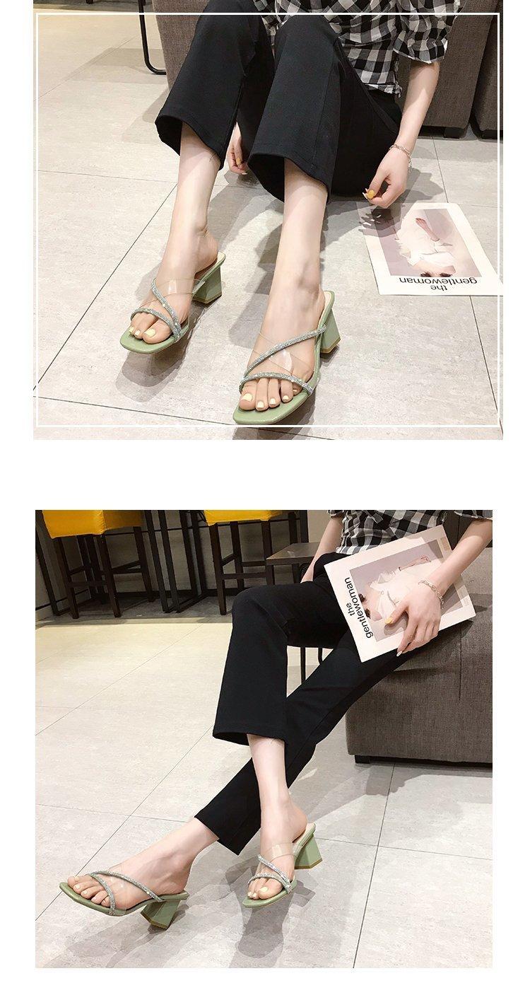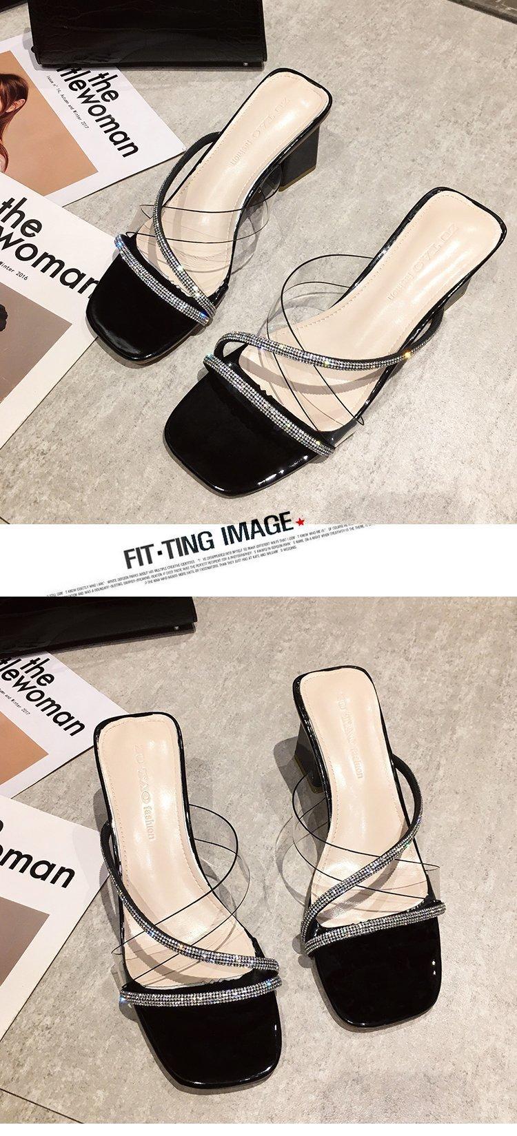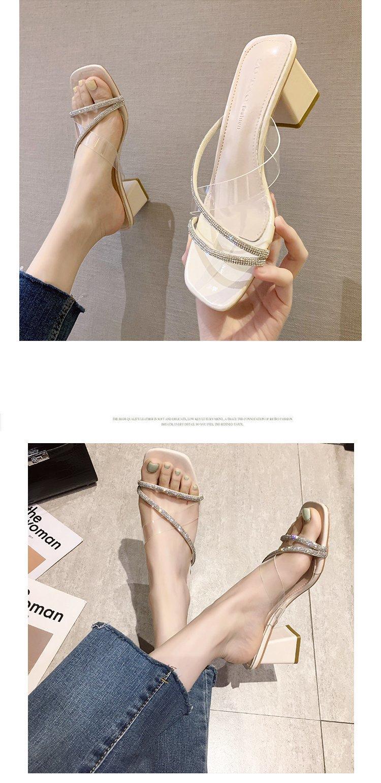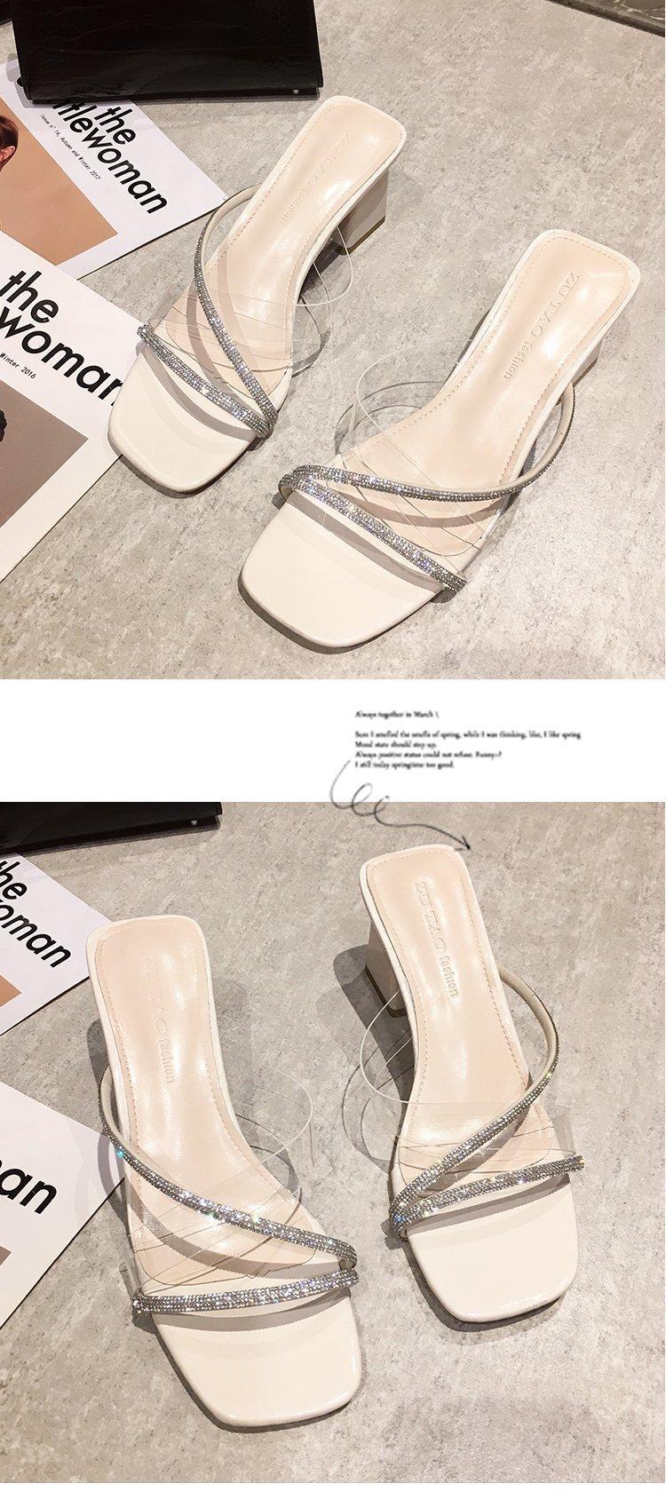 Nuevas zapatillas de verano para mujer, de tacón grueso, estilo coreano, sencillas y a la moda, transparentes, para uso exterior, con cabeza cuadrada y media pantuflas.