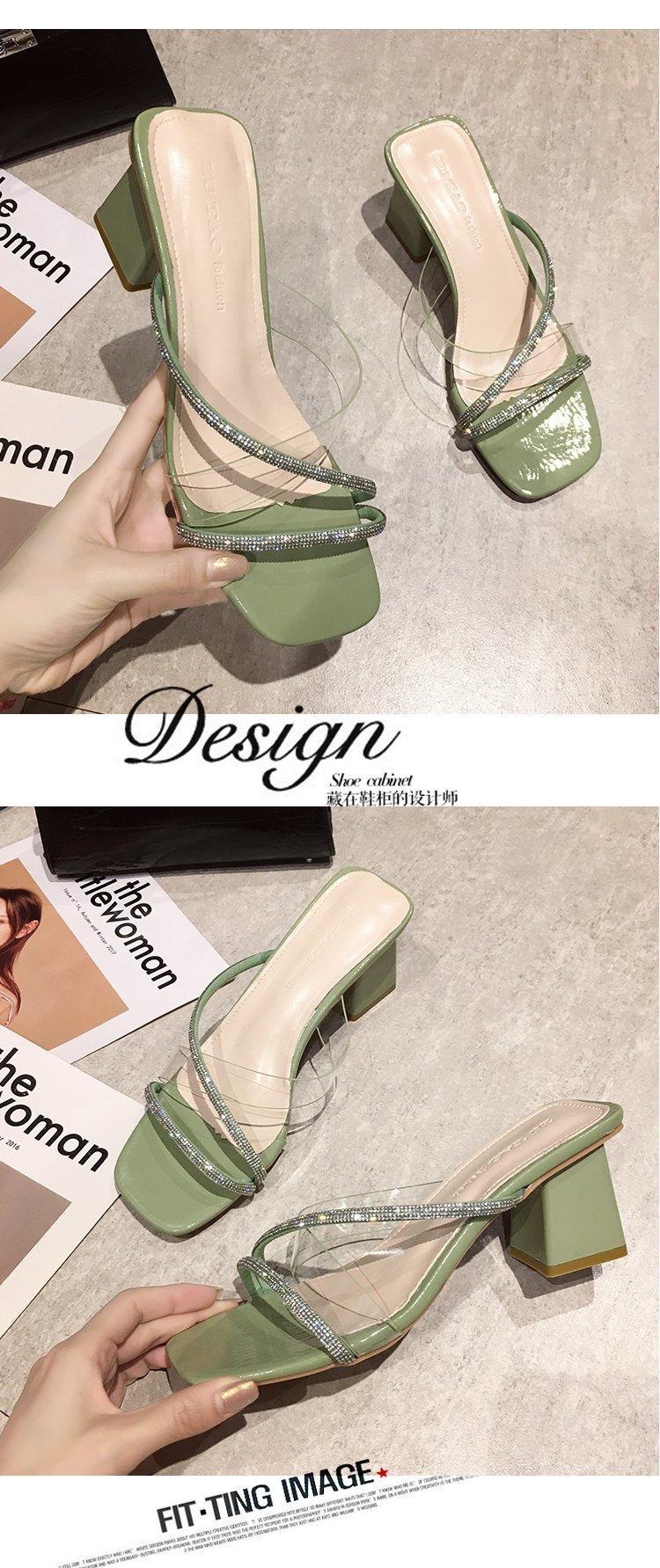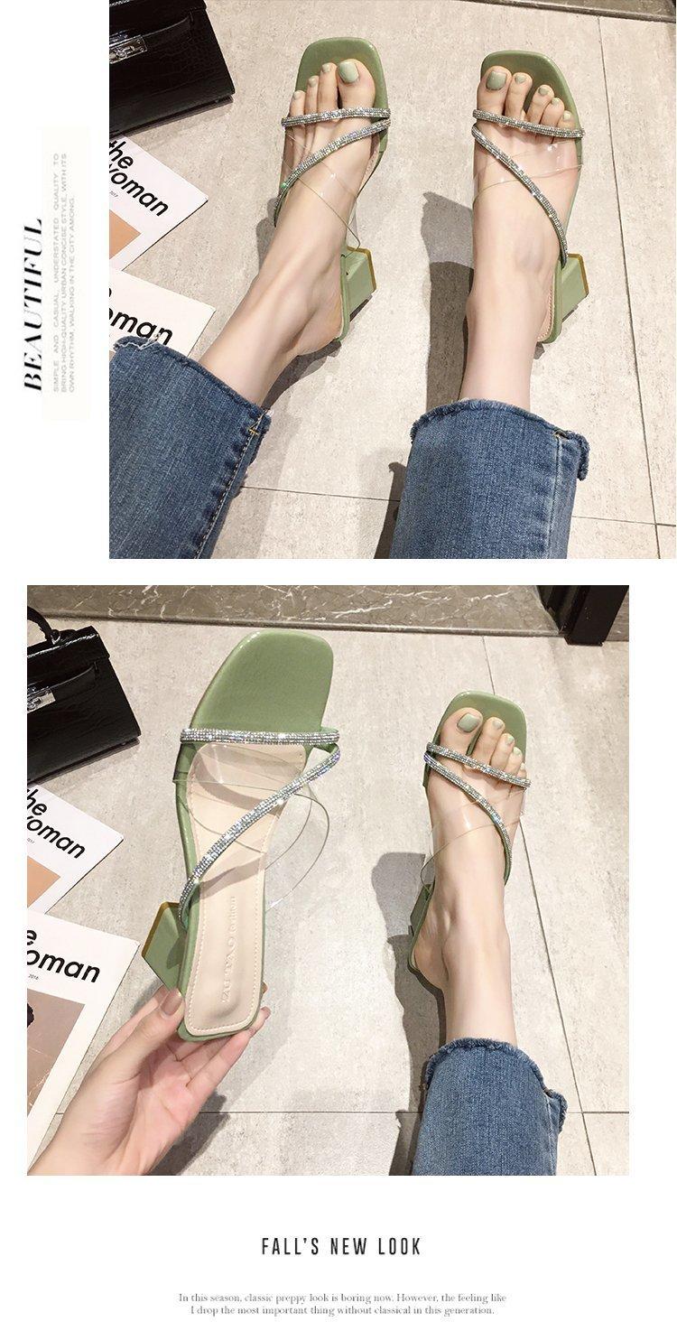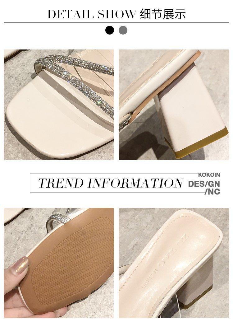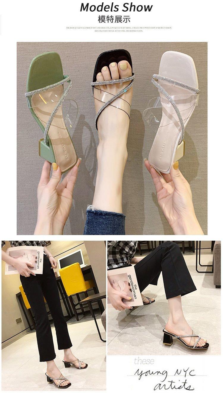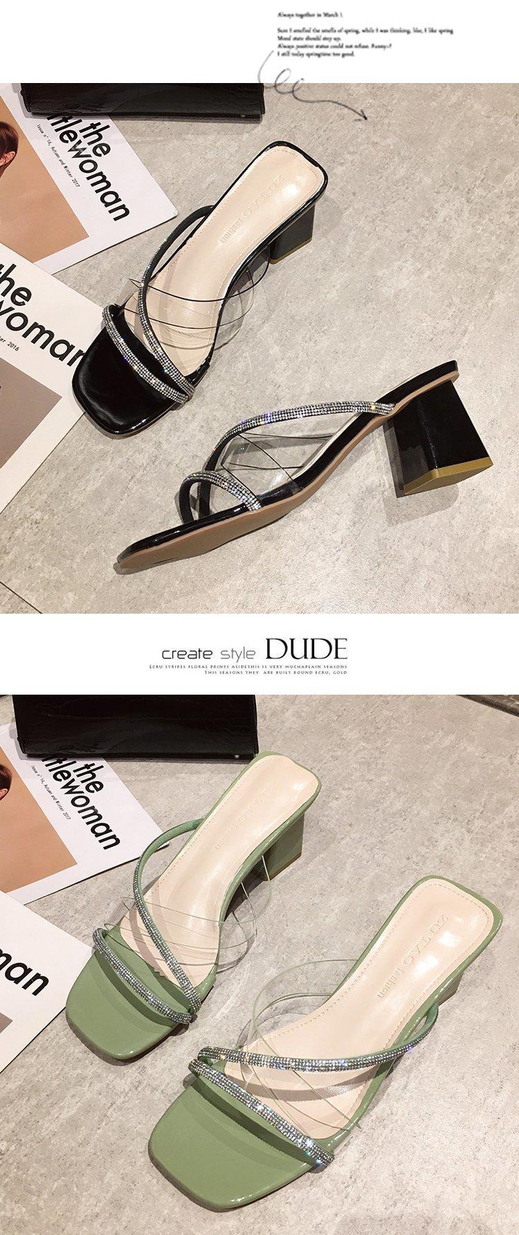 Nuevas zapatillas de verano para mujer, de tacón grueso, estilo coreano, sencillas y a la moda, transparentes, para uso exterior, con cabeza cuadrada y media pantuflas.