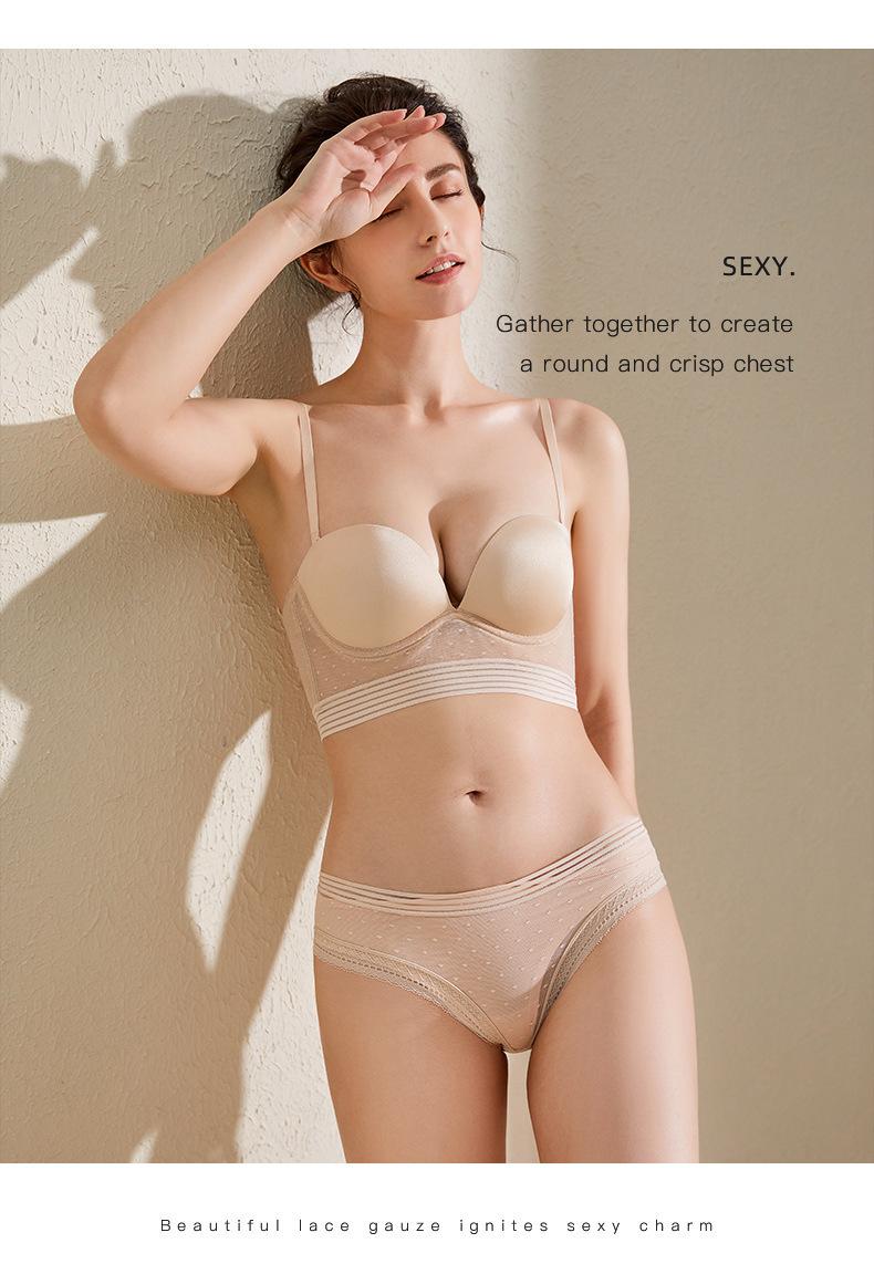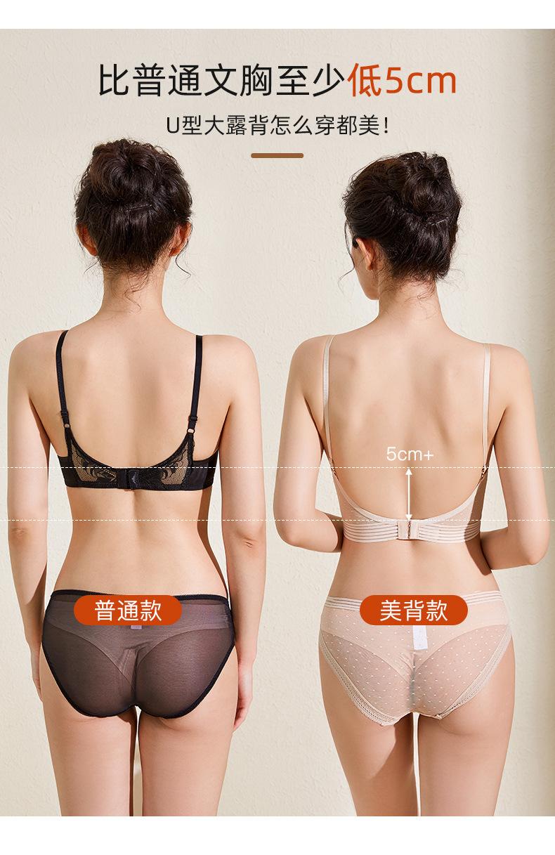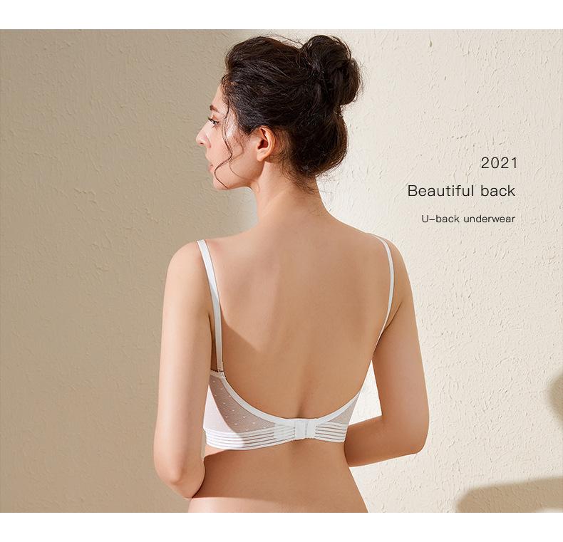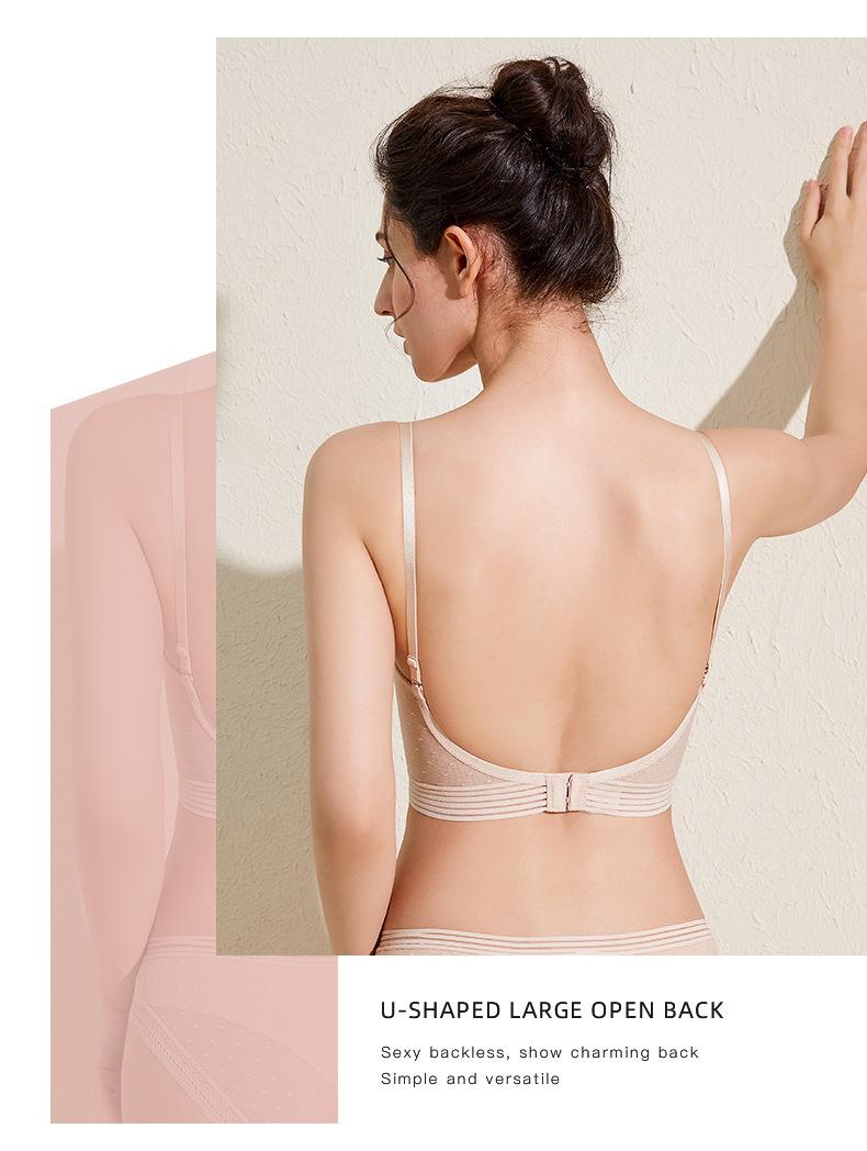 Íntimos Sexys, Sin Costuras en Forma de U Brillantes de Espalda Grande Descubierta Hermosa Espalda Íntimos, Aro de Acero Suave, Pechos Pequeños, Set de Brasier Push-Up