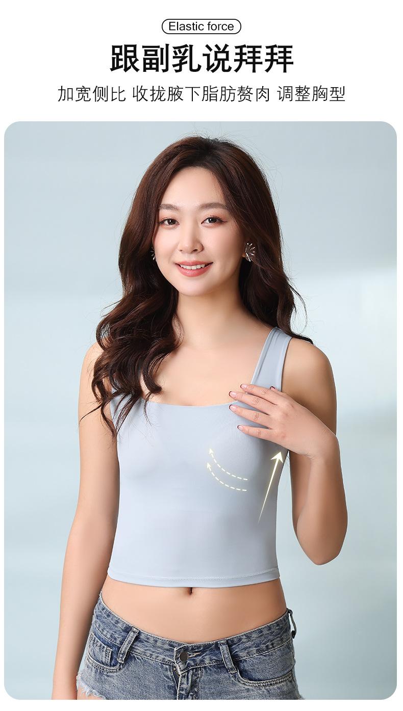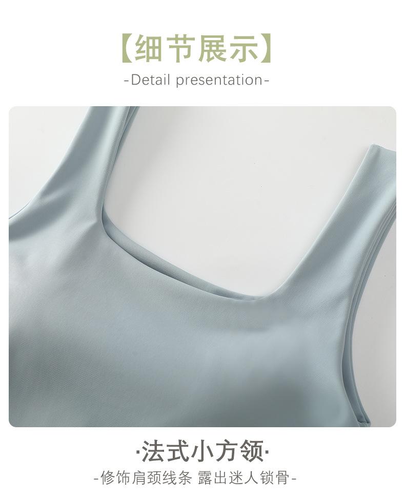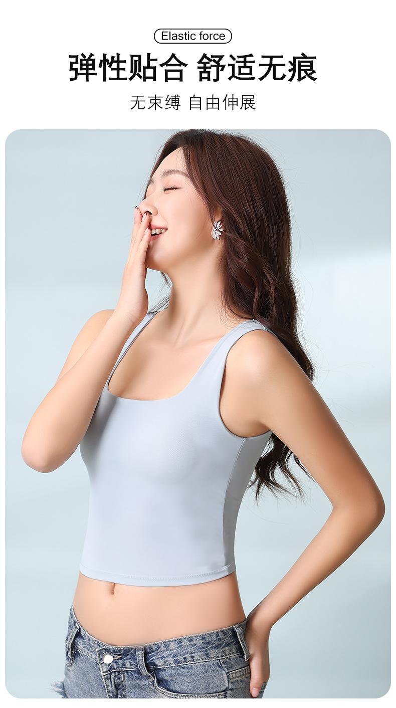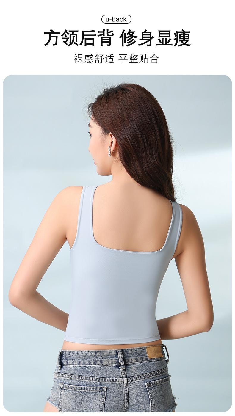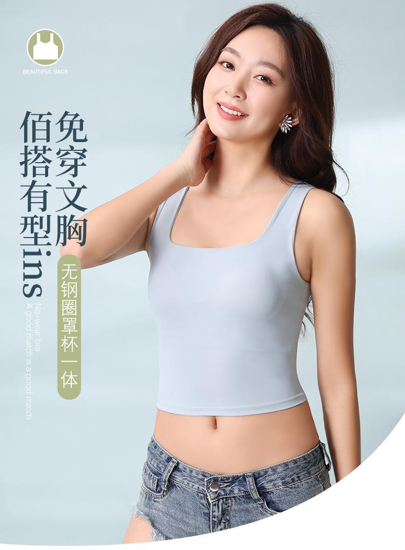Hermosa Camisola de Espalda para Mujer Verano Seda de Hielo Fresca Corta Interior Base Cuello Cuadrado Ropa Exterior con Almohadilla en el Pecho Ropa Interior de Una Pieza