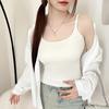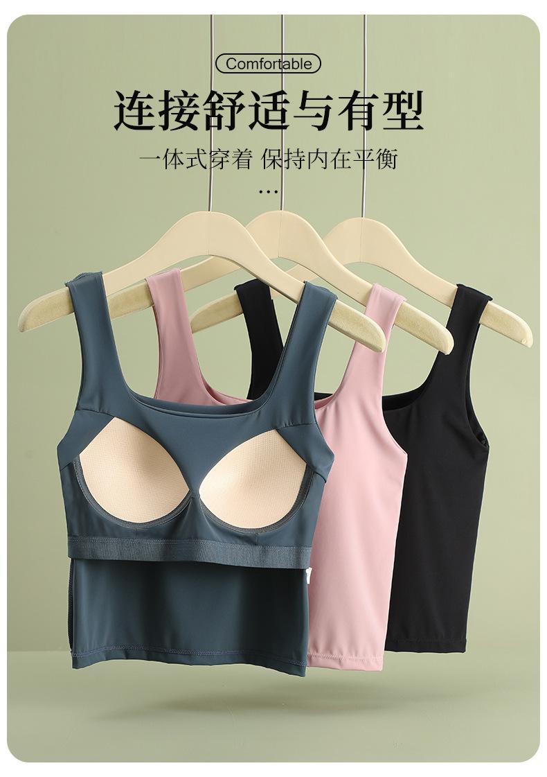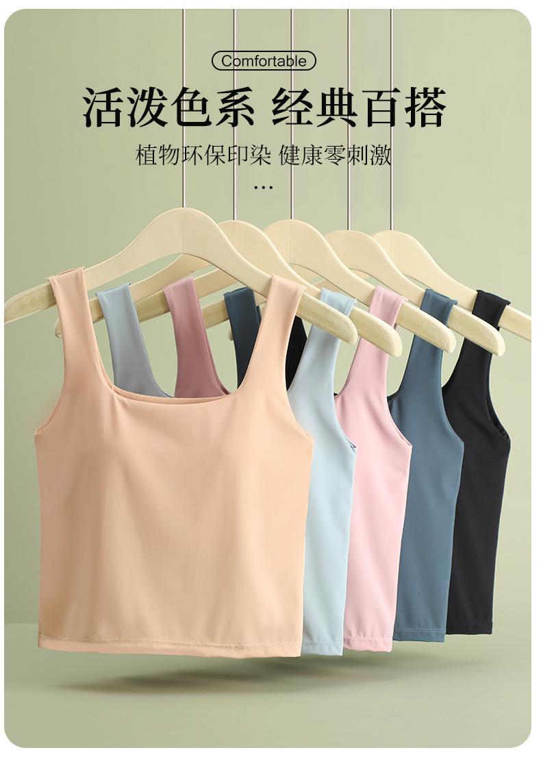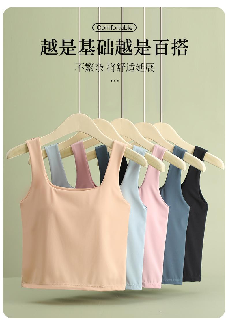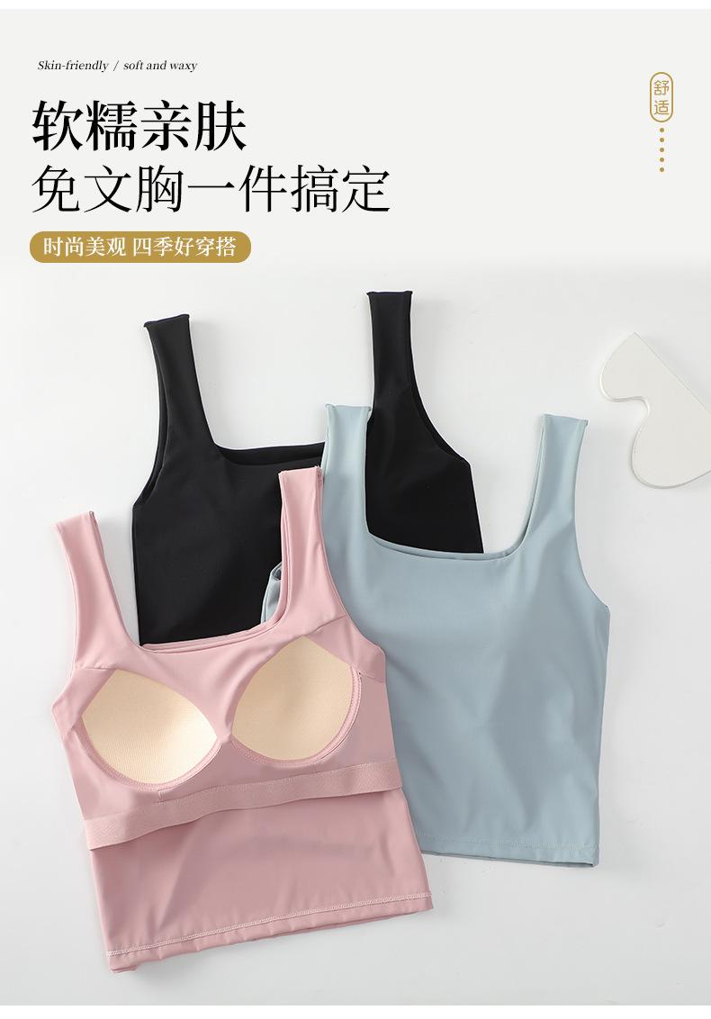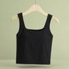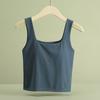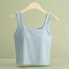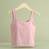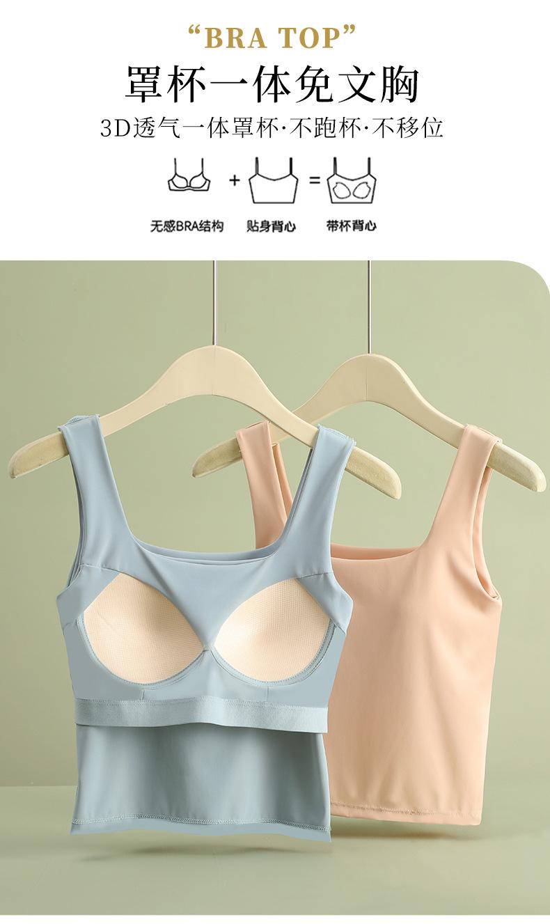 Hermosa Camisola de Espalda para Mujer Verano Seda de Hielo Fresca Corta Interior Base Cuello Cuadrado Ropa Exterior con Almohadilla en el Pecho Ropa Interior de Una Pieza