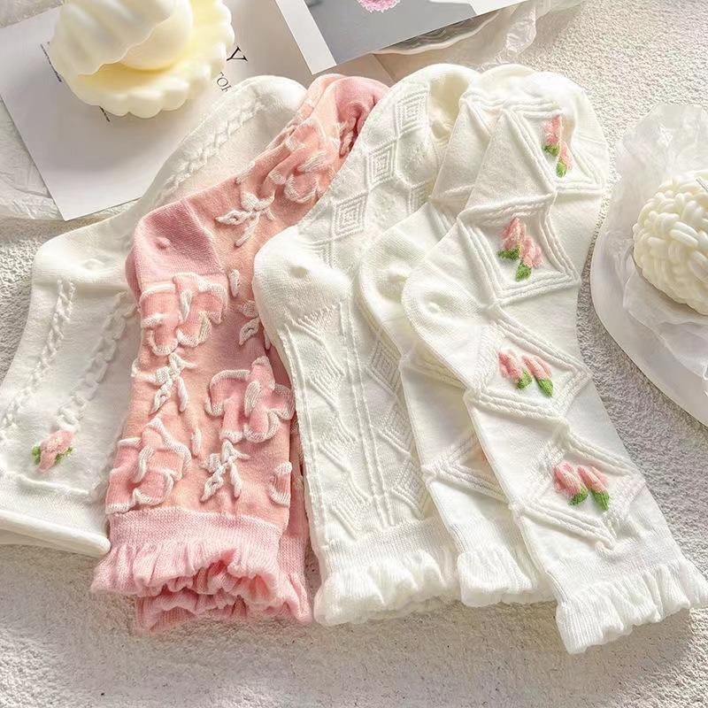 Calcetines Blancos de Media Caña para Mujer, Estilo Japonés de Moda, Calcetines Femeninos Rosa Niebla, Calcetines Jk de Encaje Finos de Alta Apariencia para Primavera y Verano