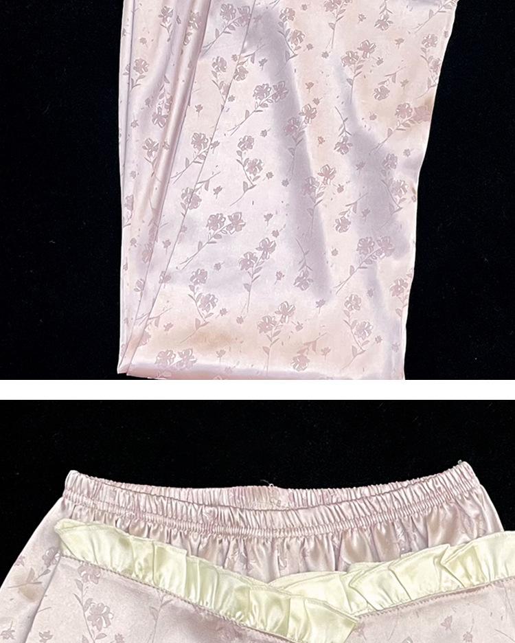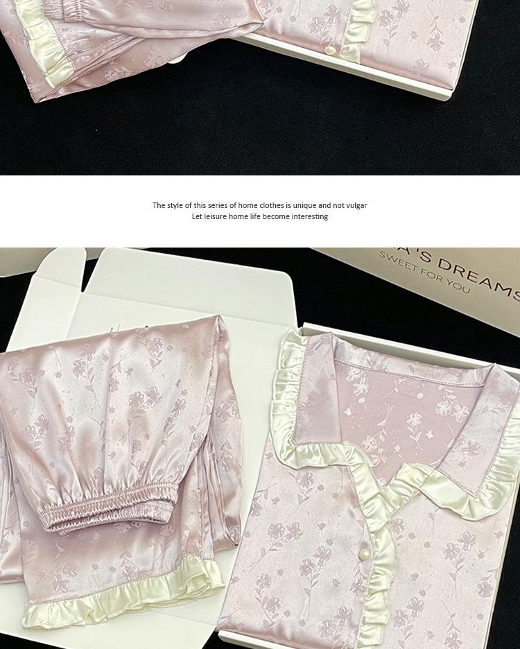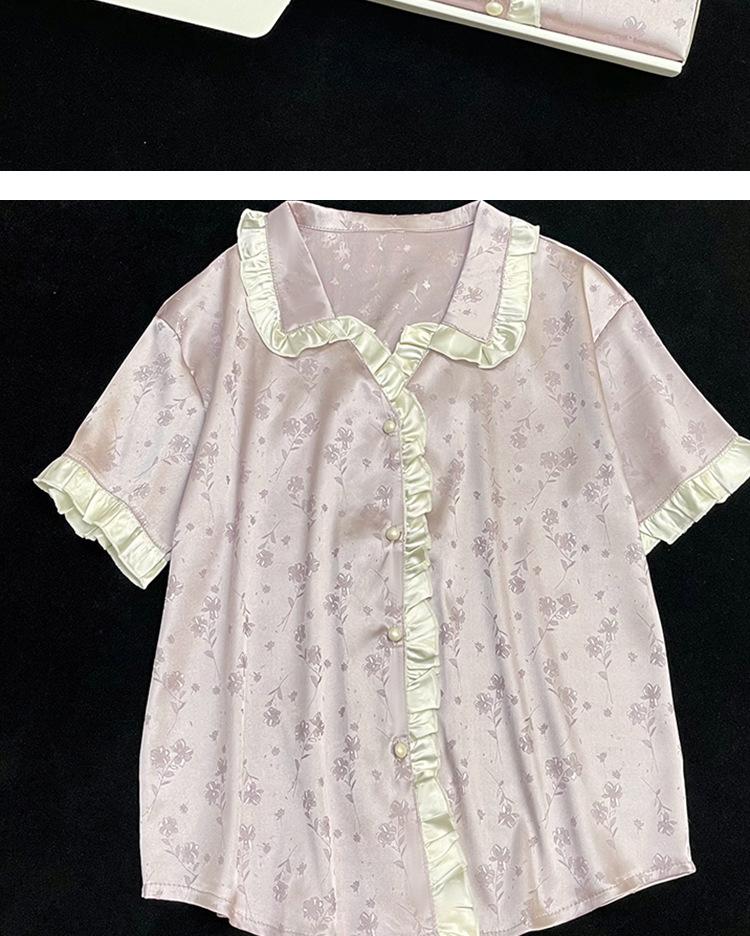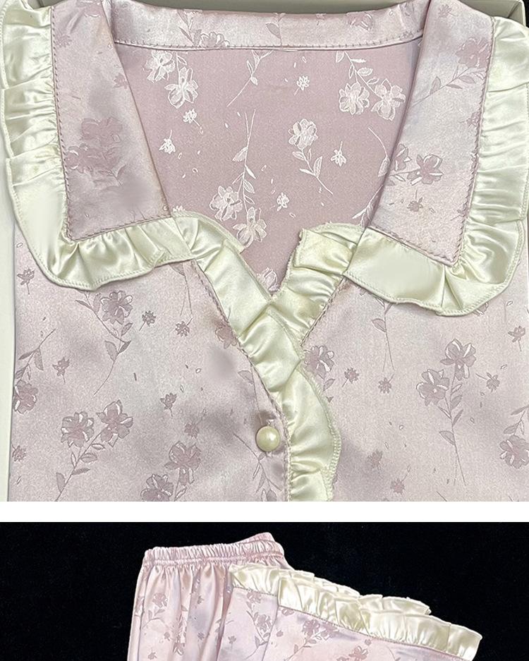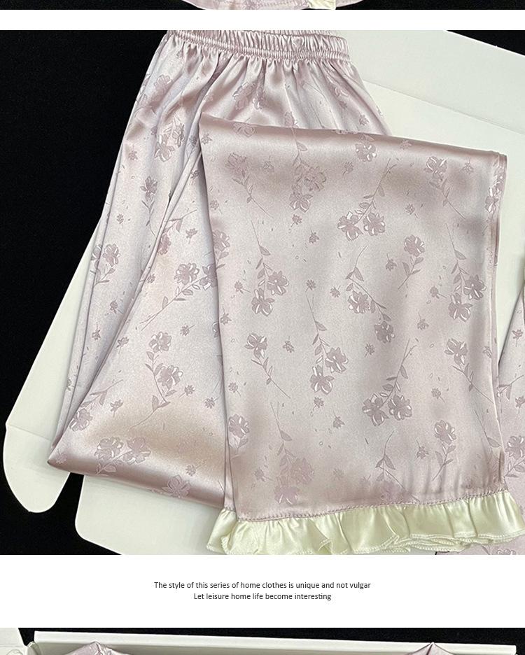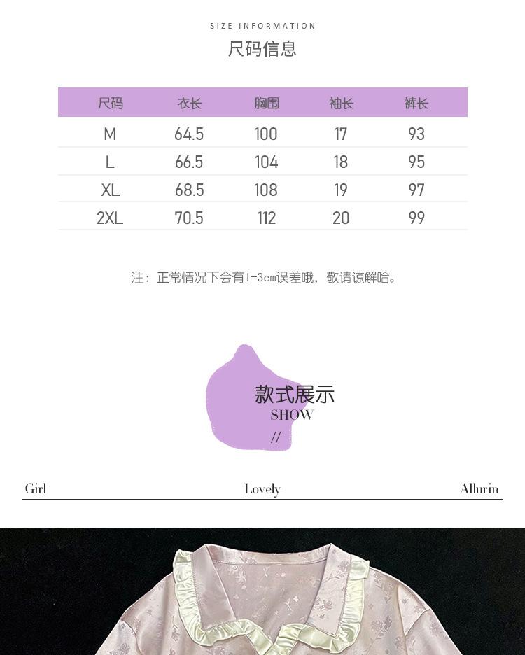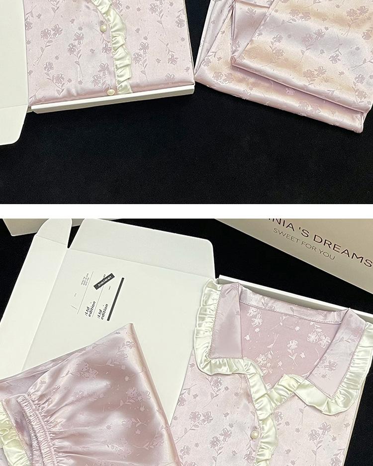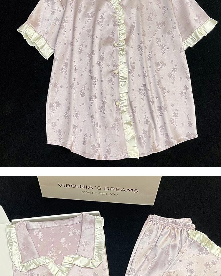 Estilo Simple Elegante Nuevo Producto Tela Jacquard Morada Tipo Seda Pantalones de Manga Corta Pijama Sensación de Alta Gama Ropa de Casa Pijama