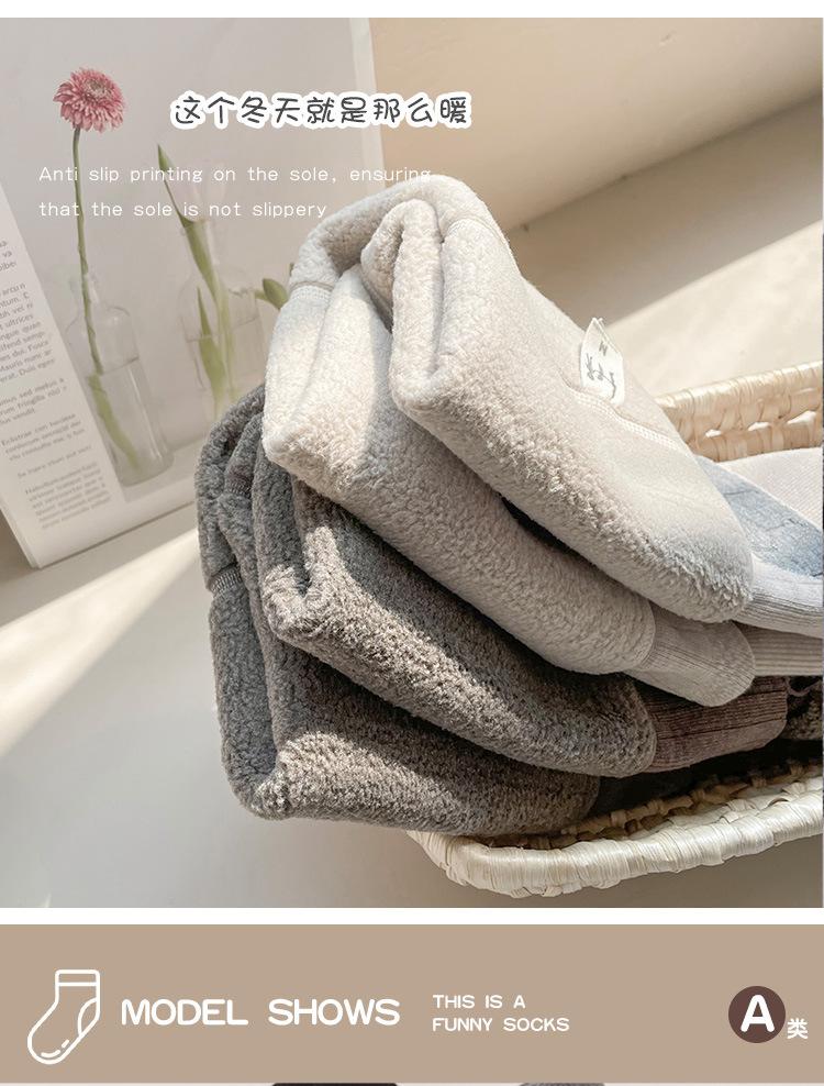 Calcetines de bebé de piel de cordero engrosados de terciopelo de otoño e invierno, calcetines antideslizantes para bebés, calcetines cálidos para el hogar, calcetines de dibujos animados