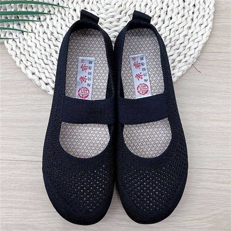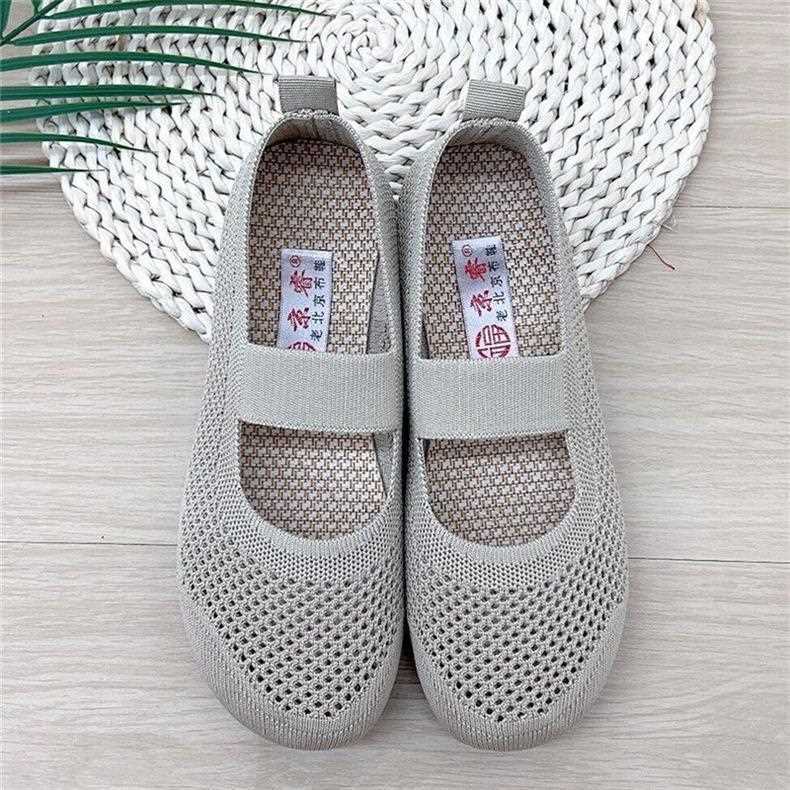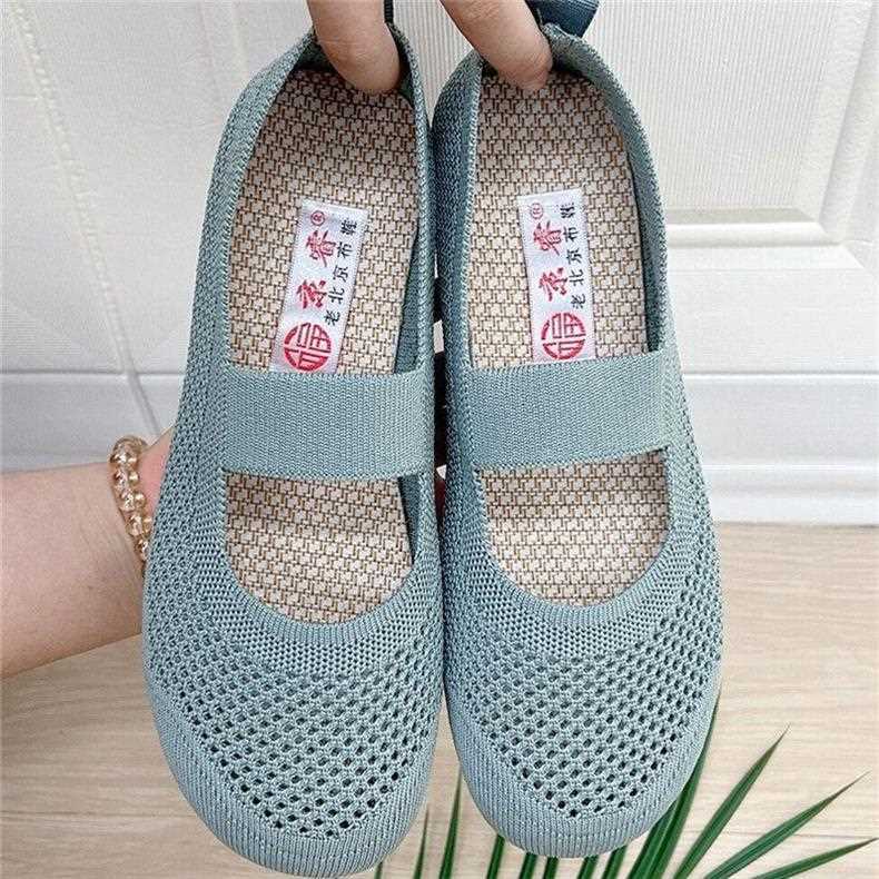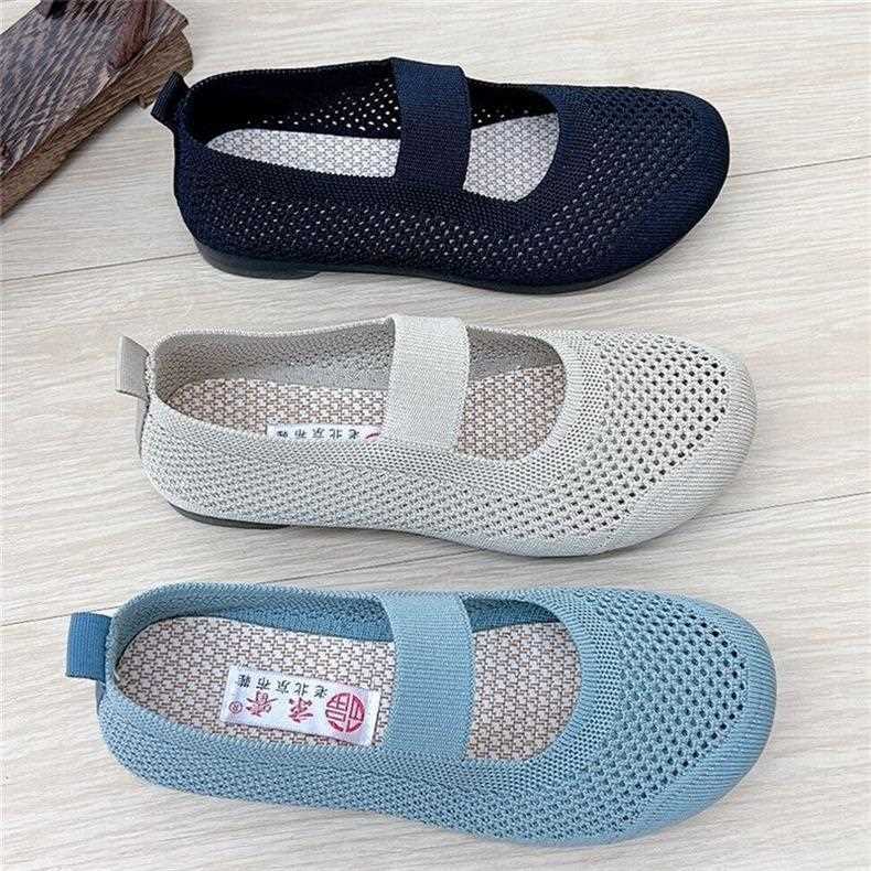 Zapatos de tela de Pekín antiguos verano casual calado zapatos de mamá planos cómodos secos transpirables pies no sofocantes