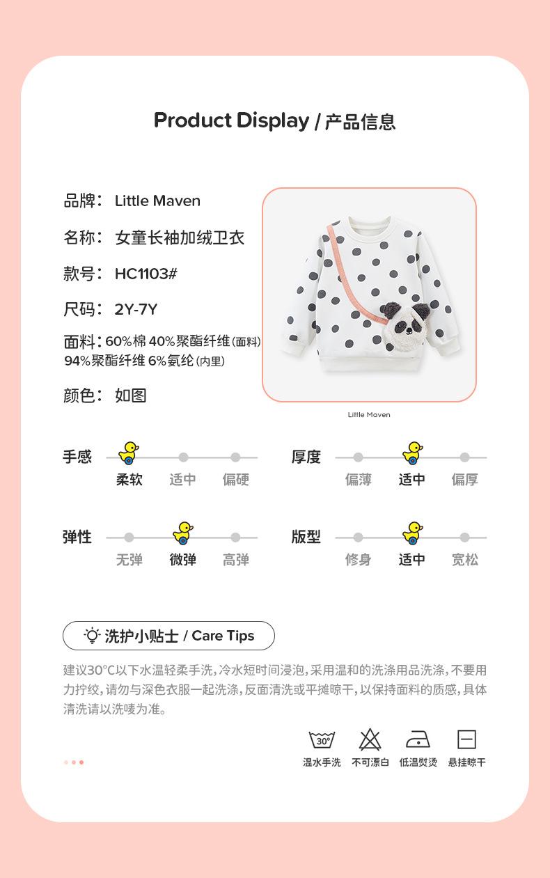 Suéter de manga larga con forro polar para niña, jersey de cuello redondo, top de dibujos animados para niño de Little Maven, otoño e invierno
