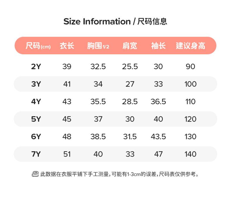 2Y(90cm), 3Y(100cm), 4Y(110cm), 5Y(120cm), 6Y(130cm), 7Y(140cm)
