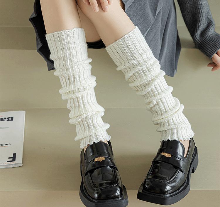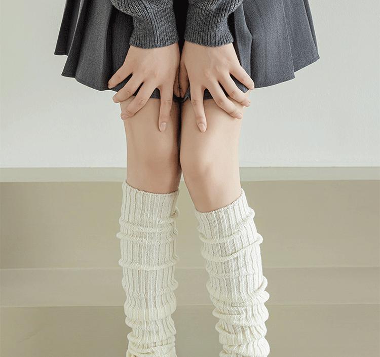 Calcetines con rodilleras funda para pierna otoño e invierno estilo JK color sólido línea gruesa calcetines de pelo medio-alto antideslizantes calcetines de becerro de dos barras funda