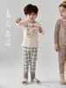 Ropa de otoño para niños traje de pantalones largos algodón puro sin costuras estilo coreano pijamas para bebé cálido engrosado ropa para el hogar para niños caja de regalo