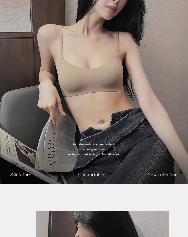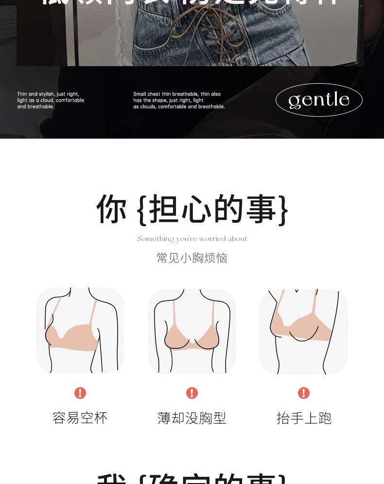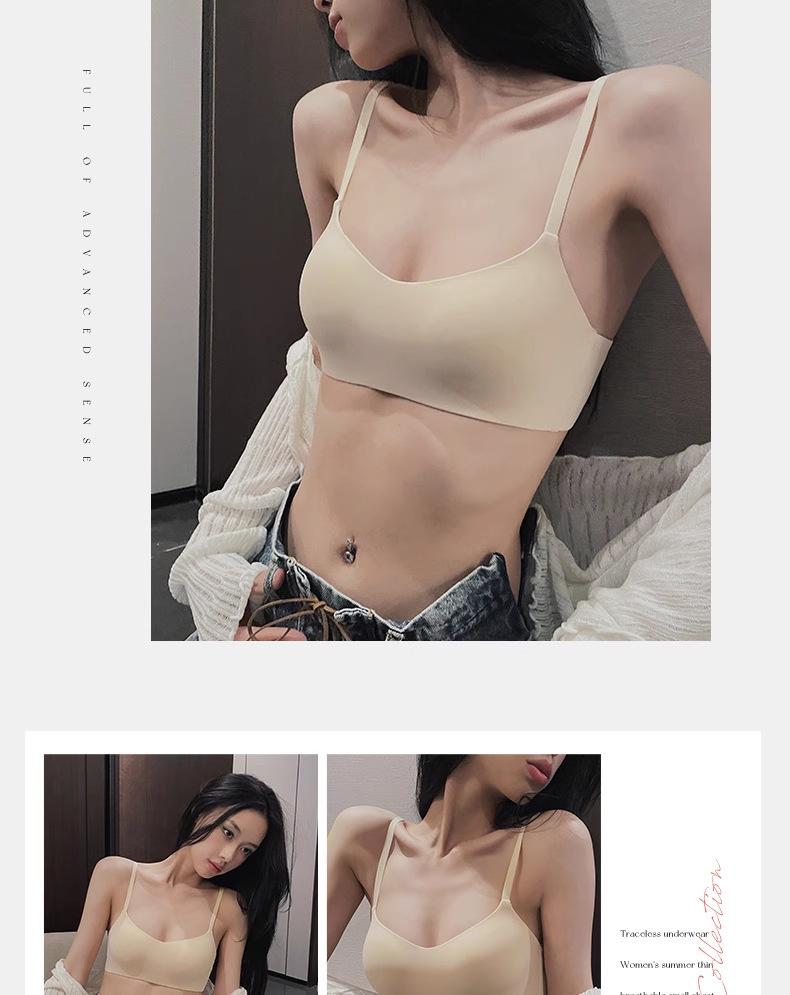 Ropa interior delgada de una pieza sin costuras para mujer, realce para busto pequeño, accesorio anti-caída, senos, brasier transpirable sin aros