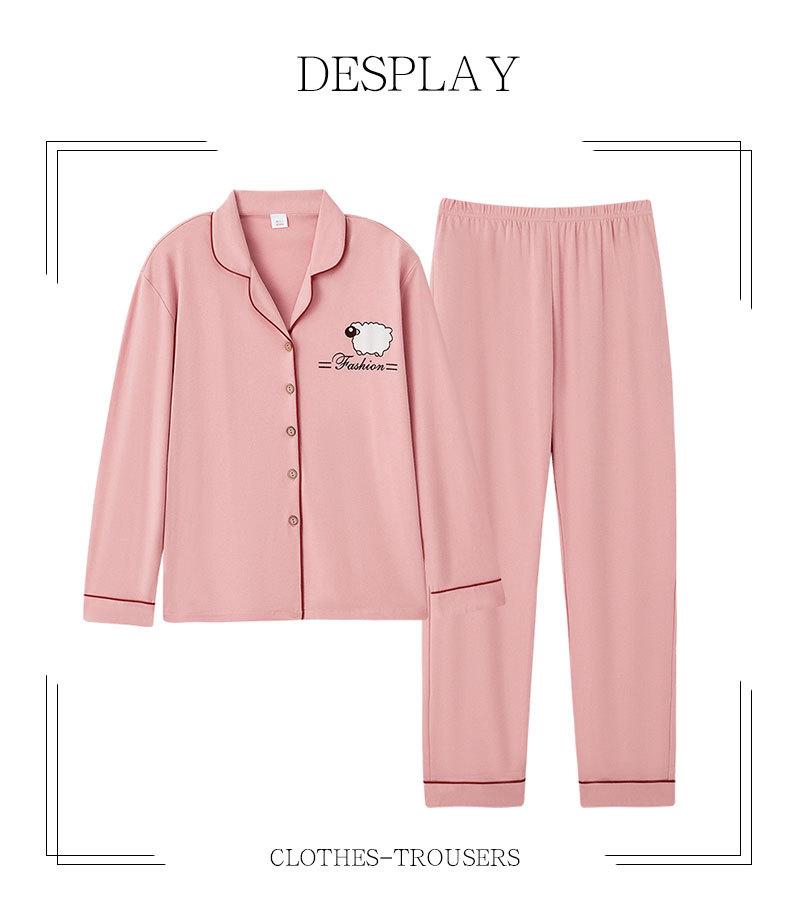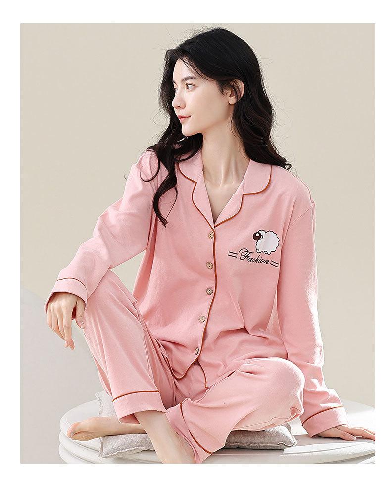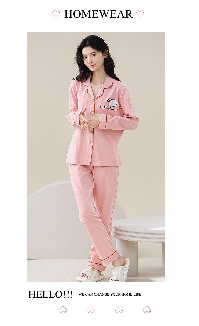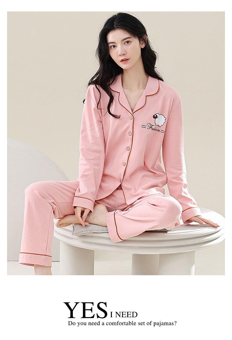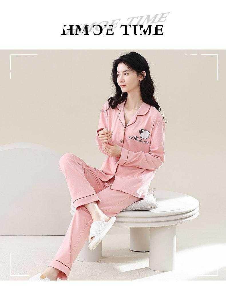 Compra Pijama de algodón puro de primavera y otoño para mujer, pantalones de manga larga, traje de dos piezas, cómodo y transpirable, ropa de casa de niña con dibujos animados al por mayor en Joom.pro