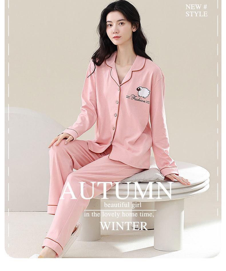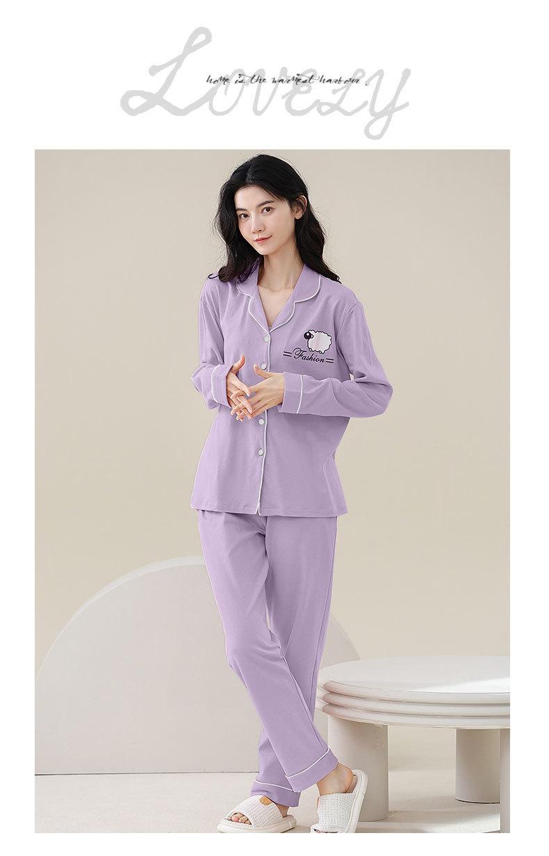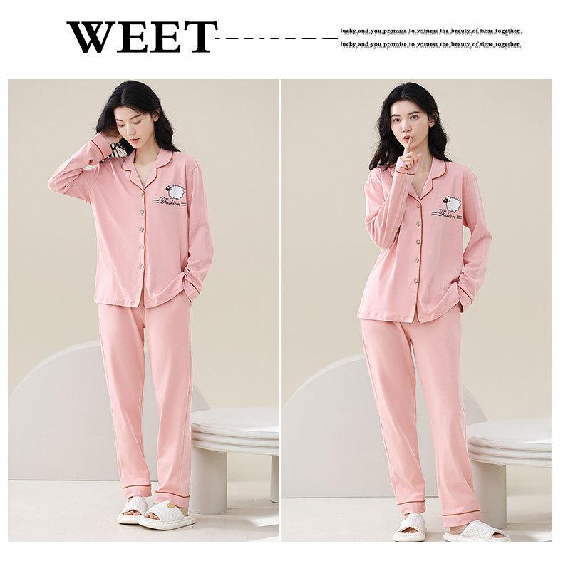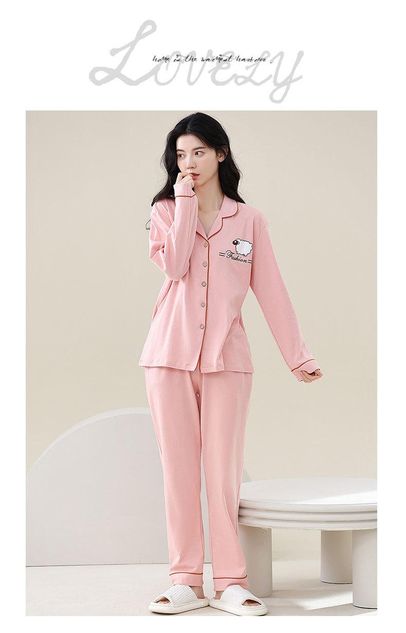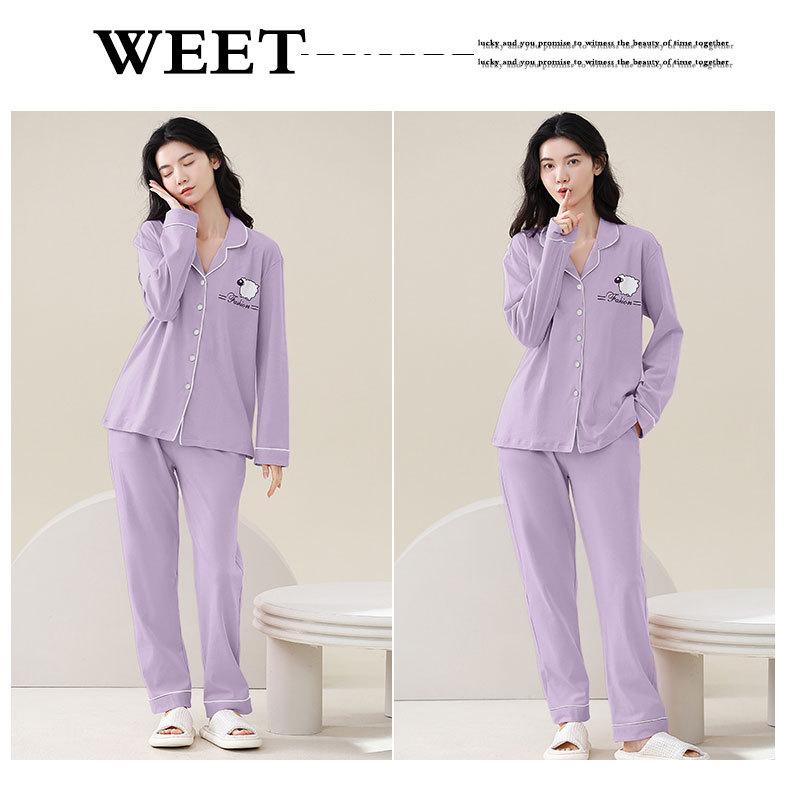 Compra Pijama de algodón puro de primavera y otoño para mujer, pantalones de manga larga, traje de dos piezas, cómodo y transpirable, ropa de casa de niña con dibujos animados al por mayor en Joom.pro